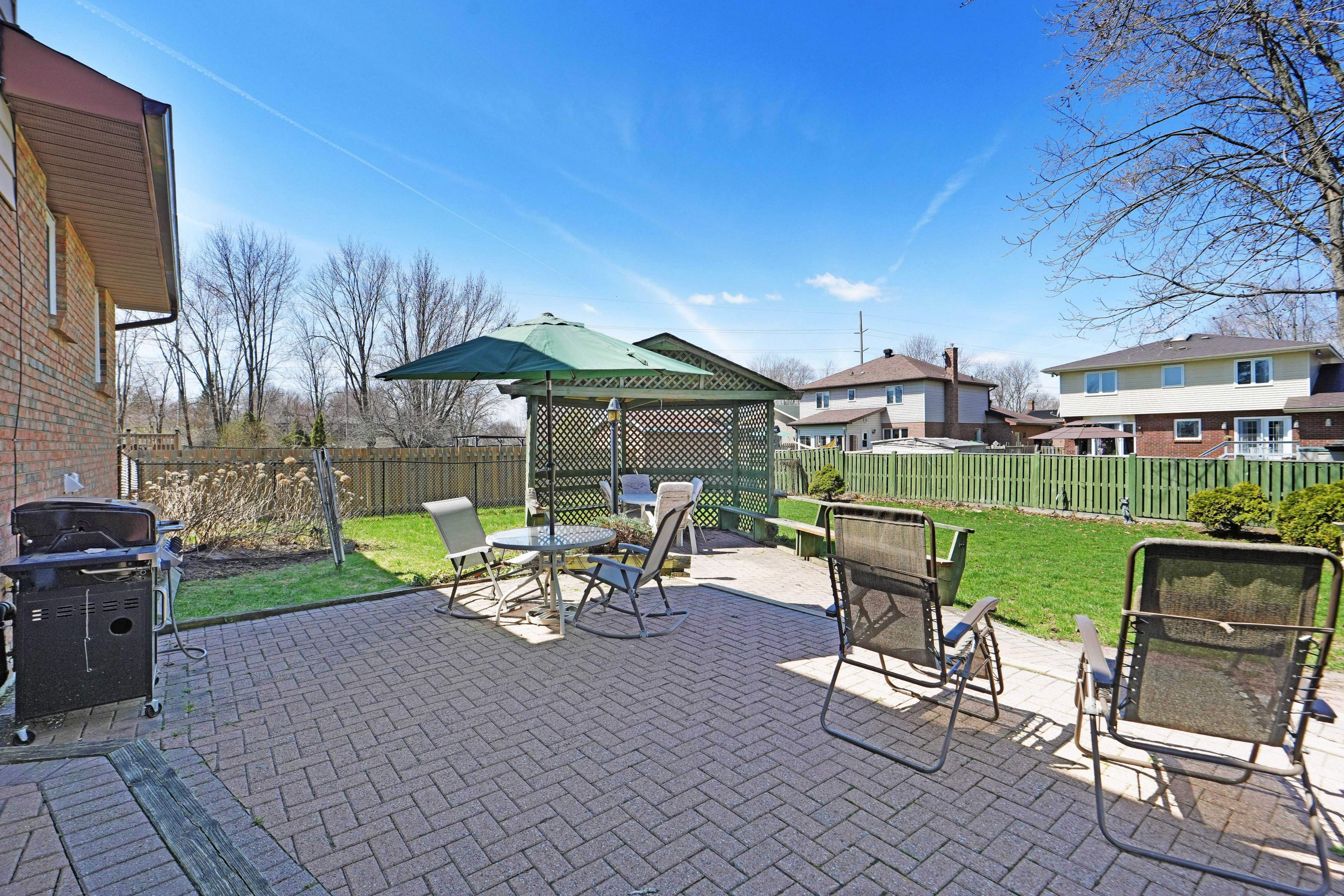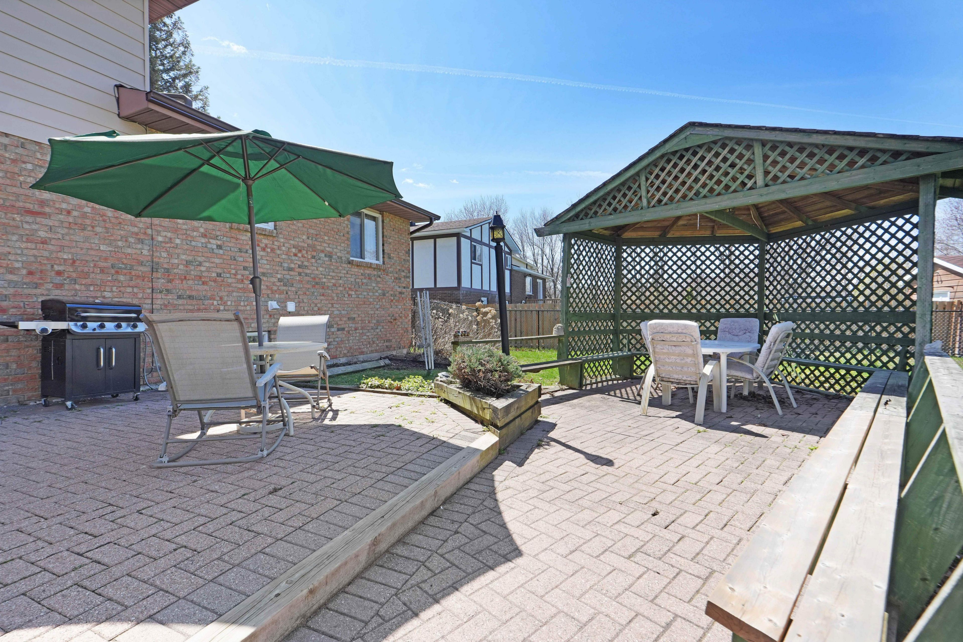 • Fully fenced backyard with an interlock brick patio and gazebo.