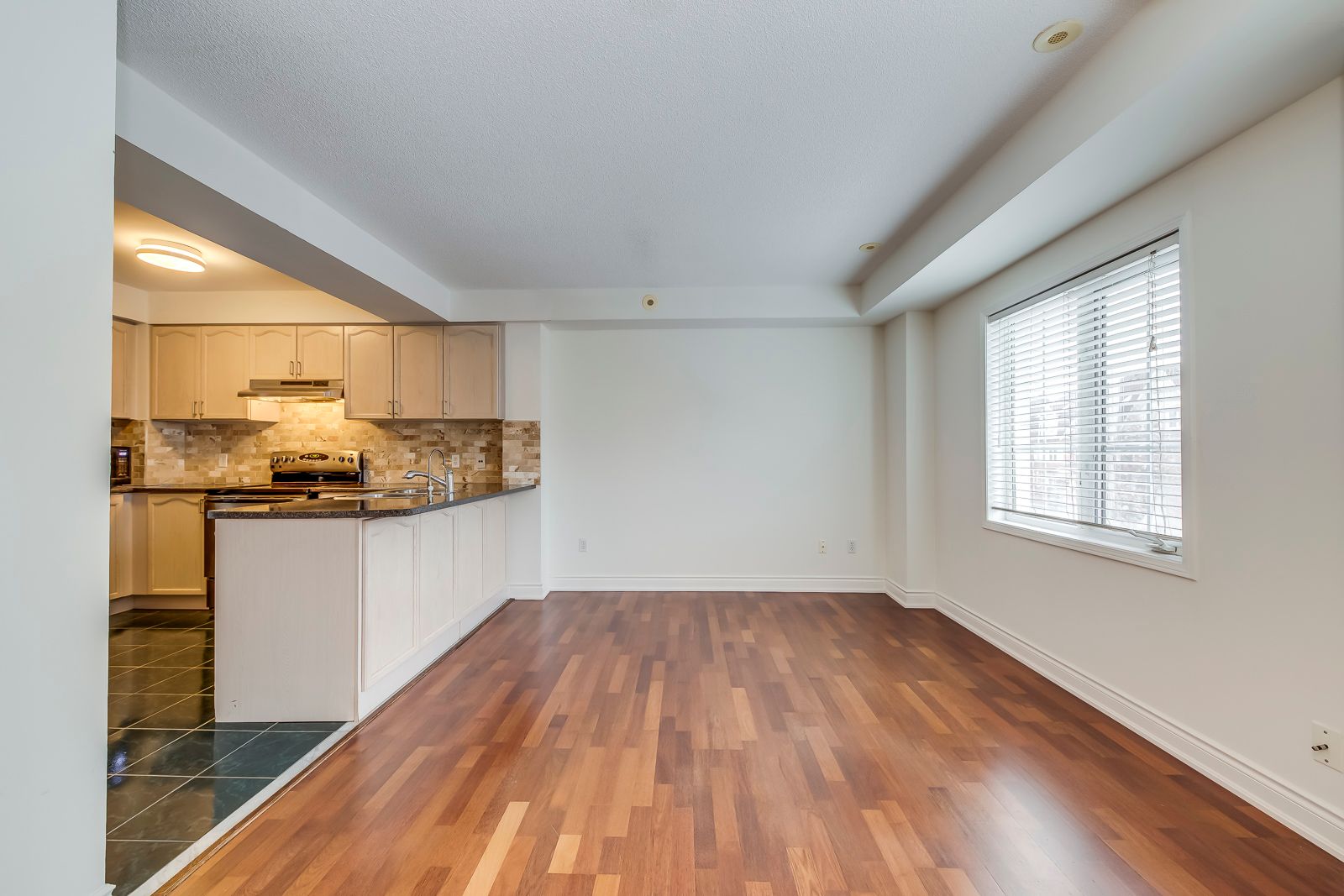 • Bright living/dining area features easy-to-maintain laminate flooring.