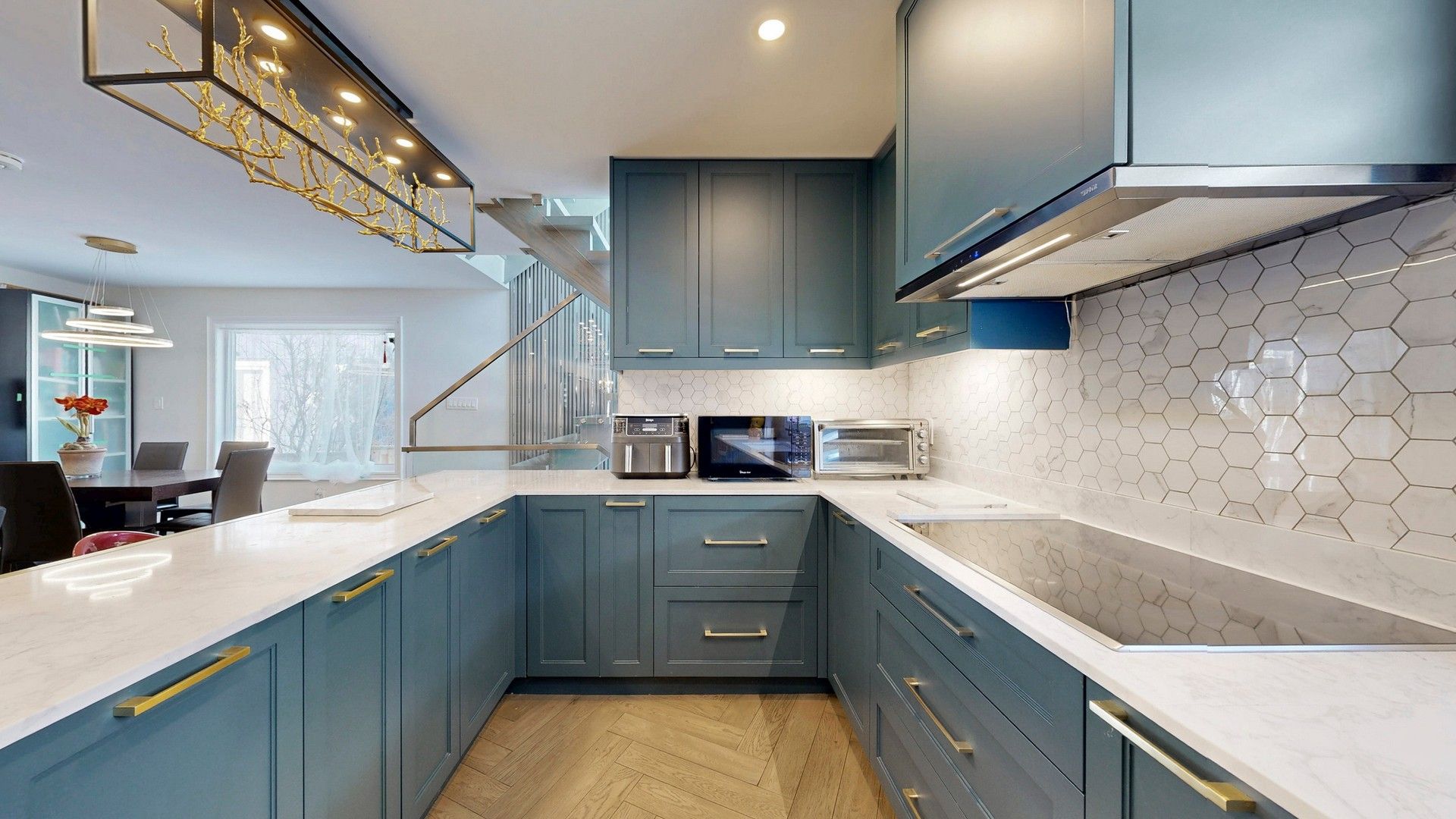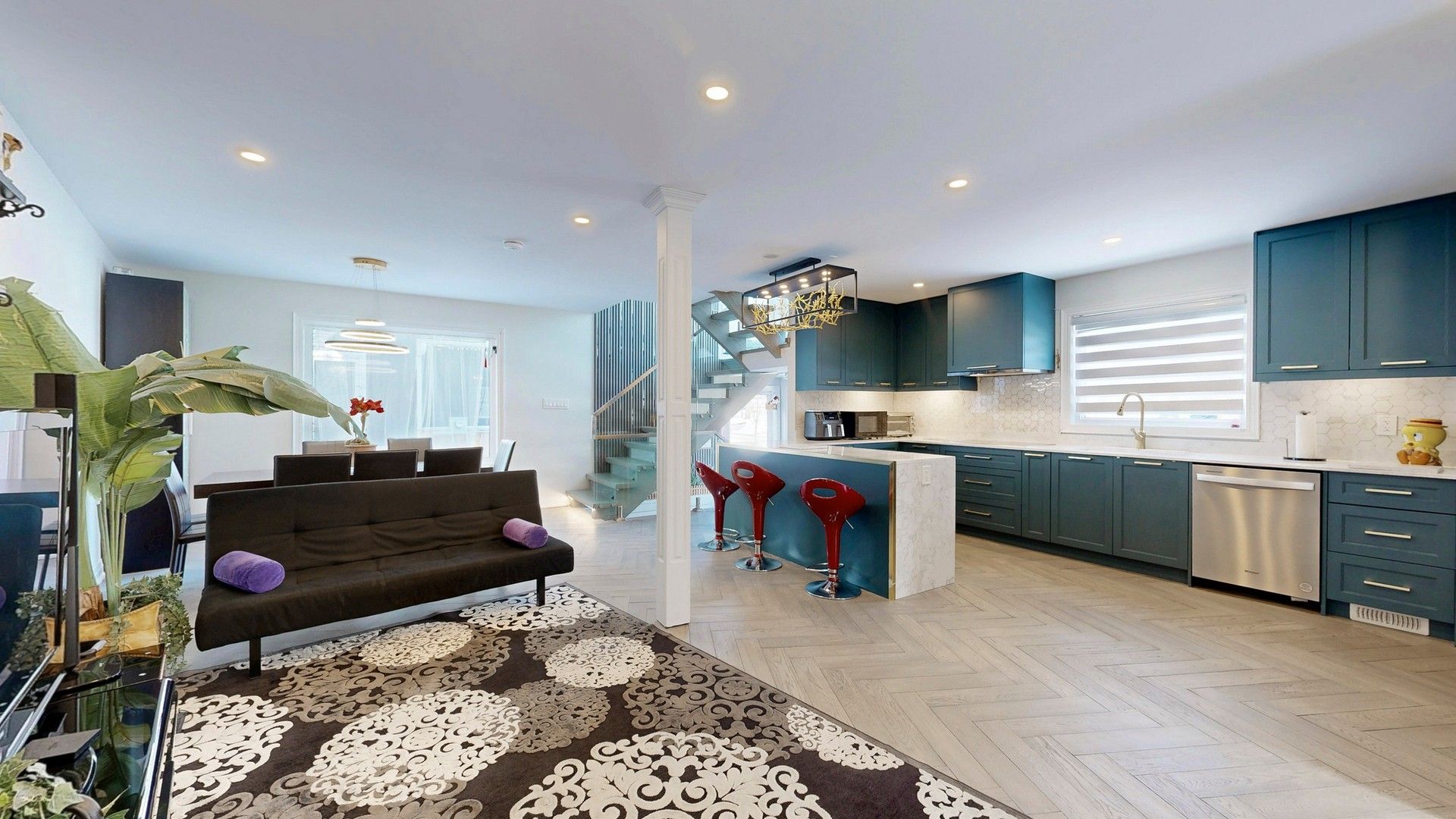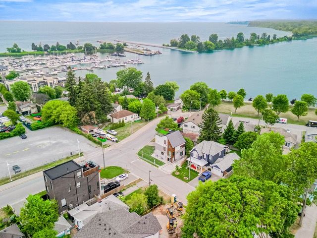 Luxurious custom built freehold detached lake view home with 3 + 2 bedrooms, 4 bathrooms, three parking spaces and two ev chargers. Over 2600 s. F of living space (2074 s. F + 542 s. F finished basement). Premium corner lot with abundant windows and a modern, eye-catching exterior enhanced by pot lights. $$$ upgrades: foyer with leaded glass door entry. Main-floor office. Engineered hardwood flooring & pot lights. Open-concept gourmet kitchen featuring granite countertops, breakfast bar, extended cabinets with valance lighting, pantry & s/s appliances. Smart appliances including double built-in oven, stainless steel double-door fridge and large cooktop. Main-floor staircase with auto light sensor and openwork wooden design. Third-floor private sitting area with wet bar adjacent to the primary bedroom. Luxurious ensuite with freestanding tub, double shower, double sinks and led mirrors. Finished basement with 2 bedrooms, 3-pc bath and kitchen. Gorgeous rooftop glass-fenced terrace offering an unobstructed lakeview. Professionally landscaped front yard covered with maintenance-free artificial grass. Steps to frenchman's bay marina and ridges beach for biking, jet skiing, boating and other family activities. 5-minute drive to go train station and 7-minute walk to bus stop. Minutes to pickering city centre, cineplex theatre, boutique shops, local eateries, grocery stores, schools and highway 401.
