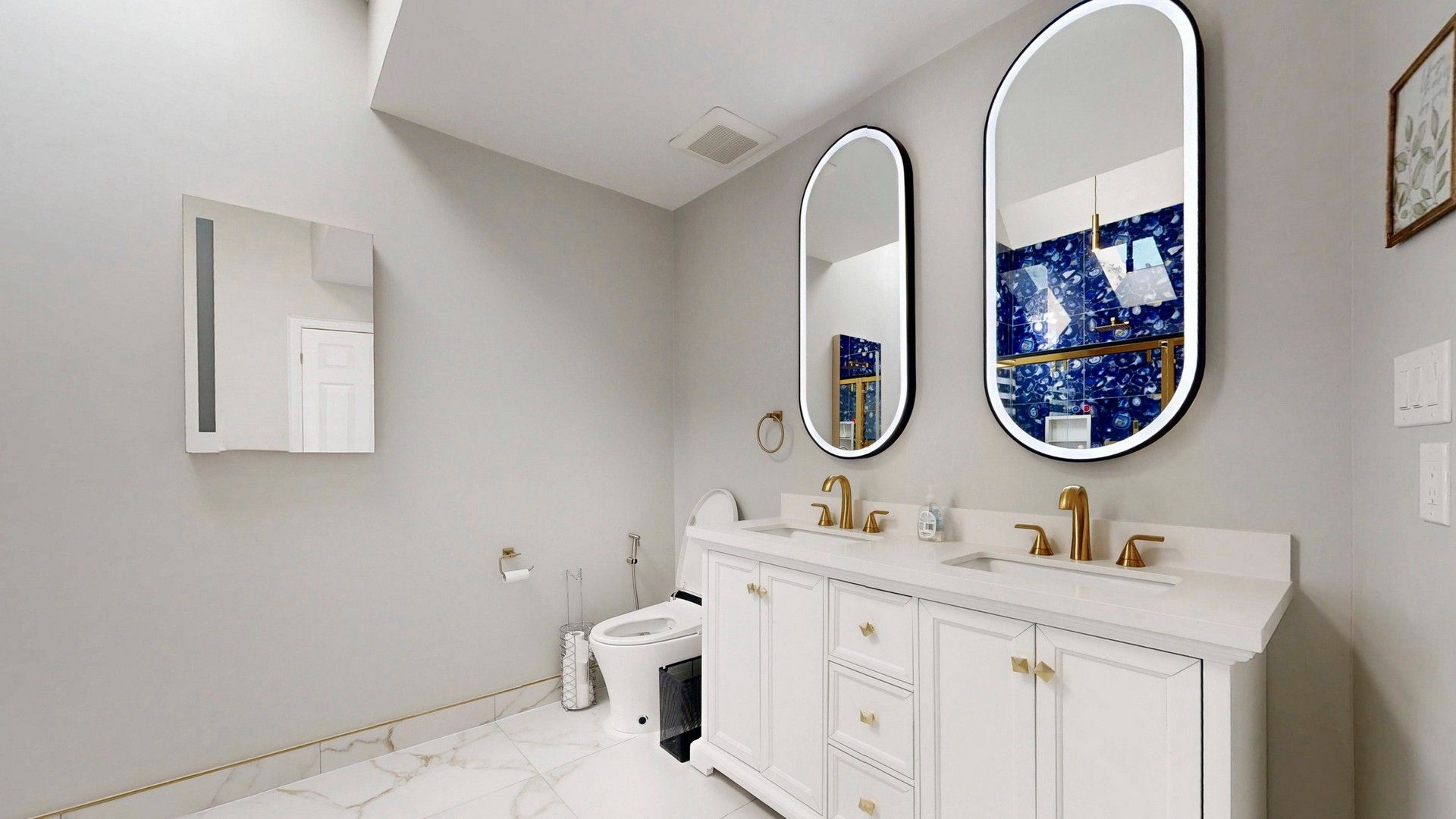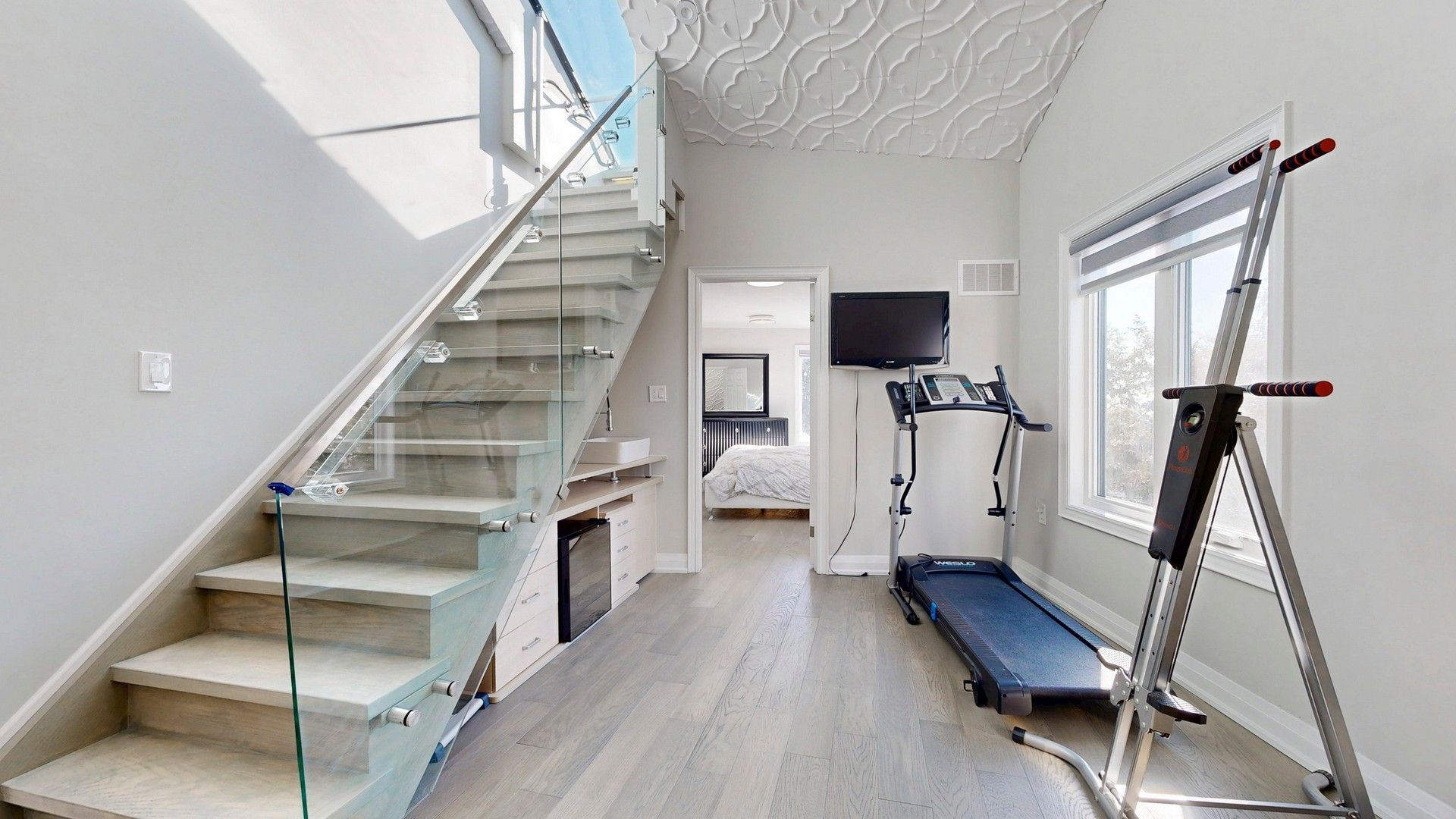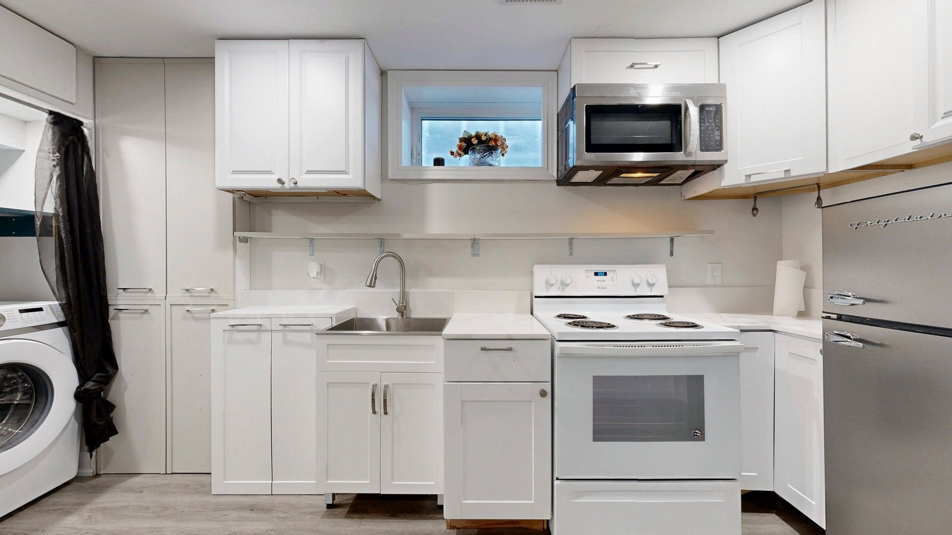 Luxurious custom built freehold detached lake view home with 3 + 2 bedrooms, 4 bathrooms, three parking spaces and two ev chargers. Over 2600 s. F of living space (2074 s. F + 542 s. F finished basement). Premium corner lot with abundant windows and a modern, eye-catching exterior enhanced by pot lights. $$$ upgrades: foyer with leaded glass door entry. Main-floor office. Engineered hardwood flooring & pot lights. Open-concept gourmet kitchen featuring granite countertops, breakfast bar, extended cabinets with valance lighting, pantry & s/s appliances. Smart appliances including double built-in oven, stainless steel double-door fridge and large cooktop. Main-floor staircase with auto light sensor and openwork wooden design. Third-floor private sitting area with wet bar adjacent to the primary bedroom. Luxurious ensuite with freestanding tub, double shower, double sinks and led mirrors. Finished basement with 2 bedrooms, 3-pc bath and kitchen. Gorgeous rooftop glass-fenced terrace offering an unobstructed lakeview. Professionally landscaped front yard covered with maintenance-free artificial grass. Steps to frenchman's bay marina and ridges beach for biking, jet skiing, boating and other family activities. 5-minute drive to go train station and 7-minute walk to bus stop. Minutes to pickering city centre, cineplex theatre, boutique shops, local eateries, grocery stores, schools and highway 401.