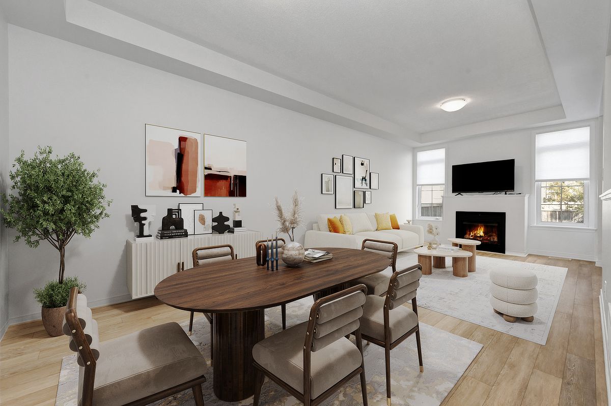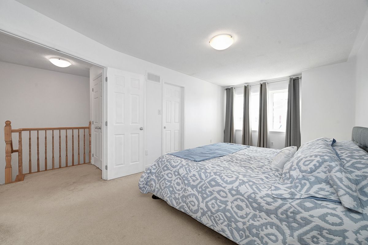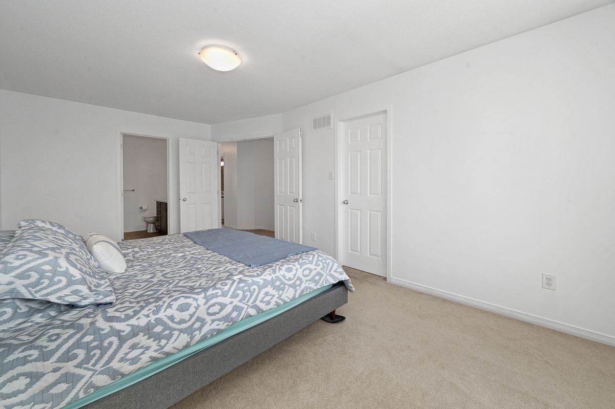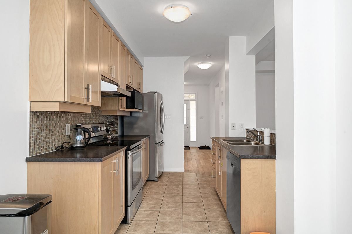 Welcome to this beautifully maintained 3 bedroom, 2. 5 bathroom townhome, ideally situated on a quiet and peaceful street in a highly desirable neighbourhood. Offering comfort, style, and convenience, this home is just minutes from excellent schools, parks, shopping, transit, and all essential amenities. The main level showcases rich flooring and impressive nine foot ceilings, creating a bright and inviting atmosphere throughout. The spacious living room features a cozy gas fireplace perfect for relaxing evenings while the well appointed kitchen offers ample cabinetry and a charming eat-in area ideal for family meals or entertaining guests. Upstairs, you'll find three generously sized bedrooms, including a primary retreat complete with a private 4 piece ensuite. A full main bathroom serves the additional bedrooms, offering comfort and practicality for family or guests. The fully finished basement provides additional living space, perfect for a recreation room, home office, or gym. Step outside to enjoy the fully fenced backyard, ideal for children, pets, or summer gatherings. Freshly painted throughout, this move in ready home combines comfort, functionality, and location in one exceptional package. A wonderful opportunity to own in a fantastic community! Some photos have been virtually staged.