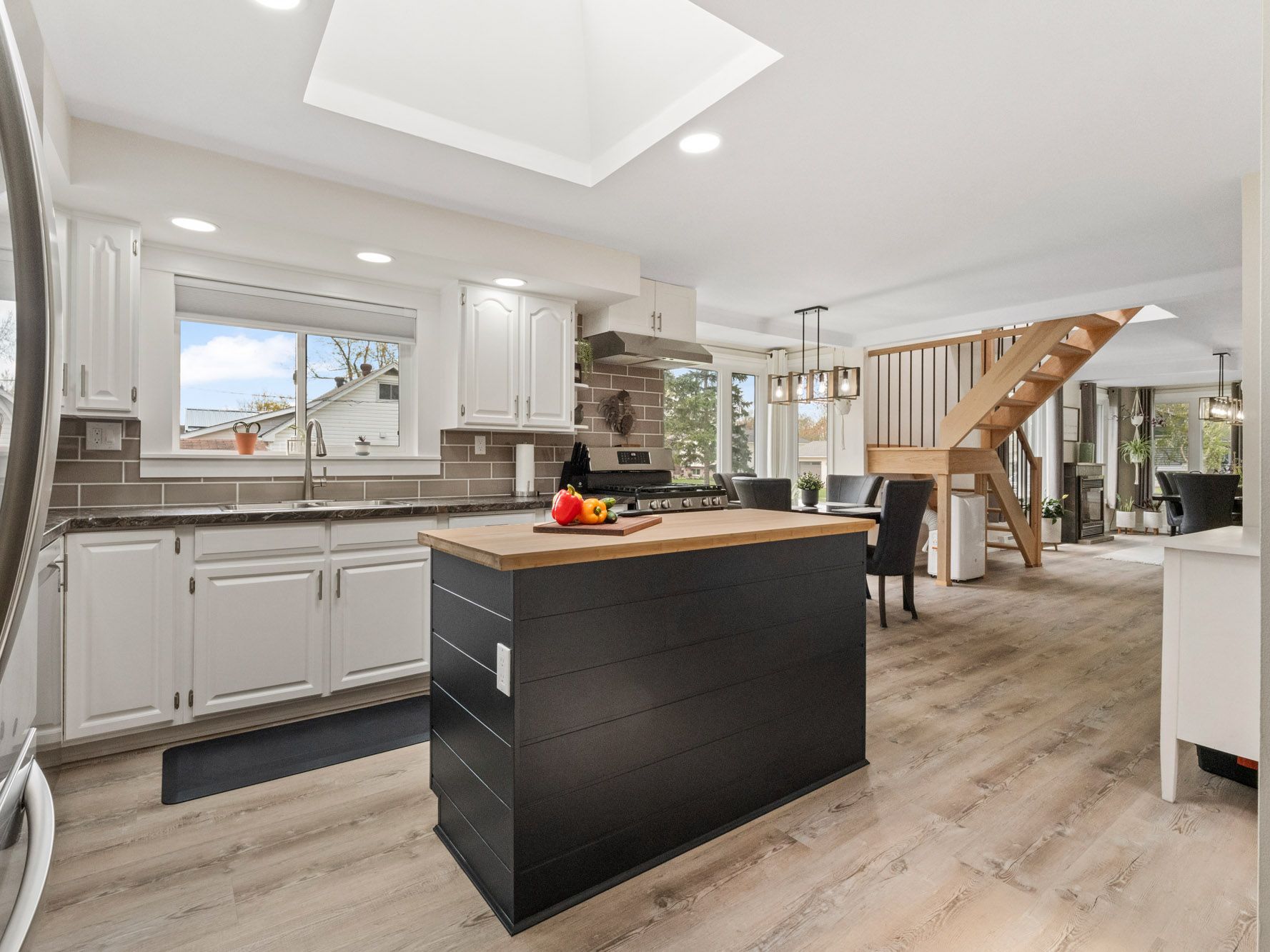 • Flexible main living area with gas fireplace now serving as a dining room.