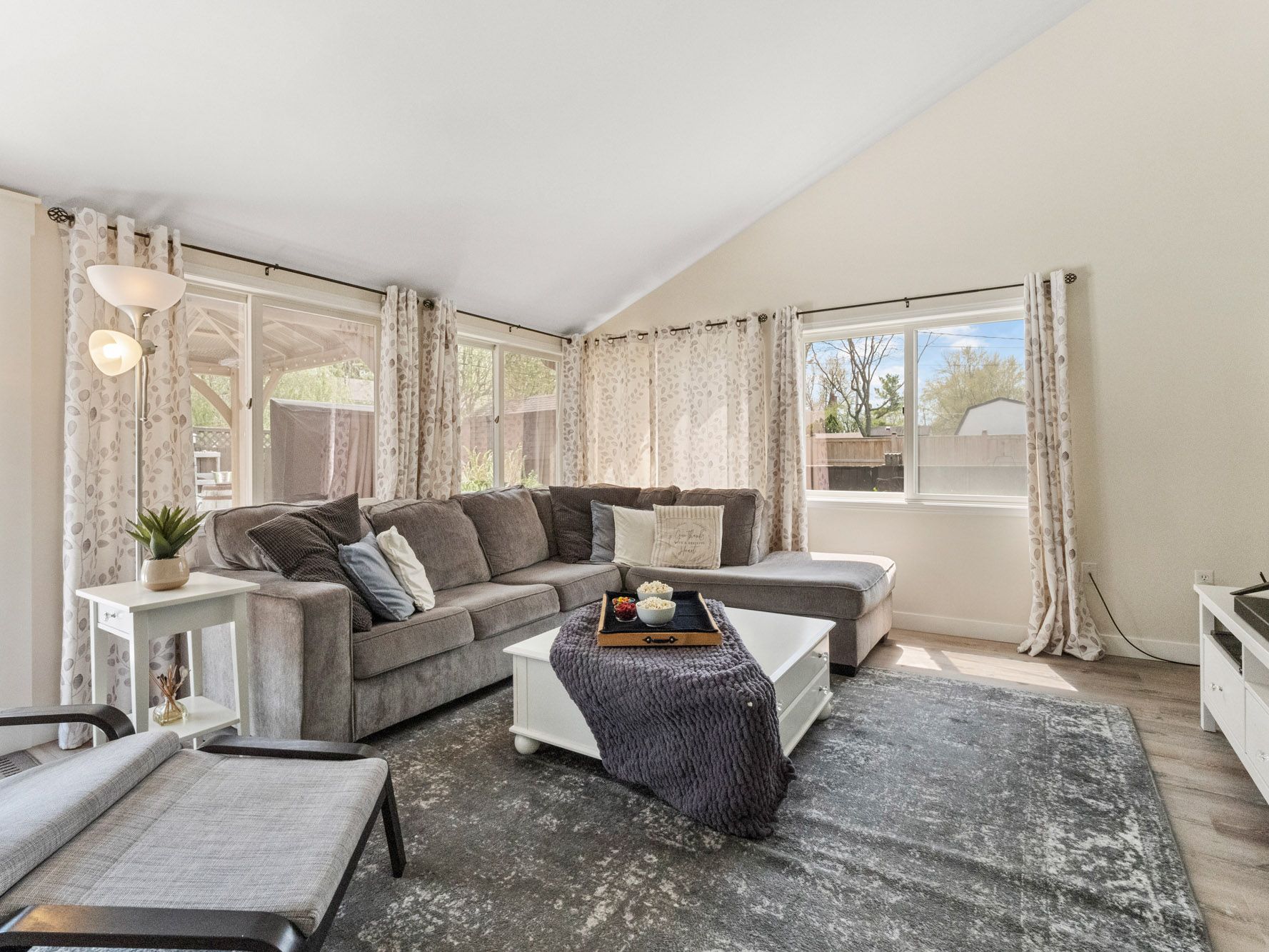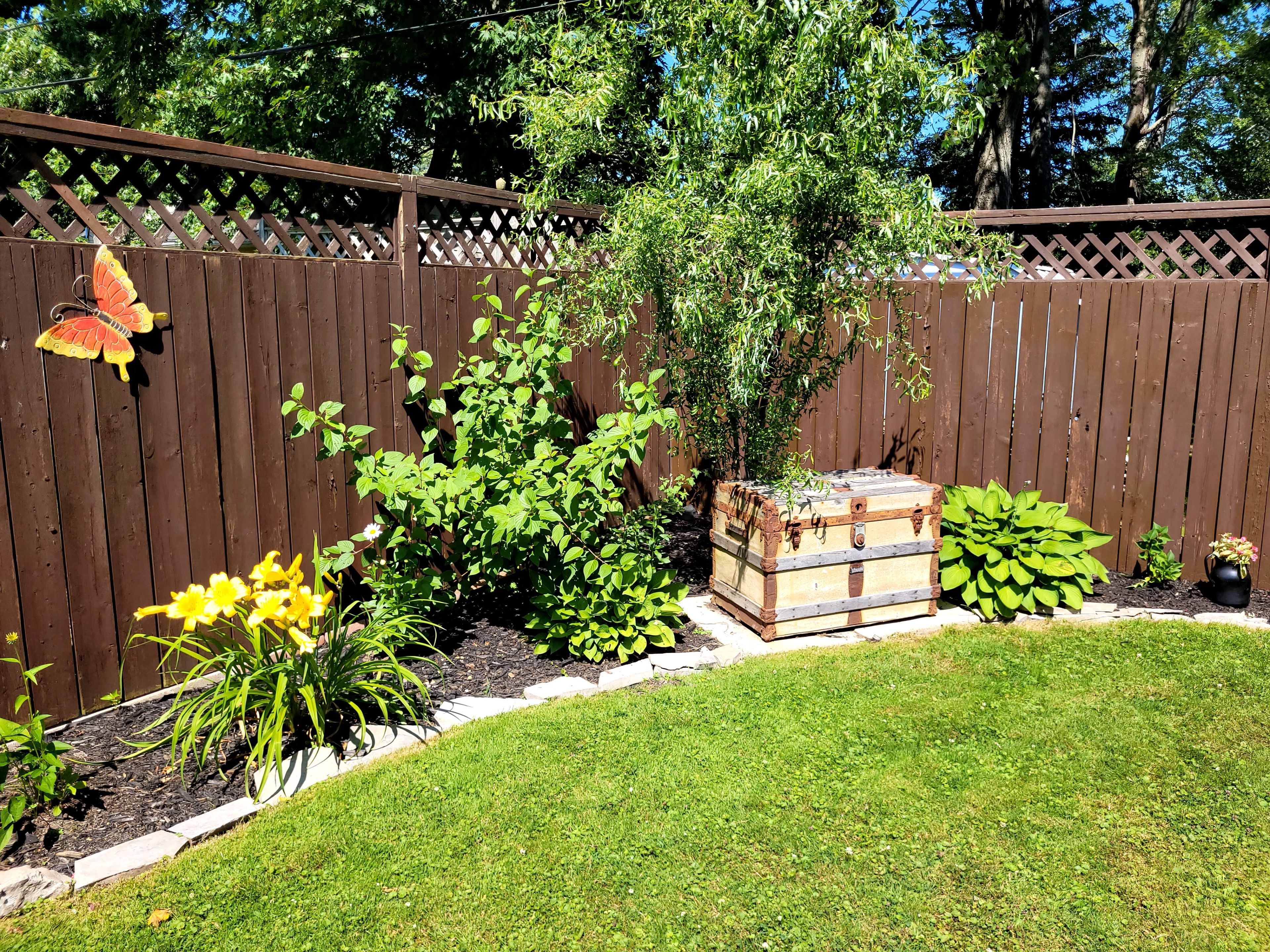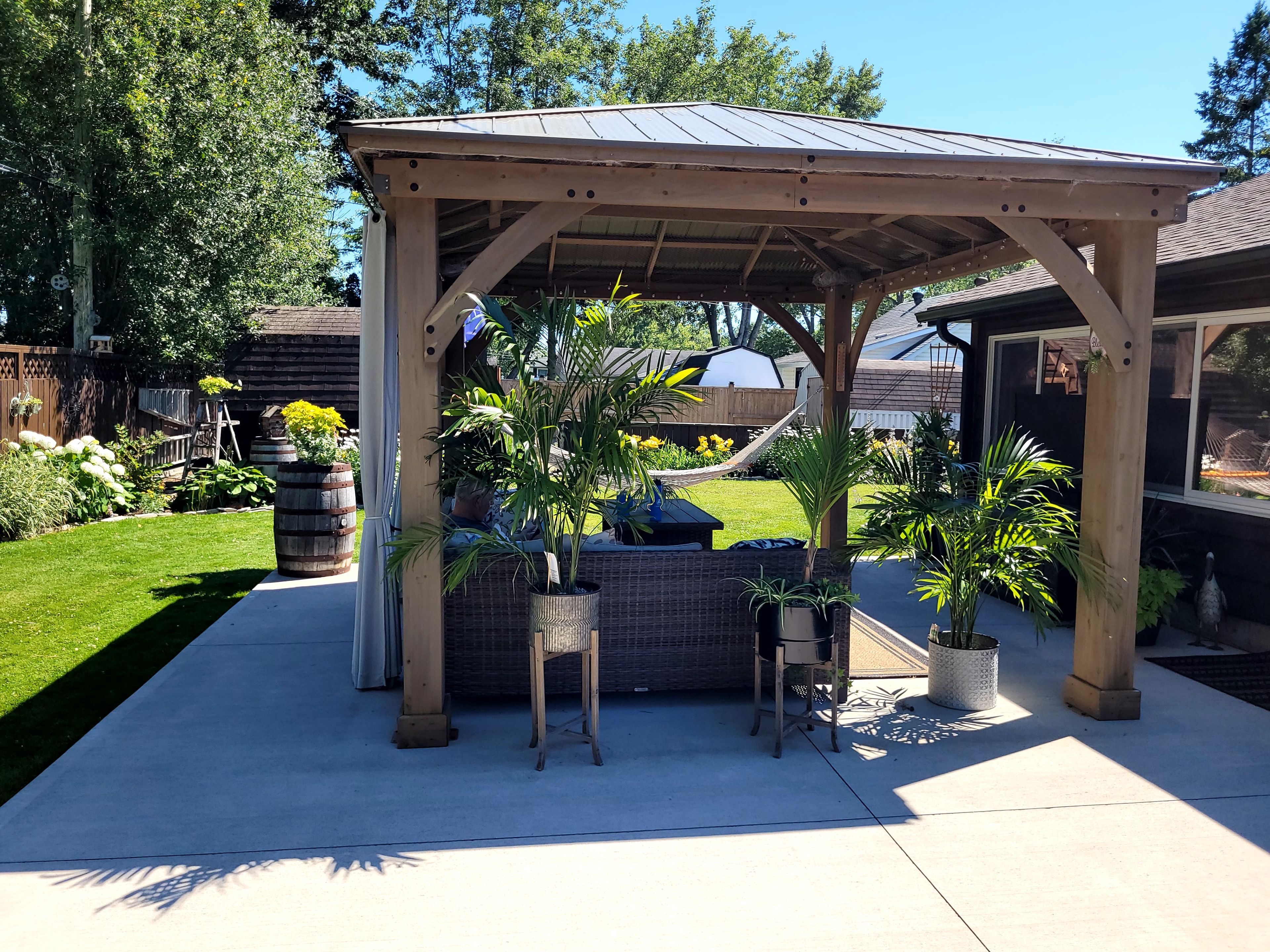 • Spacious fenced backyard features a concrete patio and gazebo for relaxation.