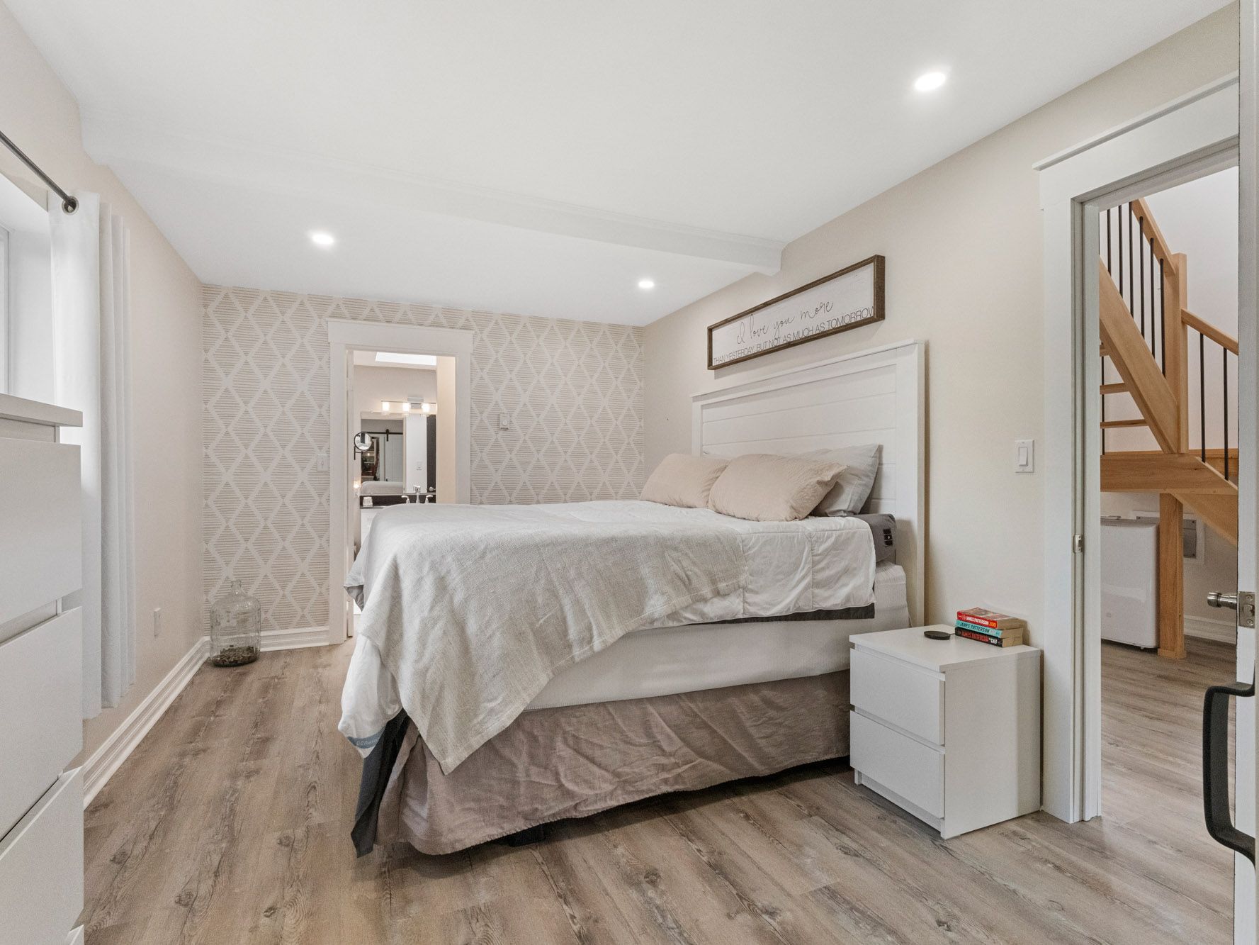 • Main-floor primary suite with a generous walk-in closet for convenience.