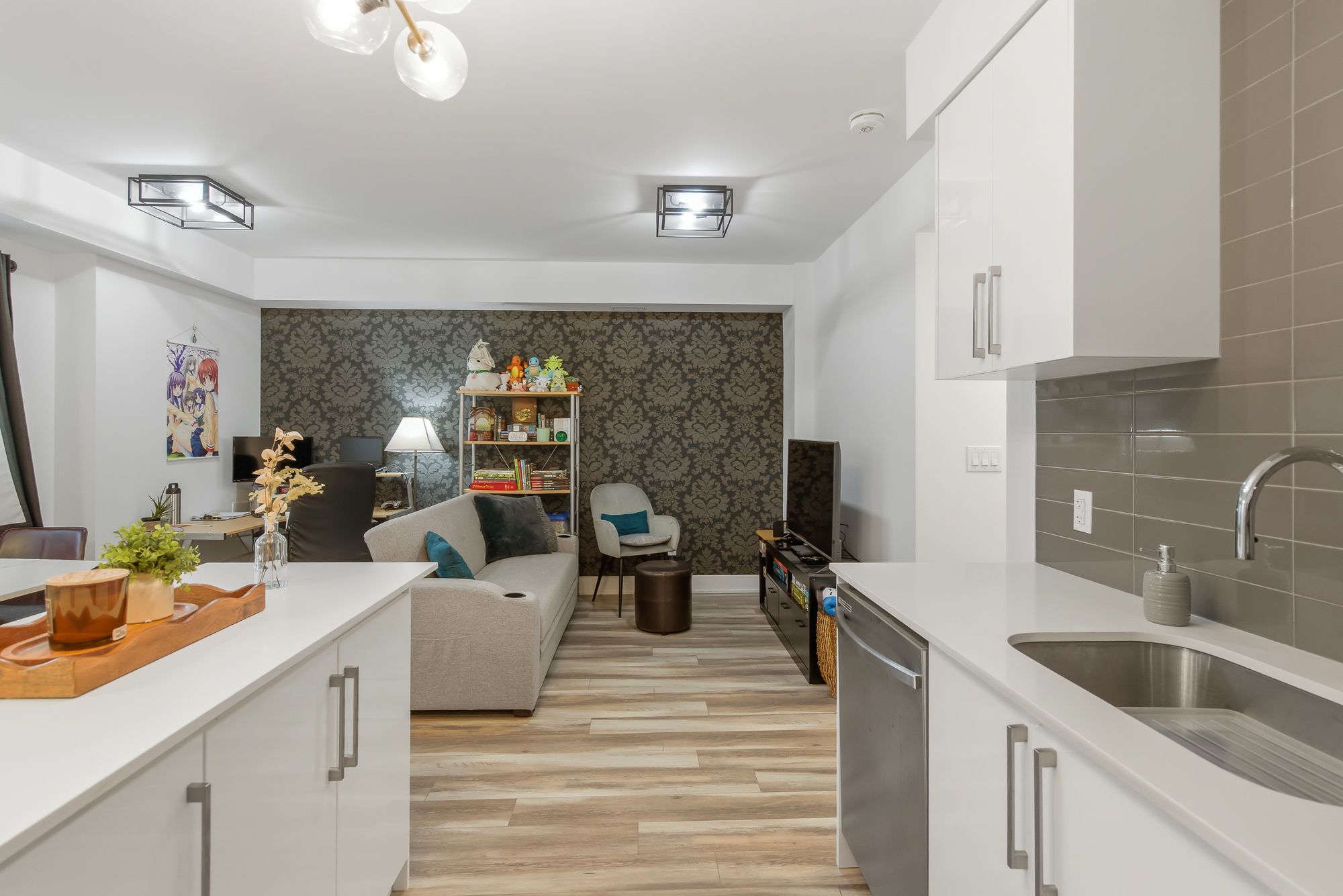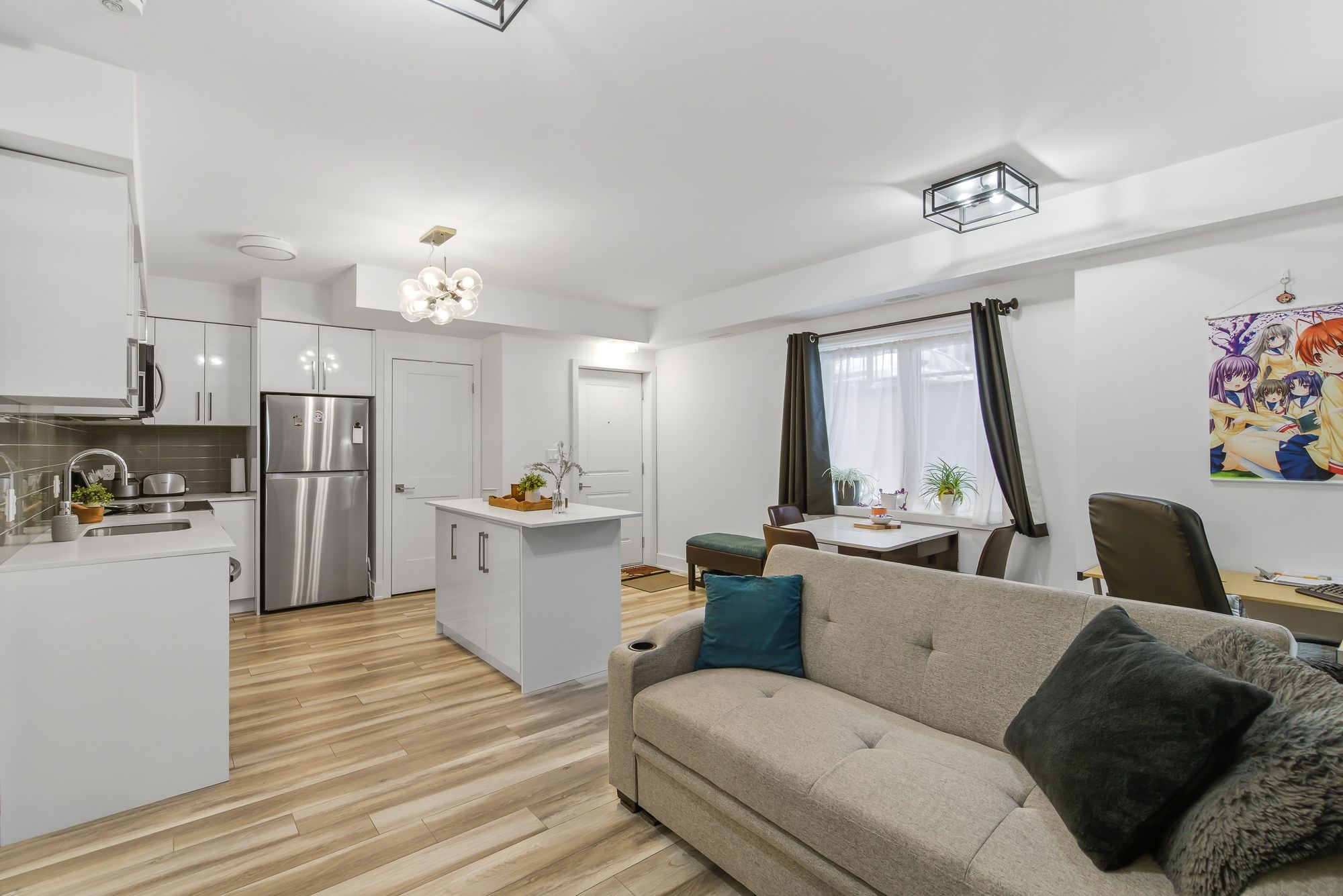 • Bright open-concept layout with contemporary kitchen and ample living space.