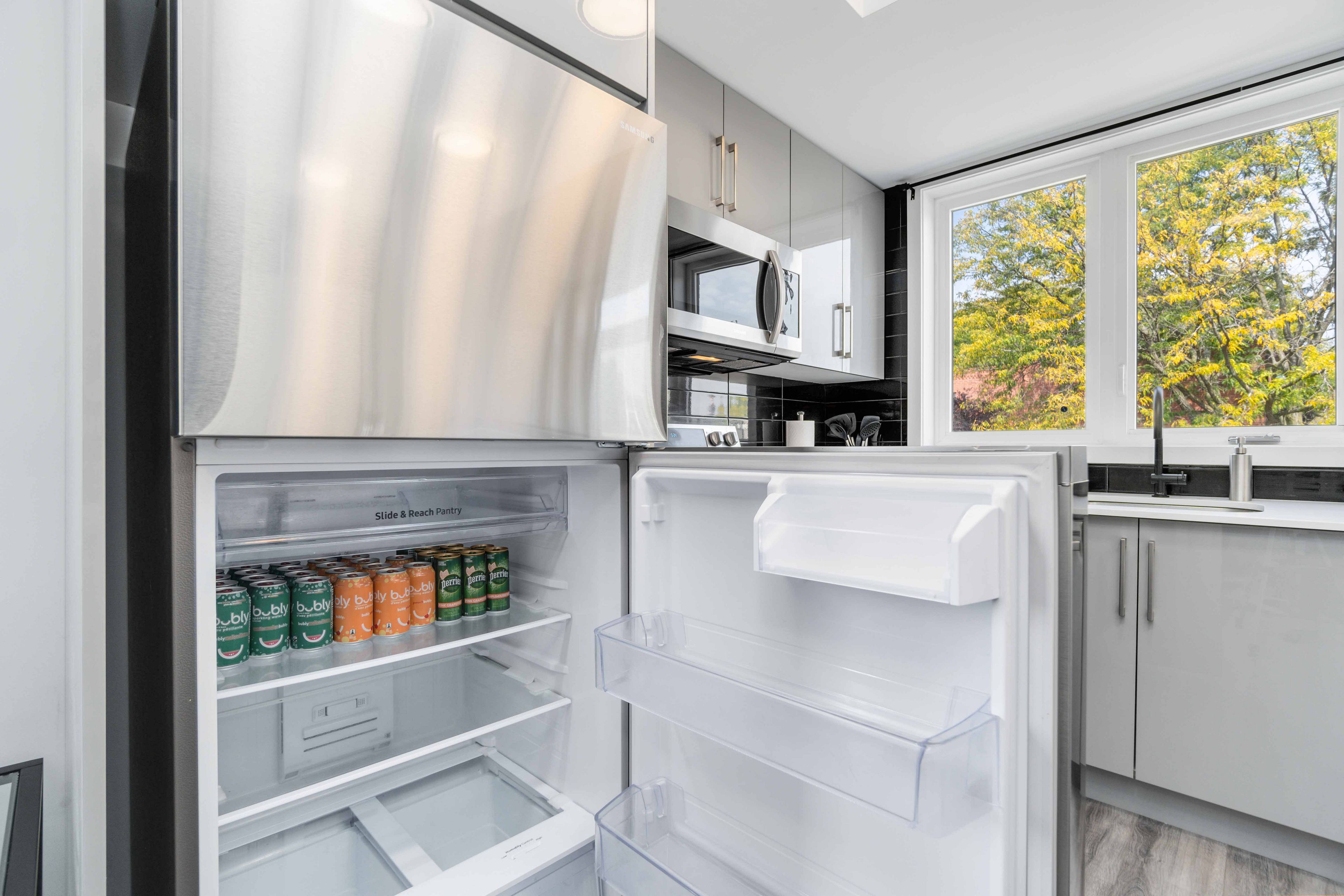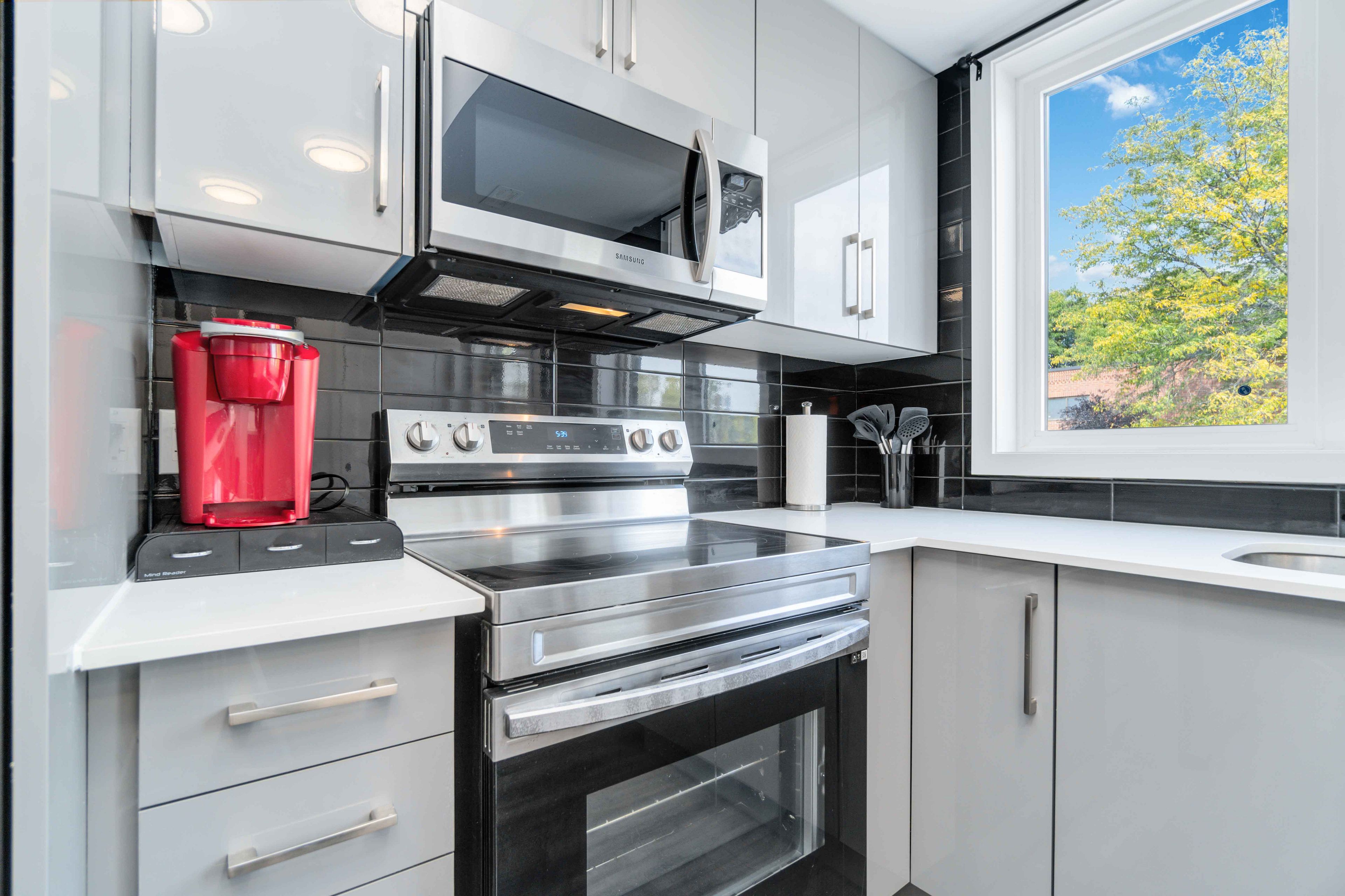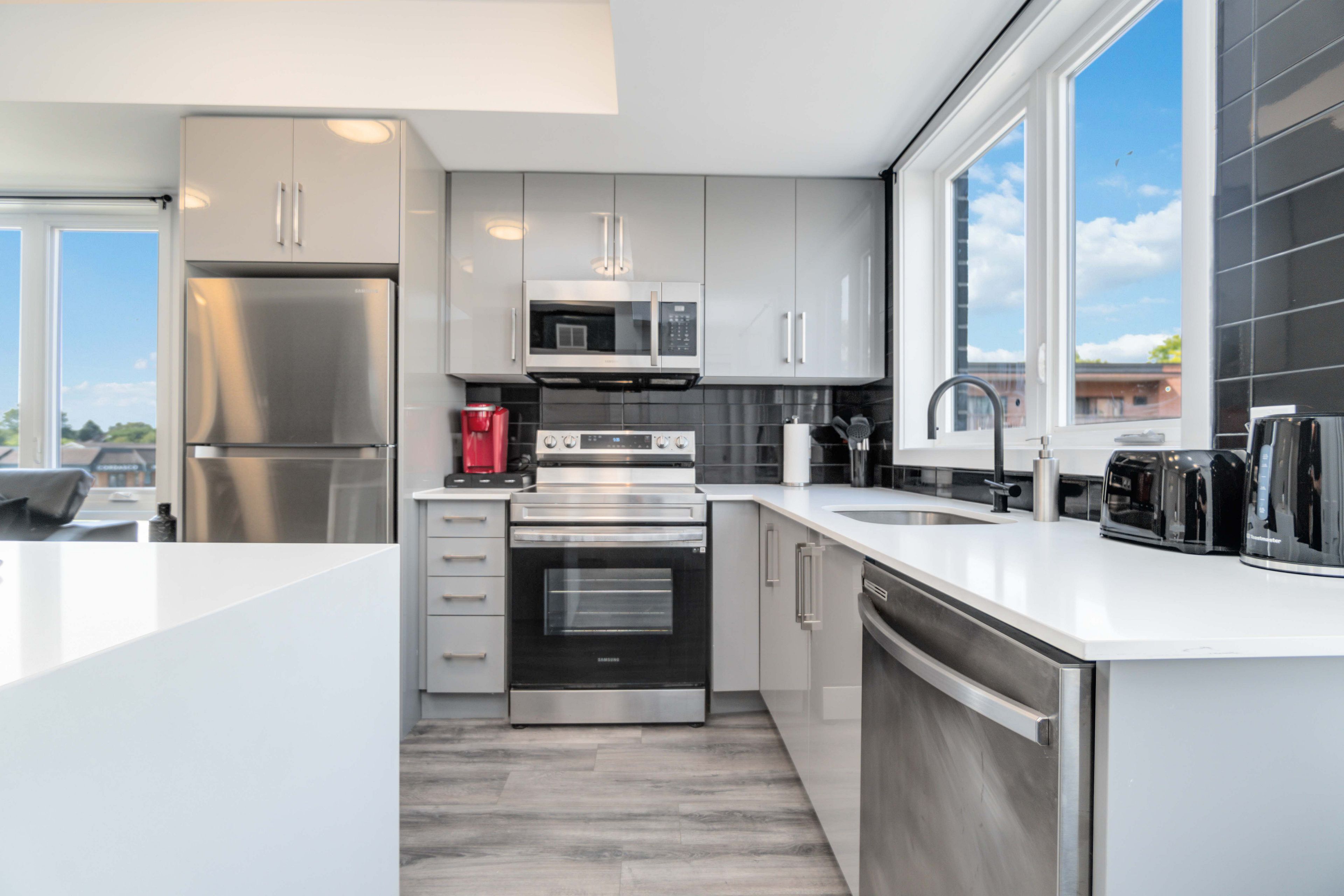 • Upgraded chef's kitchen with quartz countertops and premium stainless steel appliances.