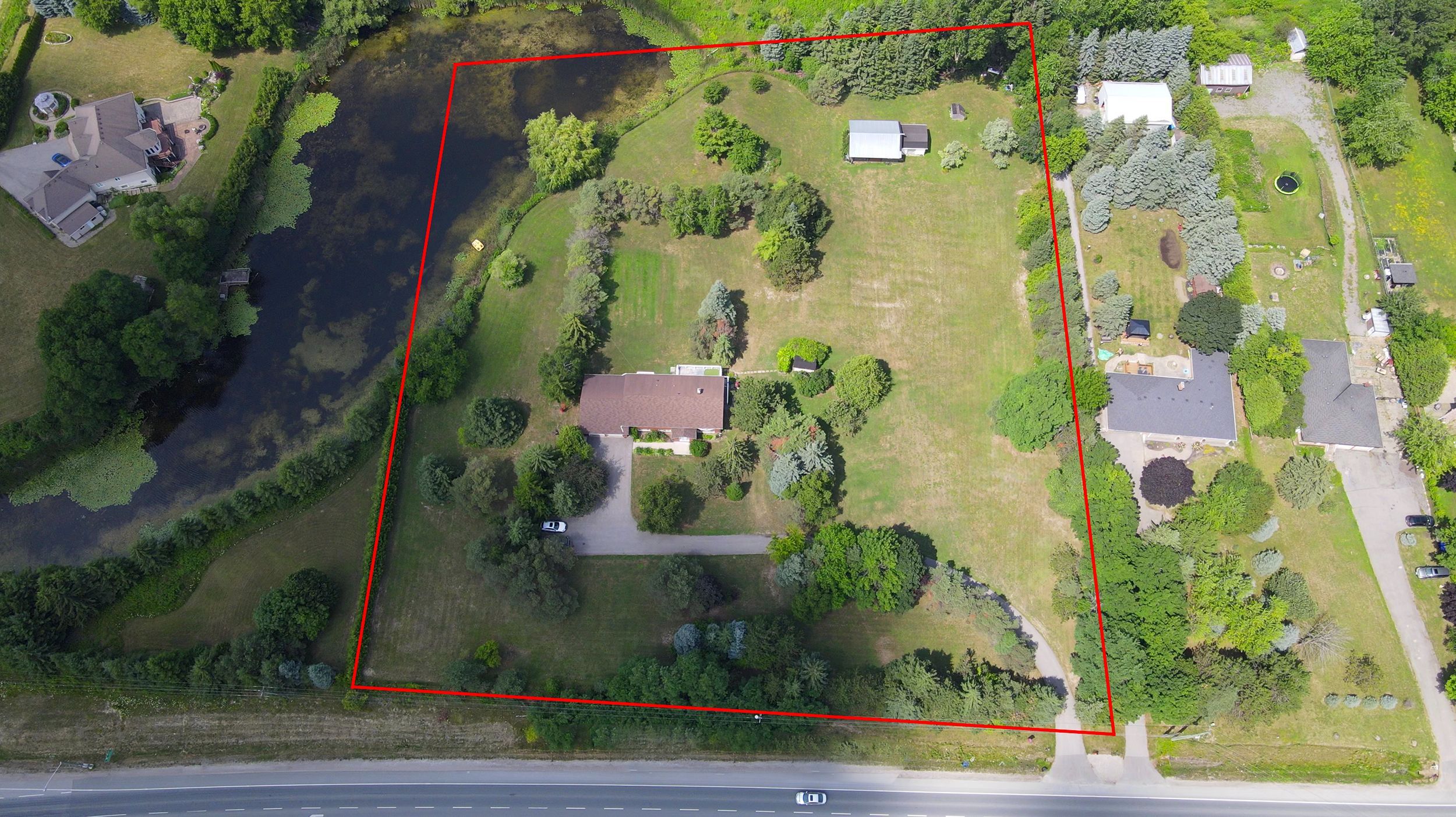 Stunning 4+ acres land with your own private partion of pond nestled within a community of multi-million-dollar residences**the long, tree-lined winding driveway leads you to a bright cozy custom built walkout basement bungalow separate living, dining and family room that walks out to a huge deck with a view of the private waterview and peaceful nature. Attached double car garage with direct access to home,private septic system and well. Recent updates include the roofs in 2024,walkout basement with full sized windows facing a bright view with 2 bedrooms and 1 bathroom. Just few mins drive to hwy 404, close to bloomington go train station, under 15 mins to markham! Amazing location close to golf courses, schools, equestrian facilities**additional oversize dbl garage/workshop at rear of property. Picturesque pond abuts corner of property excellent value!