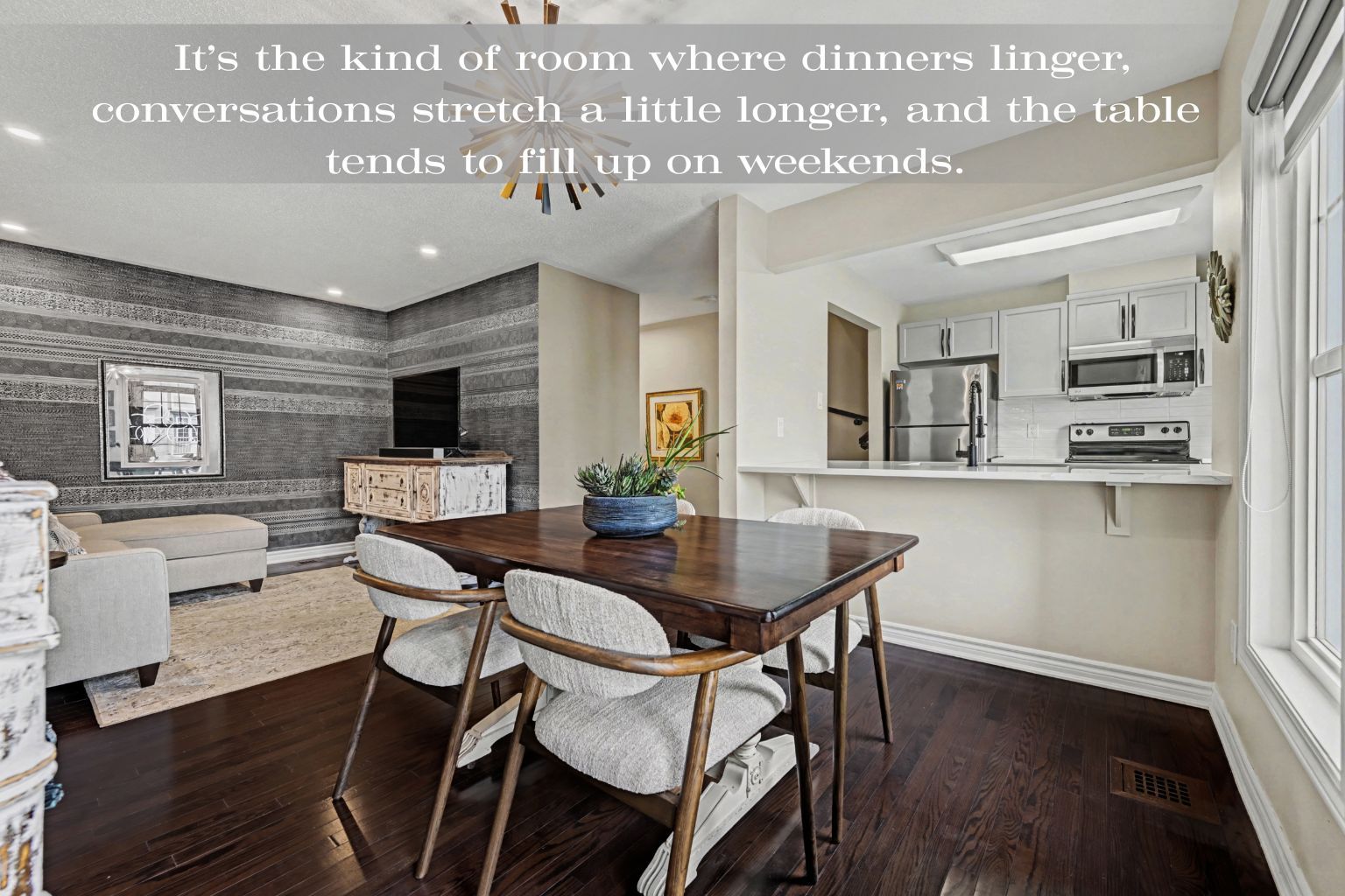 • Bright dining area perfect for gatherings and long conversations.