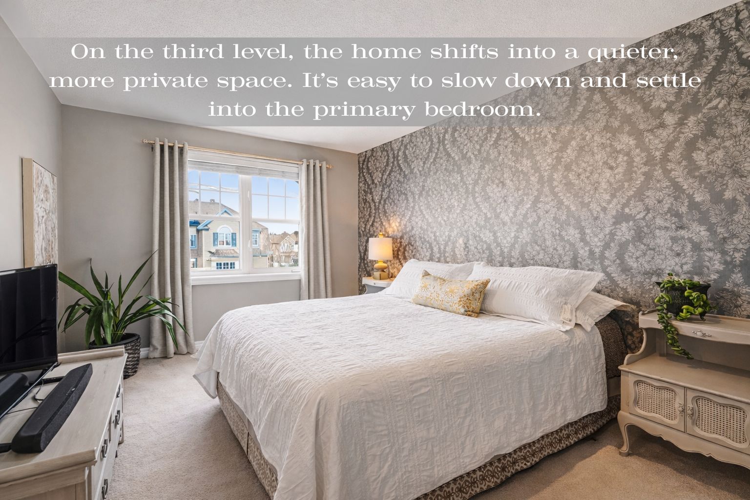 • Quiet main bedroom with walk-in closet and unique ensuite bathroom.