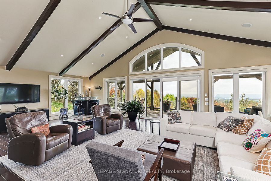 A nature lovers and gardeners paradise! 50 acres of fields and woods with a spectacular view over the beaver valley. Pesticide free farming for over 50 years. Property abuts the bruce trail, and several kilometers of private trails developed in co-operation with adjacent landowners, used for hiking, horseback riding and cross-country skiing. Water, free of sulphur and iron, is from an artesian spring, shared with a neighbour, with uninterrupted flow for over a century. In the spring, watercress from the creek and wild leeks from the woods herald the growing season. The house itself, with over 3500 sq. Ft and 5 bedrooms, is surrounded by perennial garden beds, a large vegetable plot, a garden shed and a hot tub. Rebuilt in 2007, it has a 2-car built-in garage, essential during the winter months. The great room, is dominated by a two-sided field stone fireplace, and a 15 ft cathedral ceiling. It affords views over the valley and of spectacular sunsets. Beyond the separate dining room, is a glass-enclosed insulated sunroom, usable year-round. For multi-generational living, a design has been included in the attachments for construction of a self-contained one-bedroom flat, with access to the great room and separate exterior access over an extended garage. For added security, a 12kw propane generator starts automatically in case of a power failure. The property blends privacy with exclusive on-site recreational opportunities and proximity to needed supplies and home-made bread and pies at the nearby popular ravenna country market. The 12th line has little traffic, not being a through road, however it is on the school bus route and and receives early morning snow-ploughing in the winter. The present owners hope the new owners will enjoy life on this unique property as much as they have for almost 50 years!
