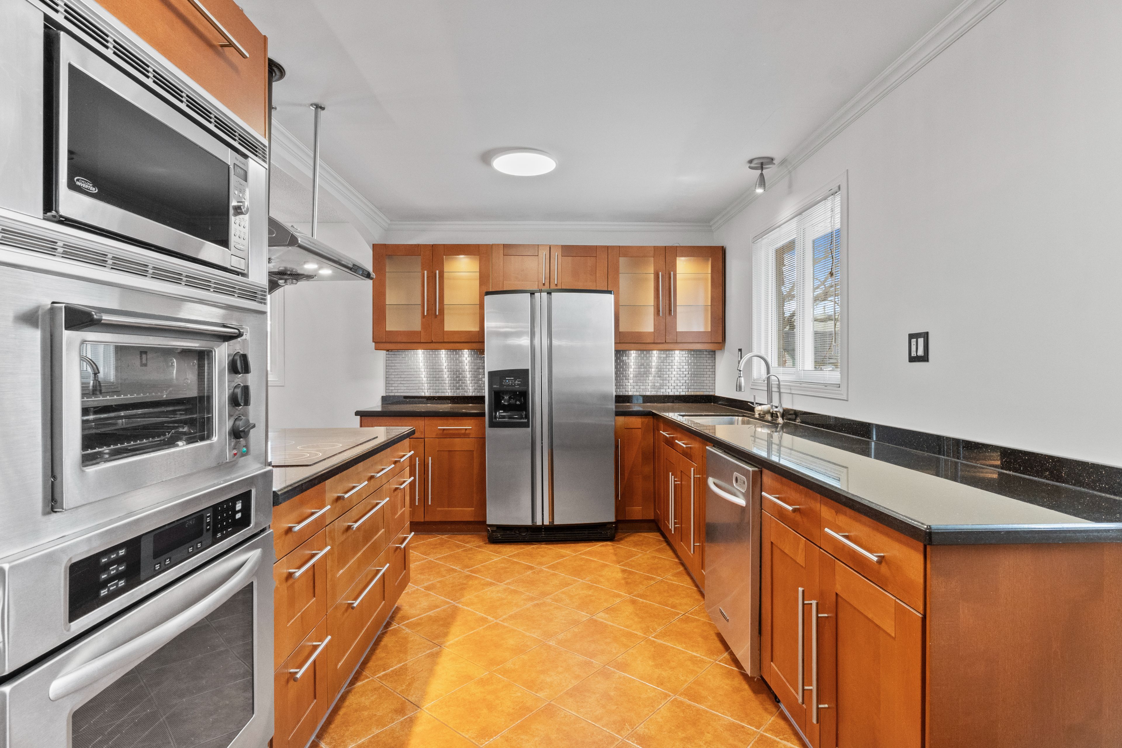 • Renovated chef's kitchen with built-in appliances and dedicated pantry.