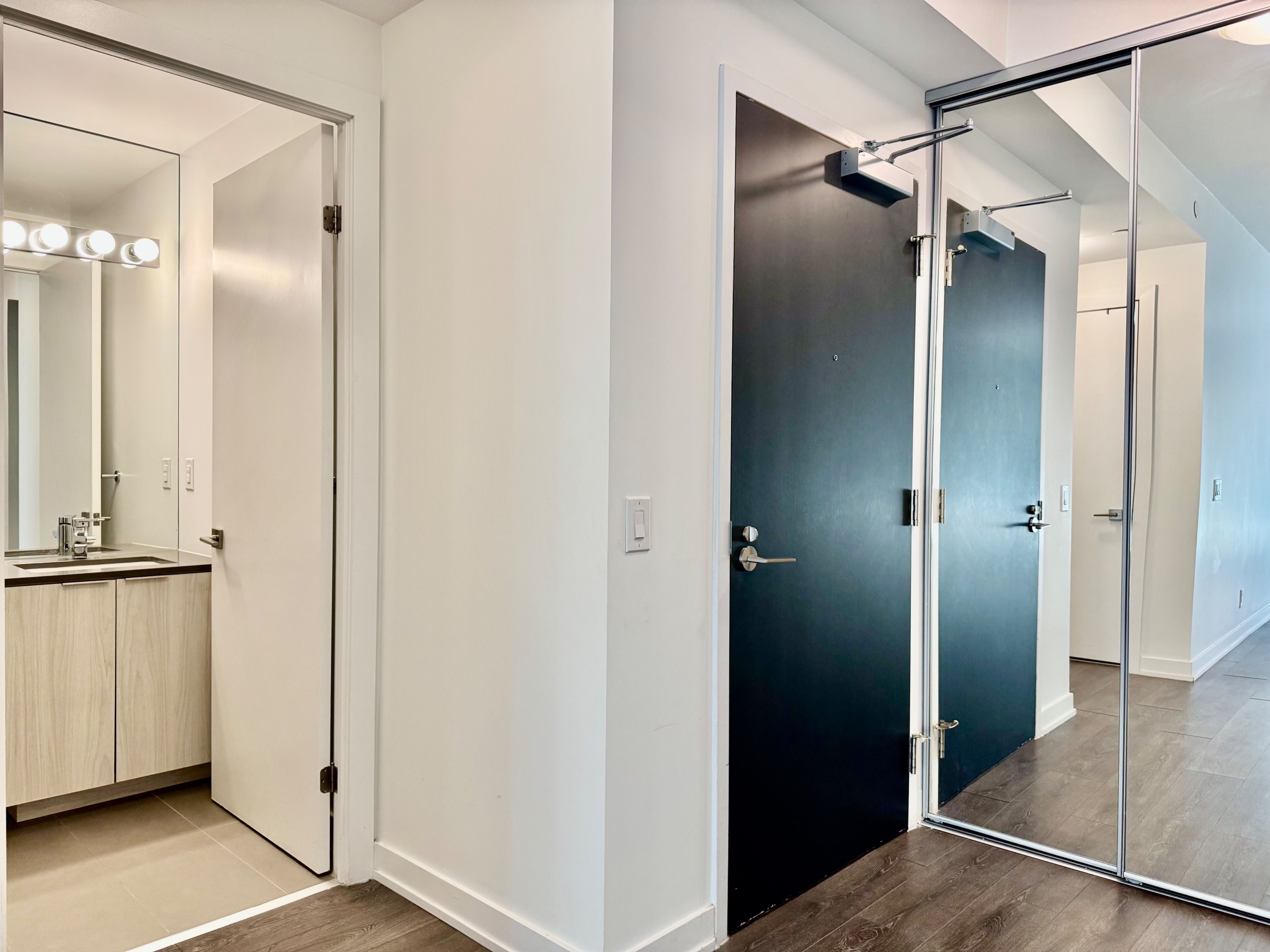 • Master bedroom with a private en-suite bathroom in a stylish condo.