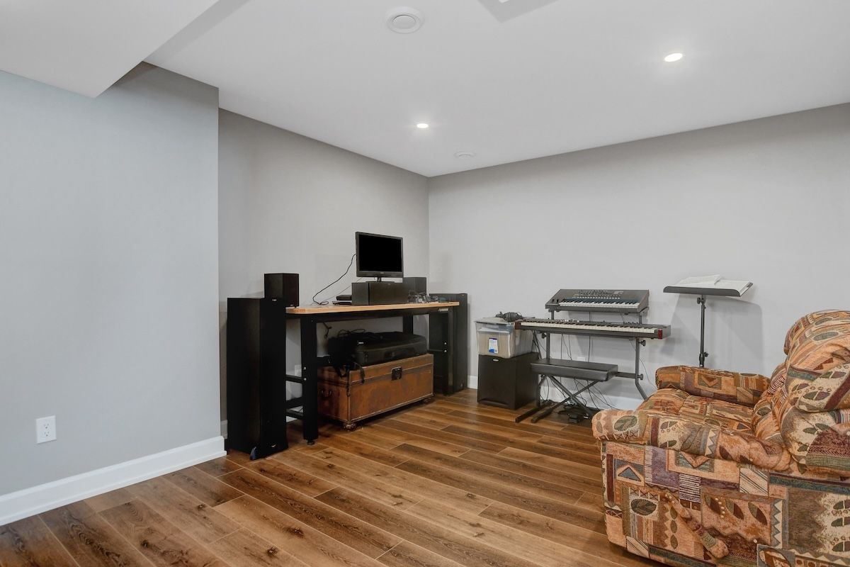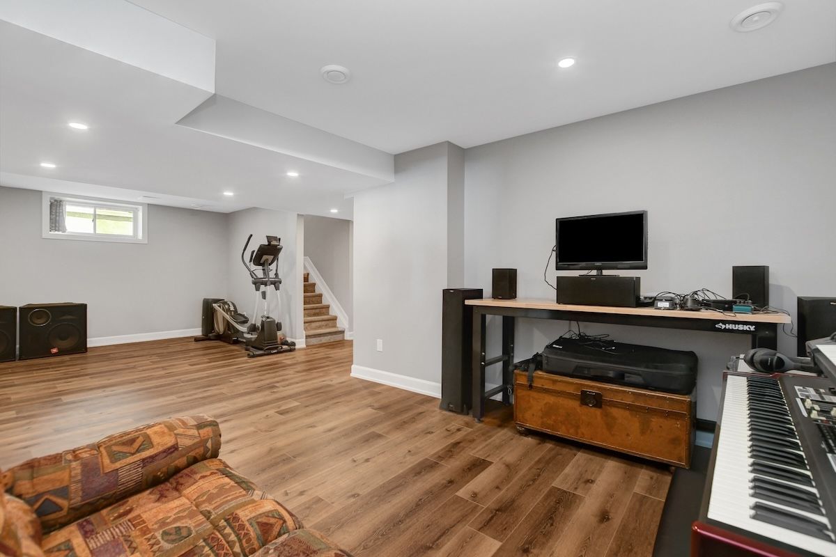 • Finished lower level with rec room and additional bedroom.