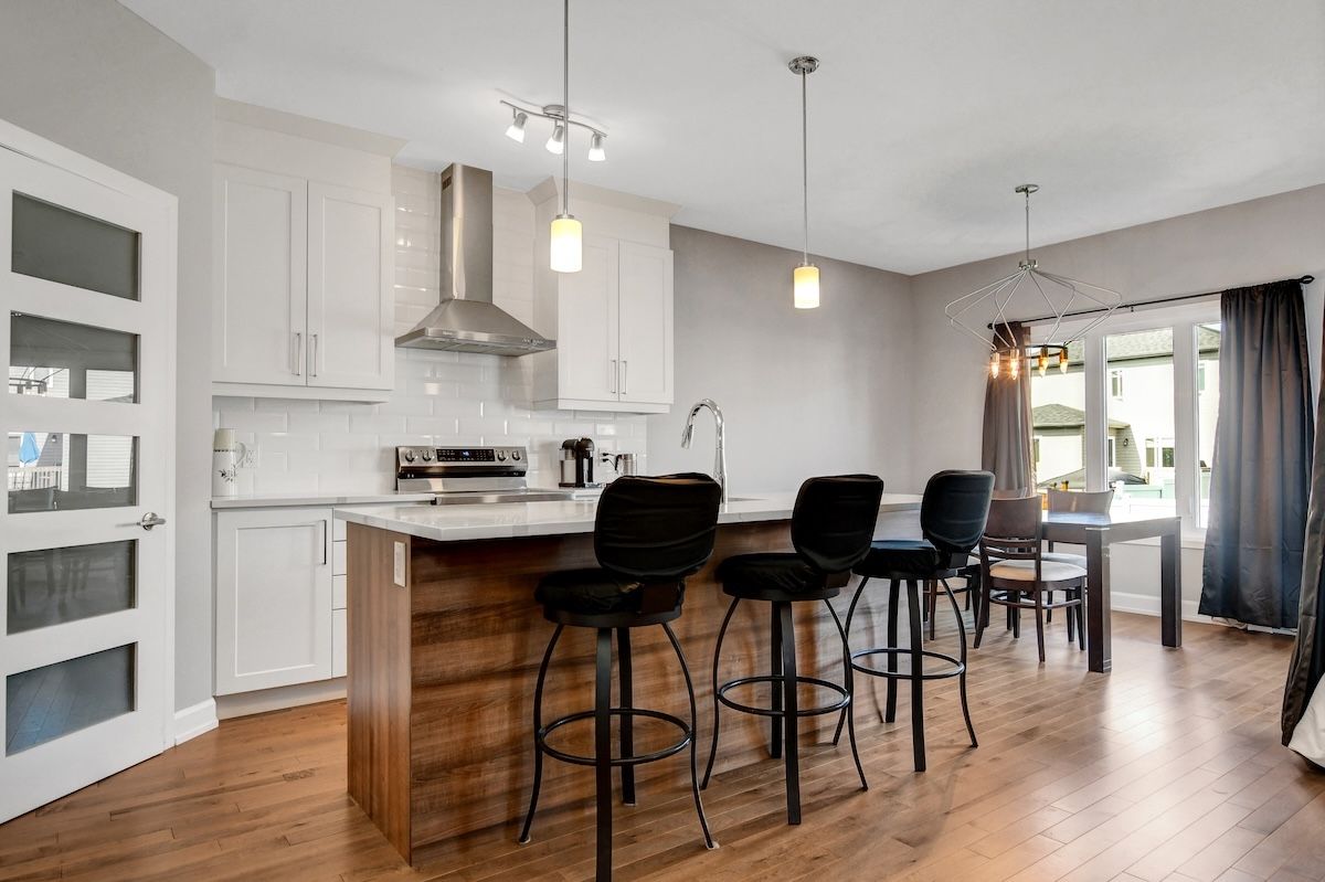 • Chef-inspired kitchen with quartz countertops and breakfast bar.