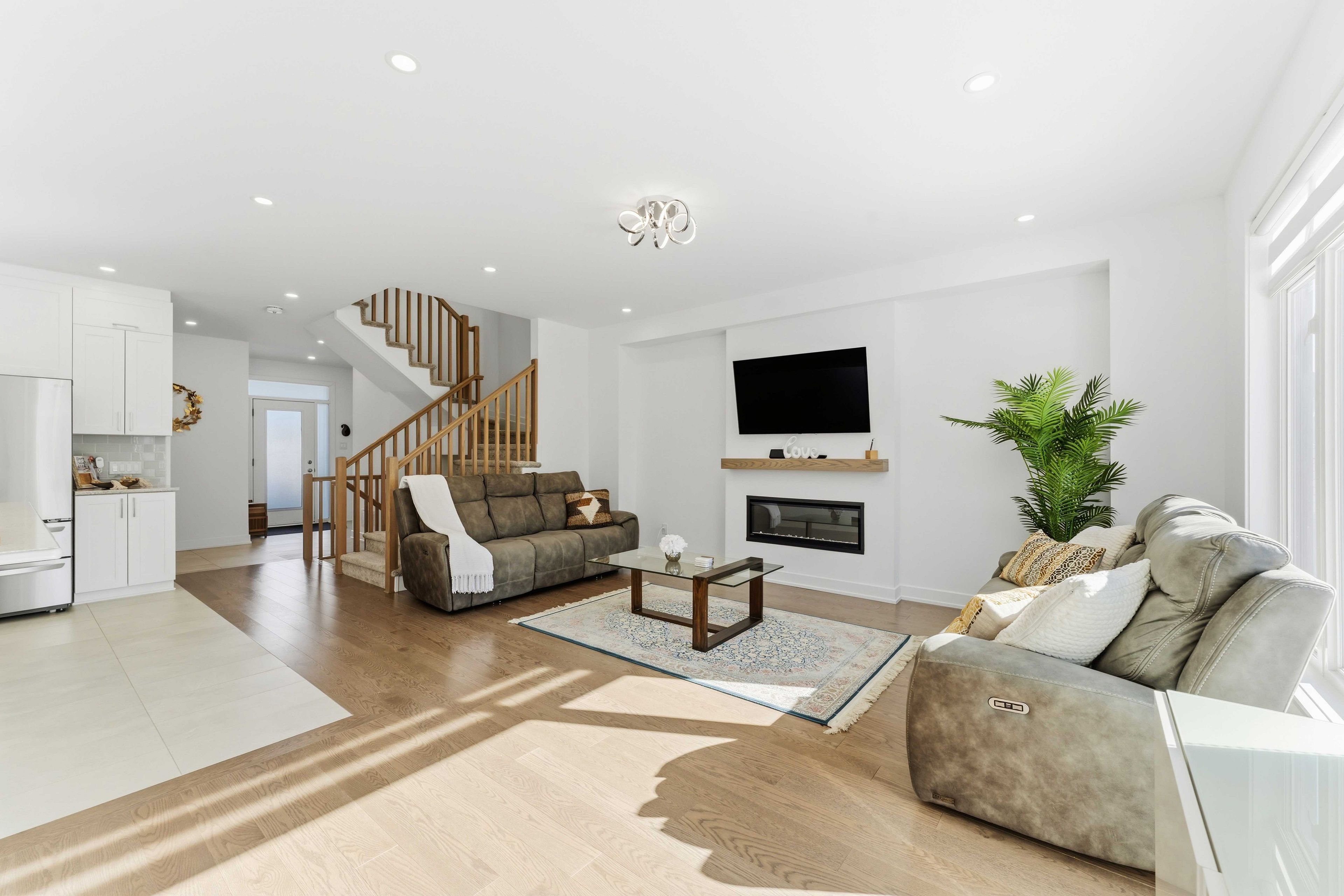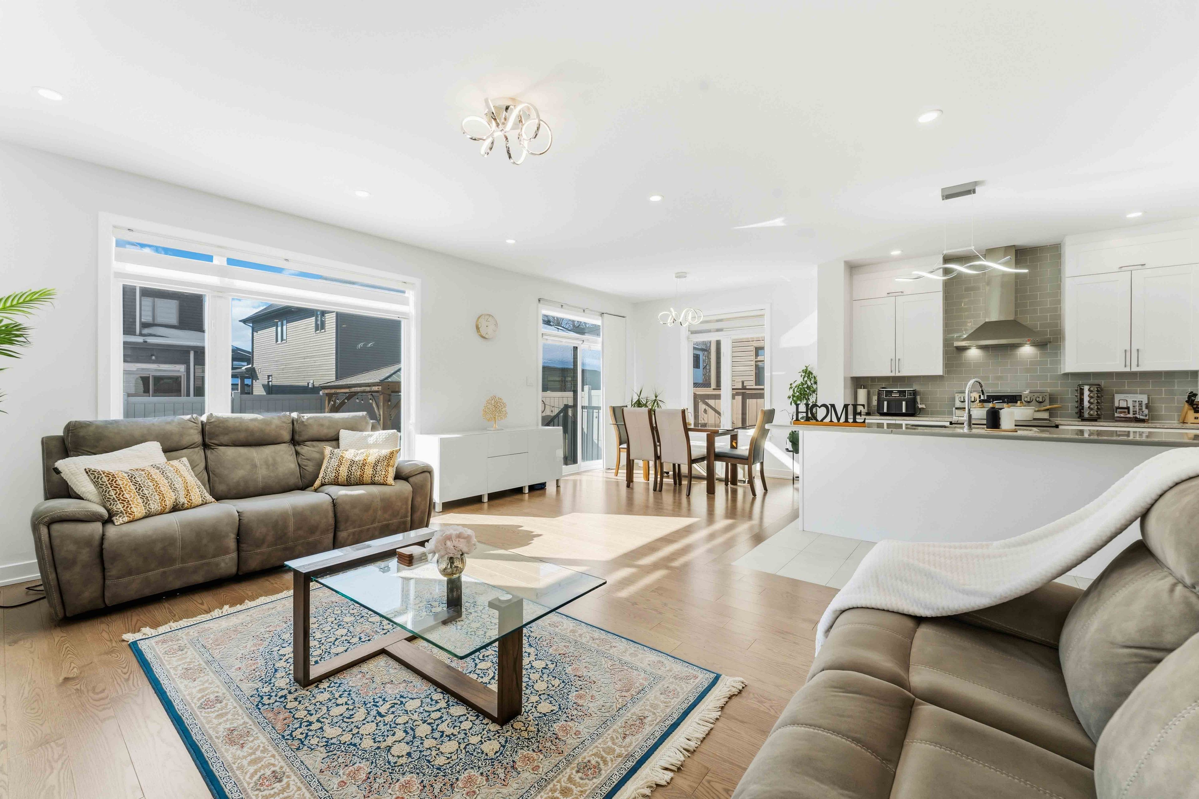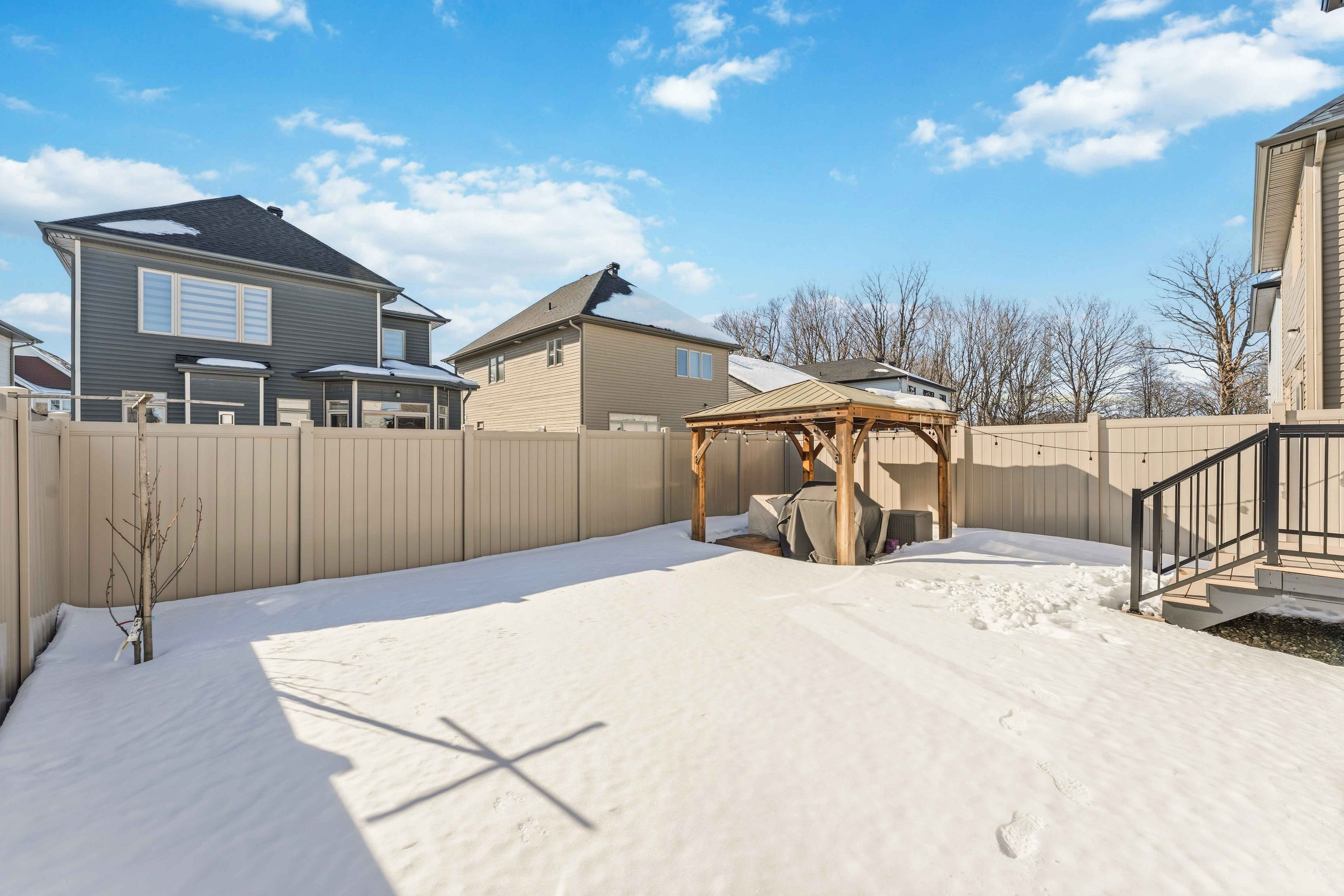 Welcome to this exceptional amherst model by claridge homes in the heart of stittsville - a beautifully upgraded, move-in ready detached home that blends modern style, everyday comfort, and long-term value in one of ottawa's most desirable family-friendly communities close to trans canadian trail, westwood park, great schools, shopping, and daily amenities. The main floor features engineered 5" red oak hardwood flooring, pot lights throughout, and large windows that fill the space with natural light, creating a warm and contemporary atmosphere. The chef-inspired kitchen is the centerpiece of the home, showcasing ceiling-height custom mdf cabinetry with soft-close hardware, a spacious walk-in pantry, and premium 1-1/4" quartz countertops. Custom zebra blinds throughout add a refined finishing touch. Upstairs offers generously sized bedrooms with plush carpeting and ultra-high-density underpadding for added comfort and quiet. The spacious primary suite provides a relaxing retreat at the end of the day. Everyday functionality is elevated with a fully upgraded laundry area, including a full-size washer with lg sidekick pedestal washer for simultaneous loads, a full-size dryer with pedestal storage, and an upgraded mudroom laundry tub. Built for efficiency and future readiness, the home includes a high-efficiency furnace with humidifier, hrv system, central air conditioning, and a 200-amp electrical panel with ev-ready conduit rough-in to the garage. The owned hot water heater eliminates rental fees. Smart features include video doorbells at the front and patio doors, a smart garage door opener with camera, upgraded lighting, and modern electrical finishes. The fully fenced backyard is designed for privacy and low maintenance, featuring partial interlock with gazebo, zero-maintenance pvc decking with aluminum railing, a natural gas bbq line, hot-water exterior bib, and storage shed, along with custom garage shelving. It is a