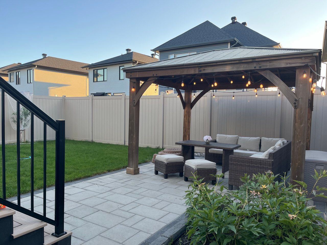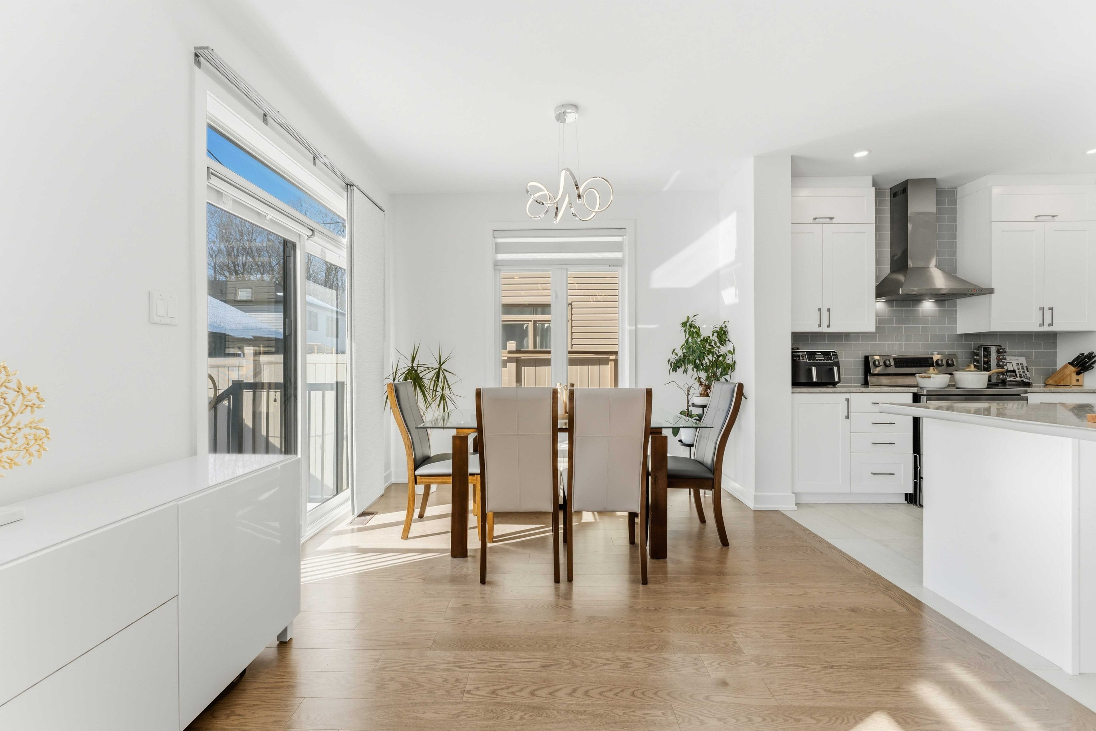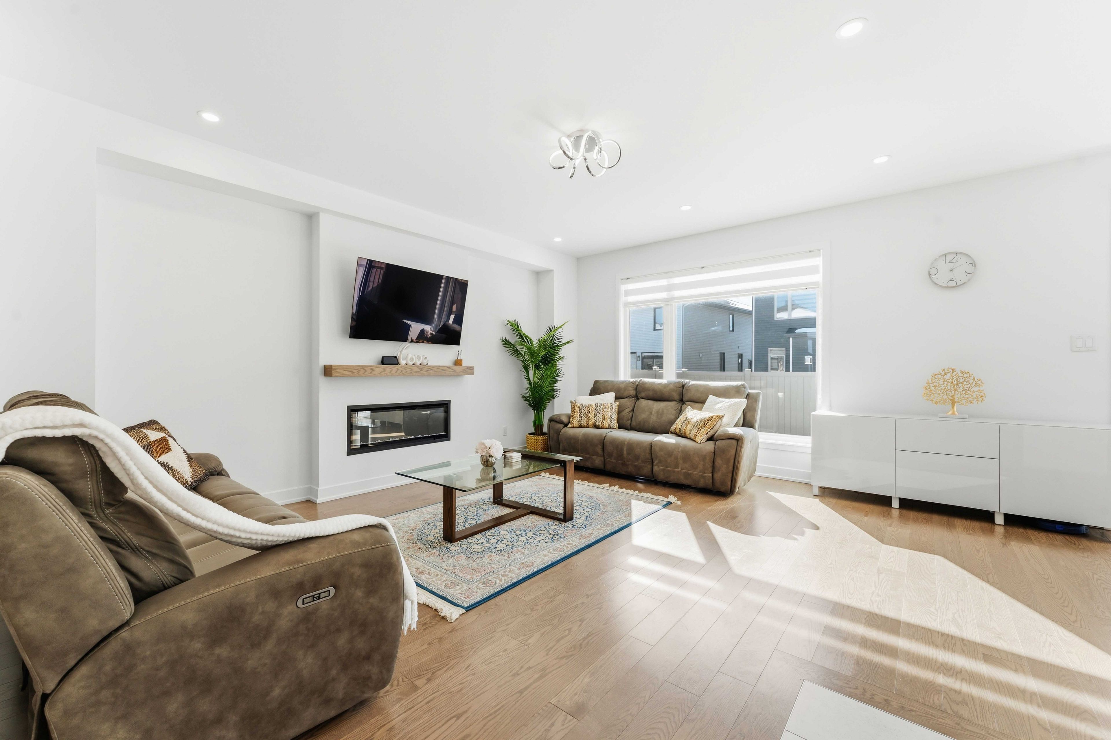 Welcome to this exceptional amherst model by claridge homes in the heart of stittsville - a beautifully upgraded, move-in ready detached home that blends modern style, everyday comfort, and long-term value in one of ottawa's most desirable family-friendly communities close to trans canadian trail, westwood park, great schools, shopping, and daily amenities. The main floor features engineered 5" red oak hardwood flooring, pot lights throughout, and large windows that fill the space with natural light, creating a warm and contemporary atmosphere. The chef-inspired kitchen is the centerpiece of the home, showcasing ceiling-height custom mdf cabinetry with soft-close hardware, a spacious walk-in pantry, and premium 1-1/4" quartz countertops. Custom zebra blinds throughout add a refined finishing touch. Upstairs offers generously sized bedrooms with plush carpeting and ultra-high-density underpadding for added comfort and quiet. The spacious primary suite provides a relaxing retreat at the end of the day. Everyday functionality is elevated with a fully upgraded laundry area, including a full-size washer with lg sidekick pedestal washer for simultaneous loads, a full-size dryer with pedestal storage, and an upgraded mudroom laundry tub. Built for efficiency and future readiness, the home includes a high-efficiency furnace with humidifier, hrv system, central air conditioning, and a 200-amp electrical panel with ev-ready conduit rough-in to the garage. The owned hot water heater eliminates rental fees. Smart features include video doorbells at the front and patio doors, a smart garage door opener with camera, upgraded lighting, and modern electrical finishes. The fully fenced backyard is designed for privacy and low maintenance, featuring partial interlock with gazebo, zero-maintenance pvc decking with aluminum railing, a natural gas bbq line, hot-water exterior bib, and storage shed, along with custom garage shelving. It is a