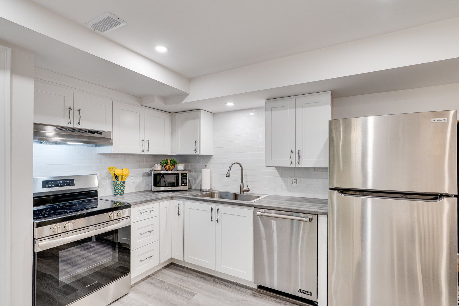 • Finished basement with bathroom and kitchen for guests or income potential.