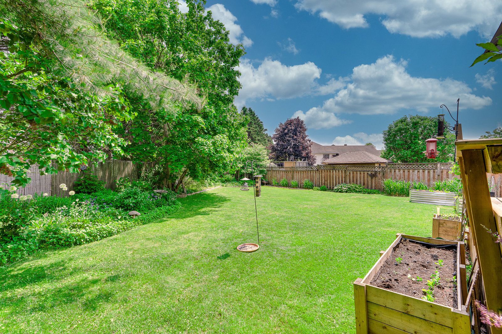 • Large yard with mature gardens, no rear neighbors, and a new deck.