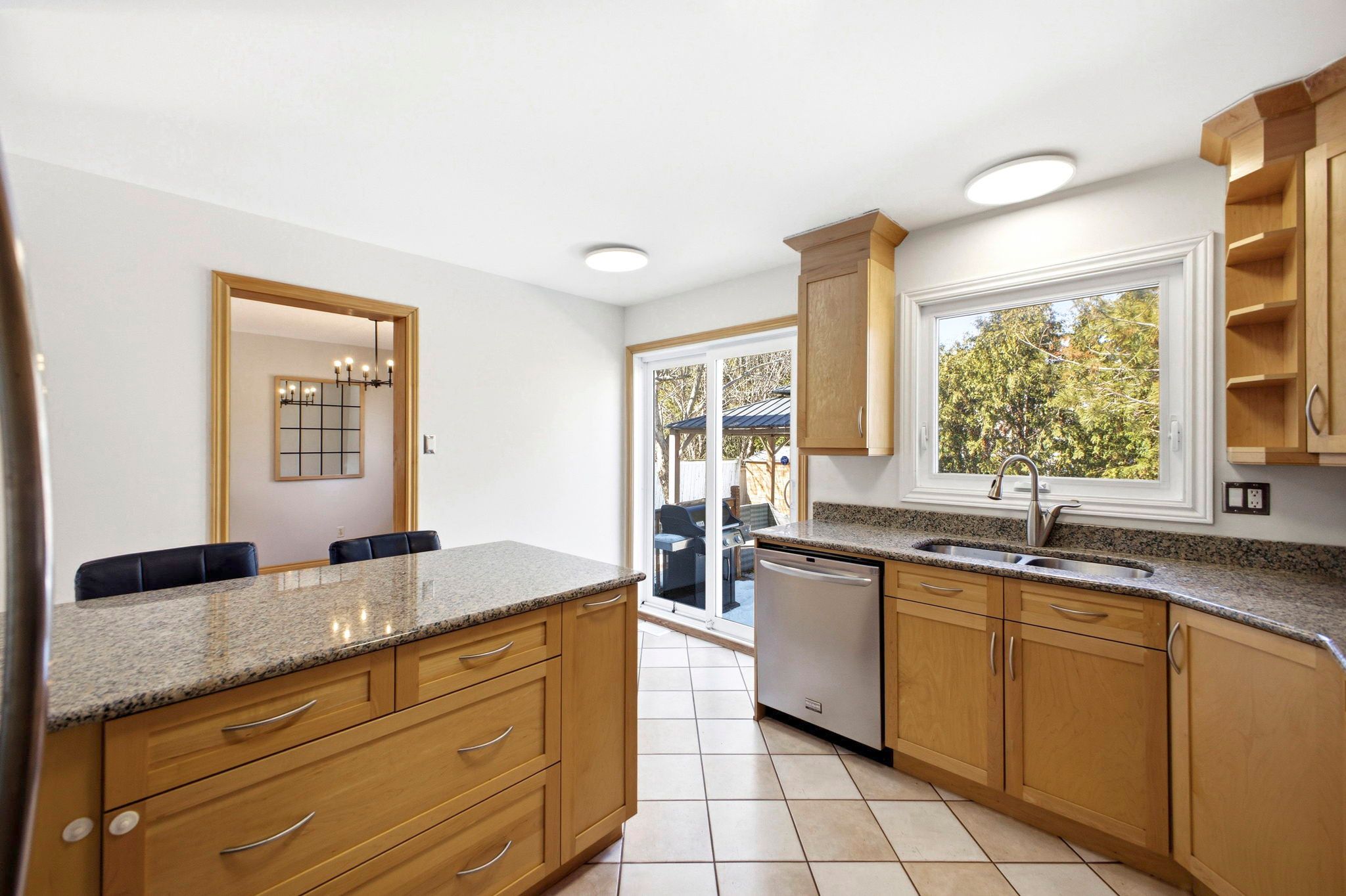 • Kitchen flows into dining and living areas, great for entertaining.