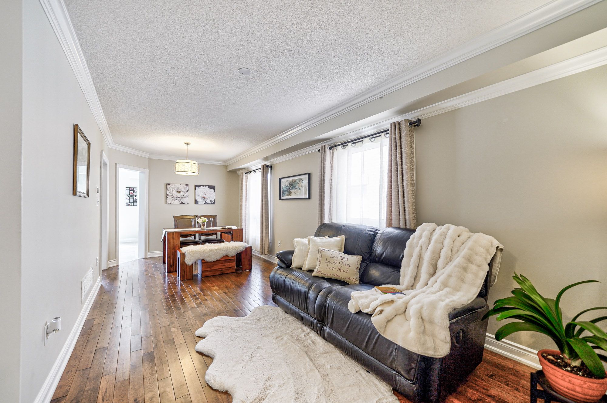 • Bright open concept living and dining area with oak hardwood floors throughout.