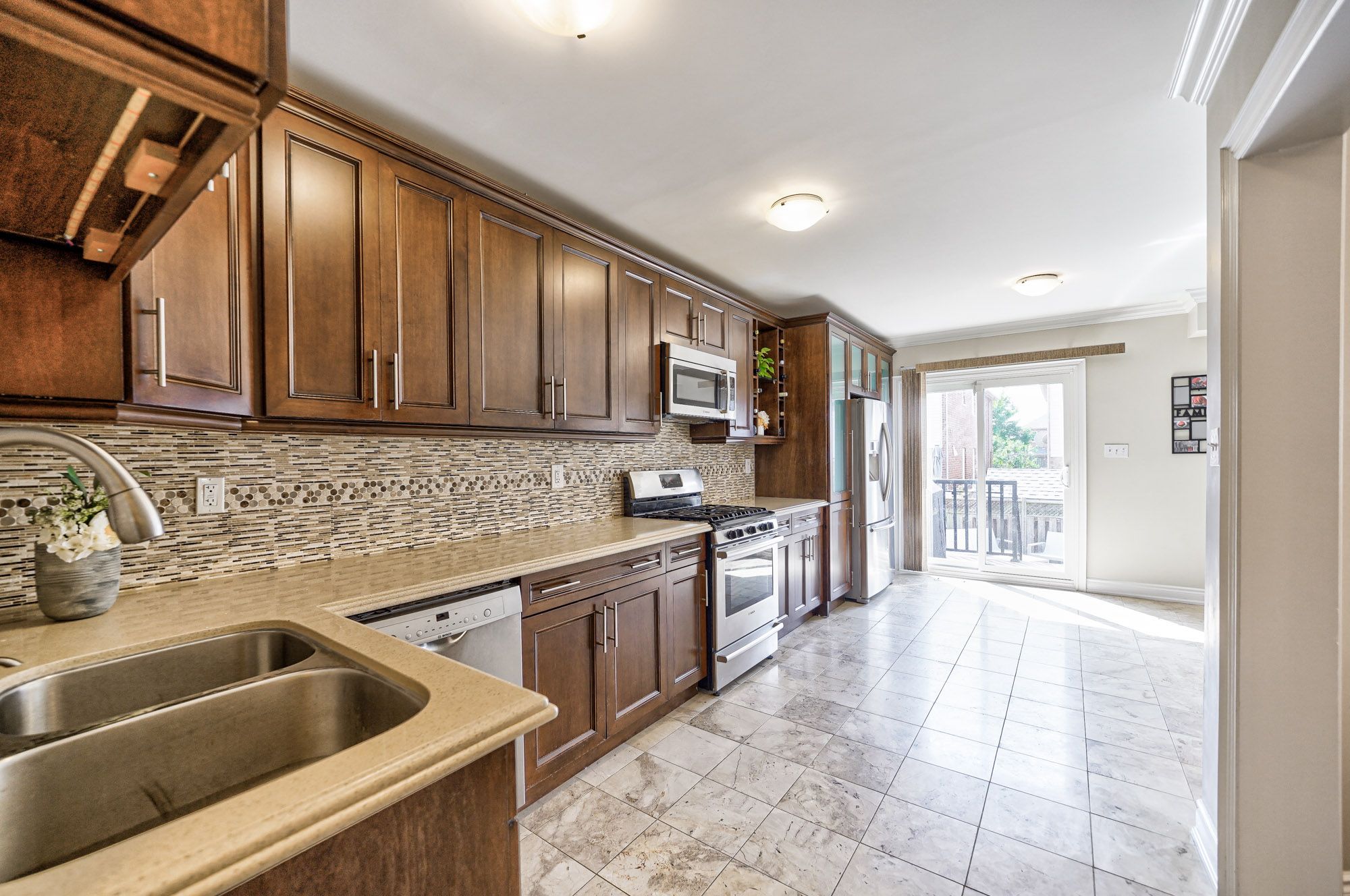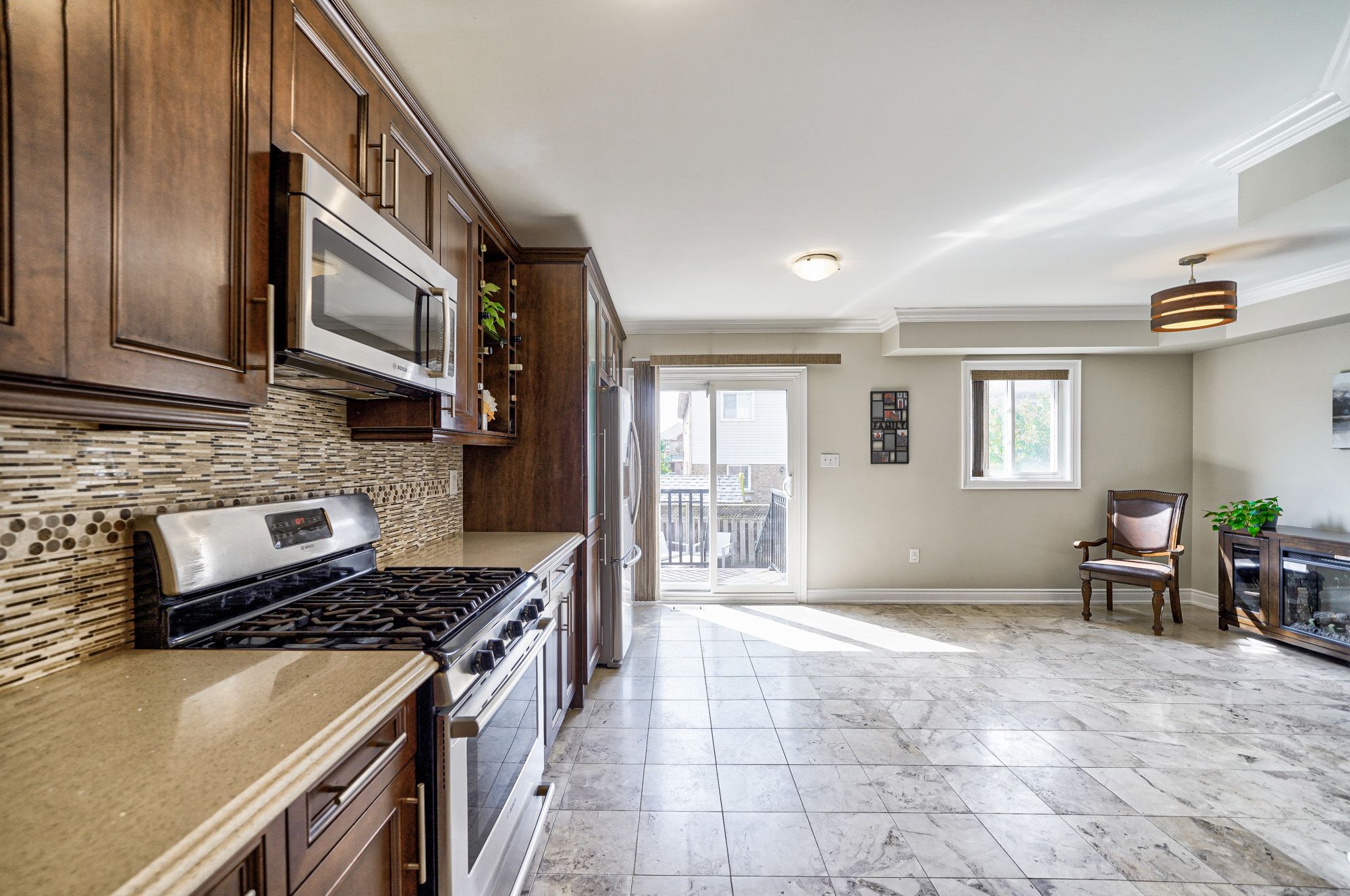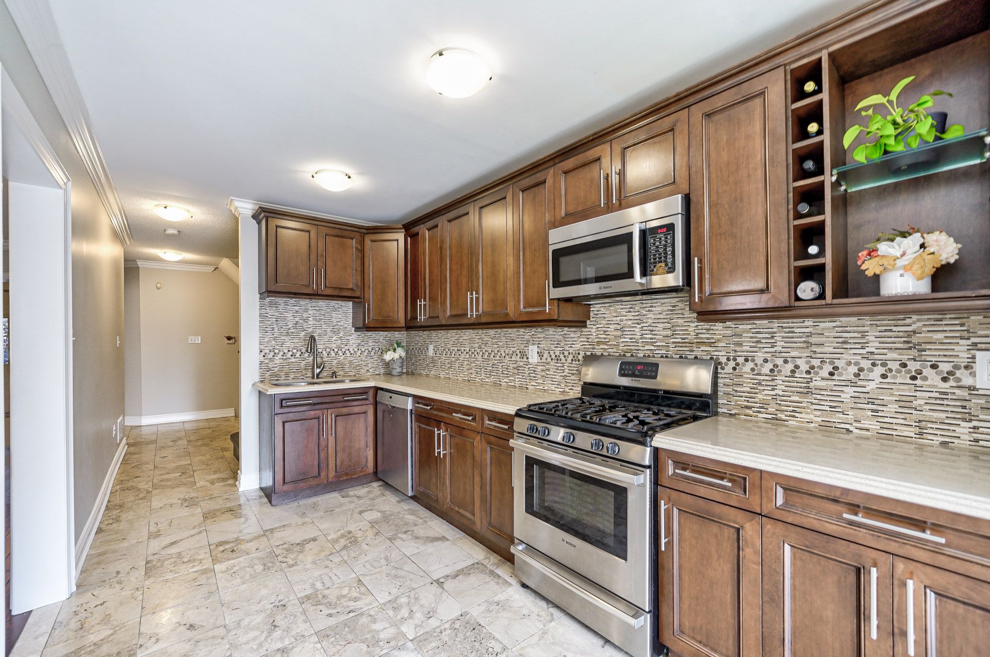 • Upgraded kitchen featuring maple cabinetry, quartz counters, and modern finishes.
