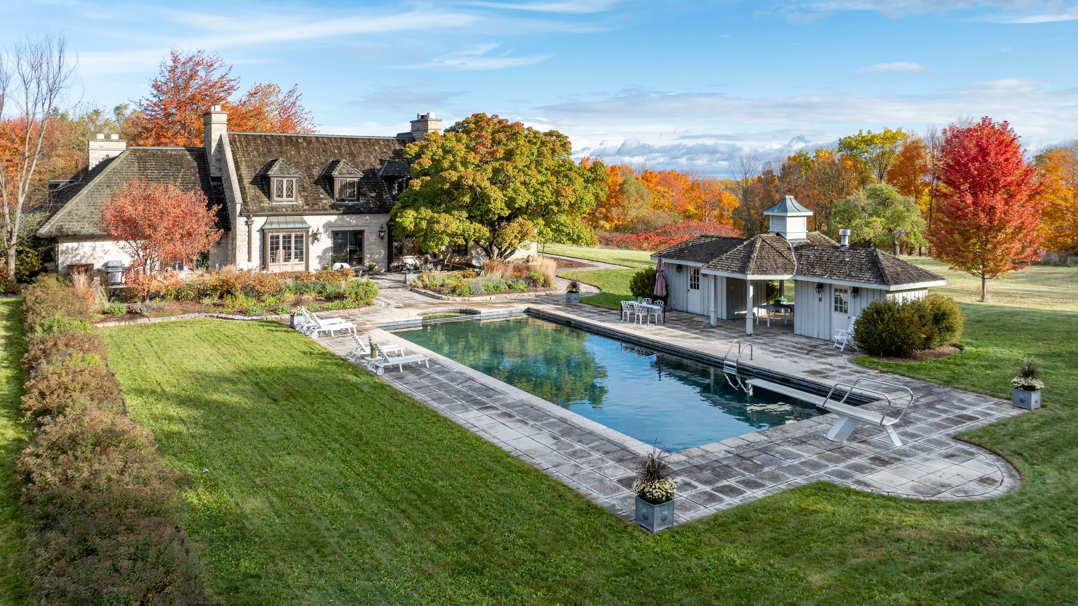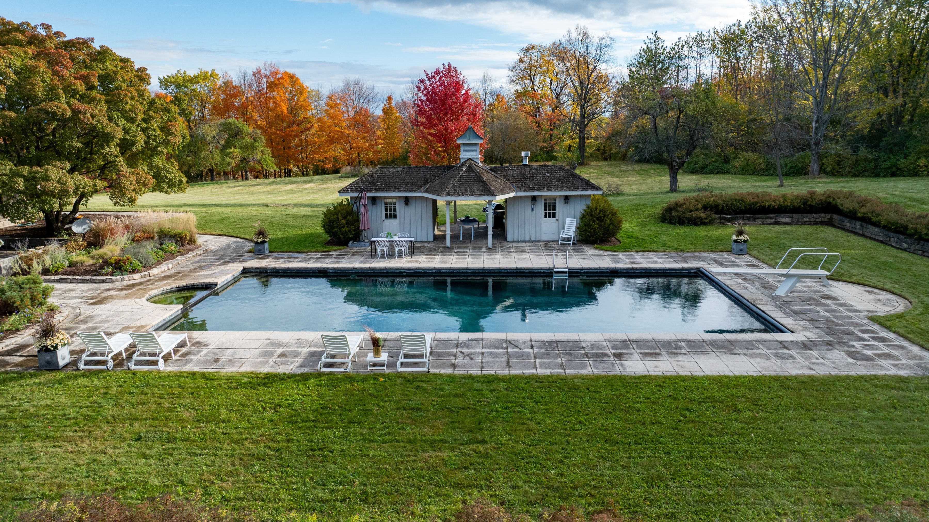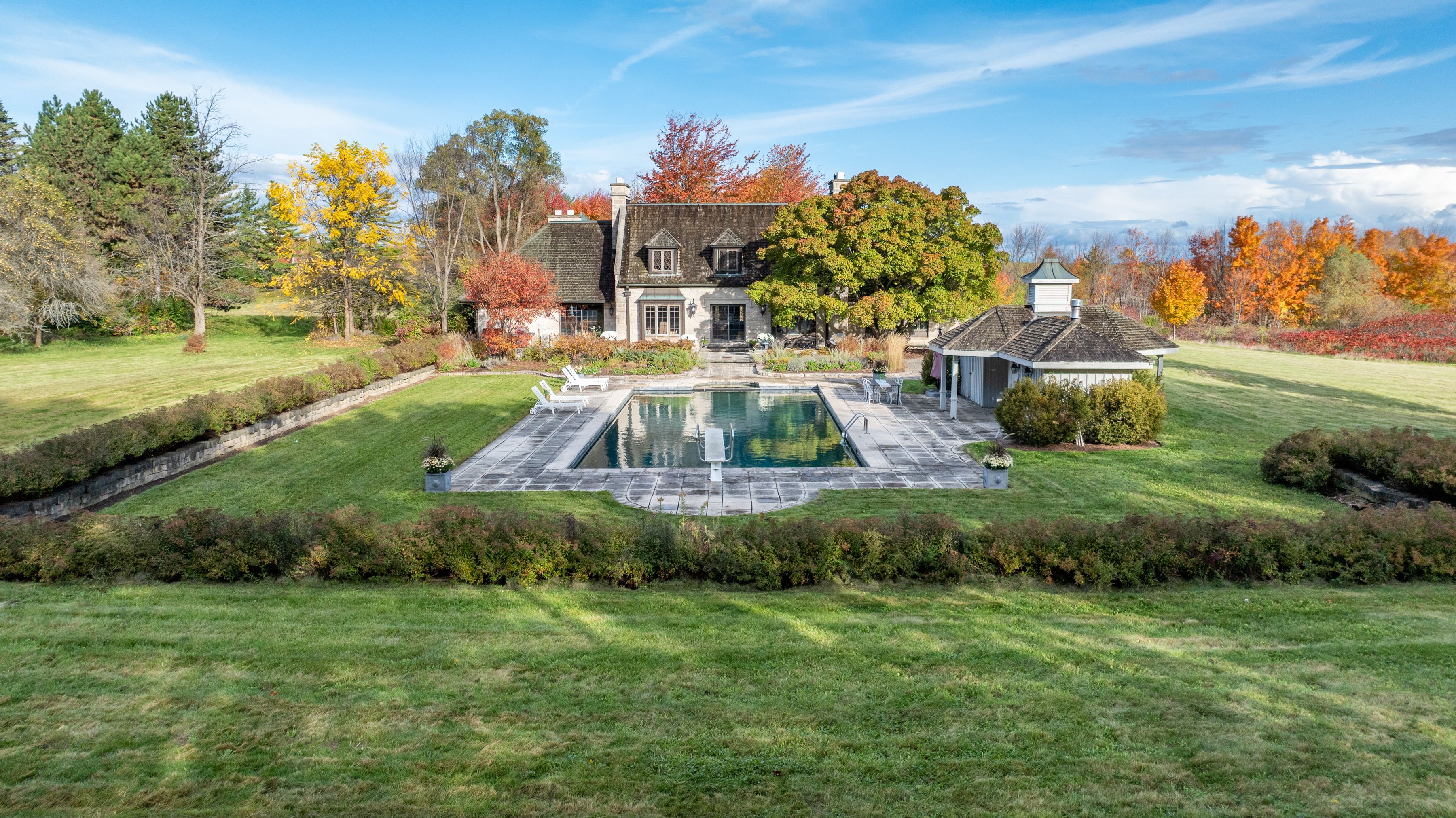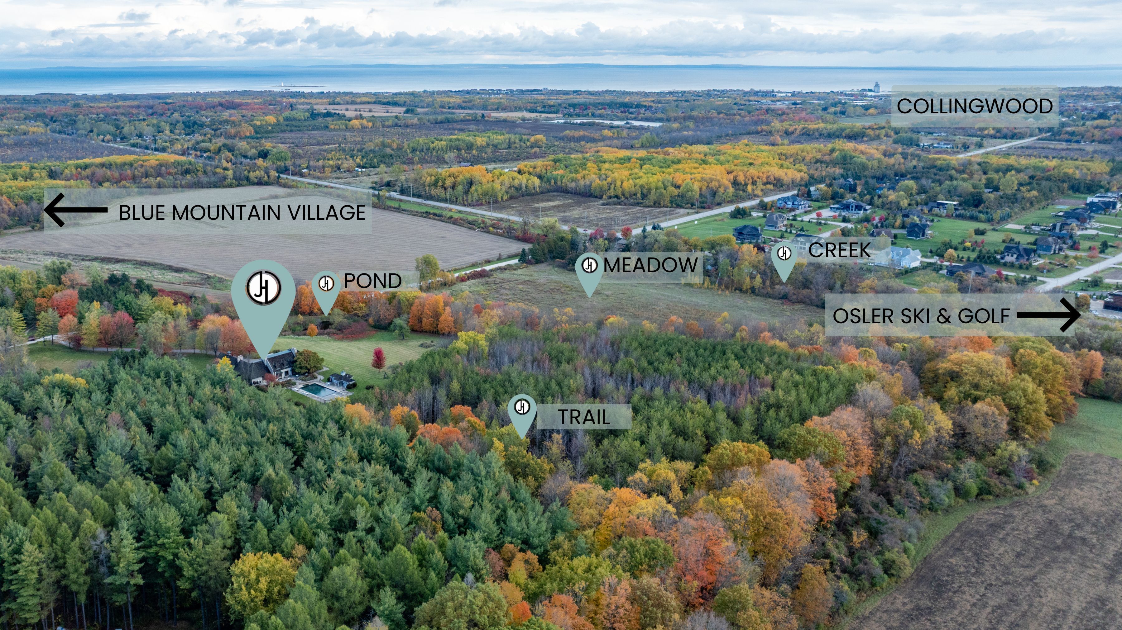Discover an extraordinary opportunity to own a rare 32. 14-acre luxury estate in the blue mountains, ideally positioned on the border of collingwood and just minutes from osler bluff ski club, oslerbrook golf & country club, blue mountain village, and downtown collingwood. Set well back from the road with a long, tree-lined driveway, this exceptional property offers remarkable privacy, natural beauty, and endless potential. Built in 1982, the stately stone residence presents an ideal canvas for those looking to create a custom dream estate with some views out to the bay in the winter. The grounds are truly spectacular. Highlights include a 56' x 25' pebbletec pool with seasonal hot tub, poolside gazebo, pond, meadow, creek, and a private trail system winding through a mature forest. Silver creek meanders through the east edge of the property, with seasonal salmon and trout runs adding to the unforgettable natural landscape. Whether you envision a serene country retreat or a reimagined modern luxury estate, this one-of-a-kind property delivers unmatched location, privacy and scale in one of southern georgian bay's most coveted recreational destinations. Your private retreat awaits. A must-see!