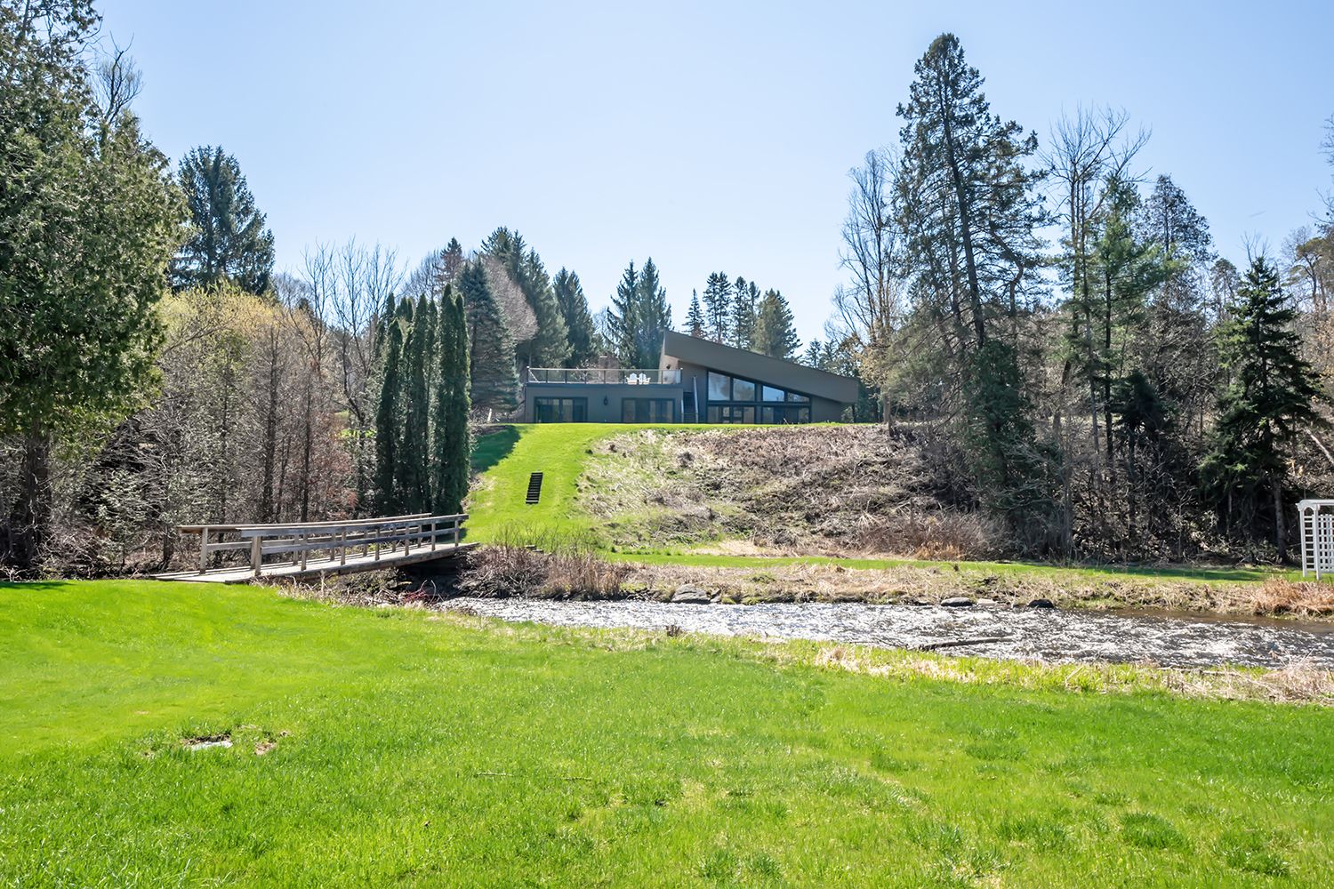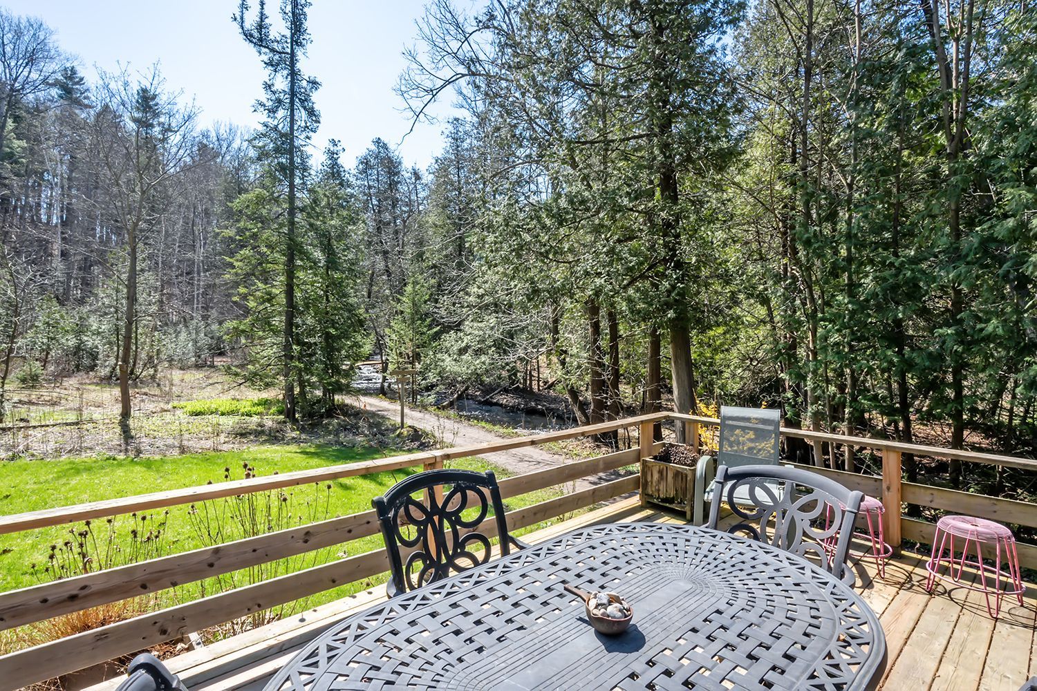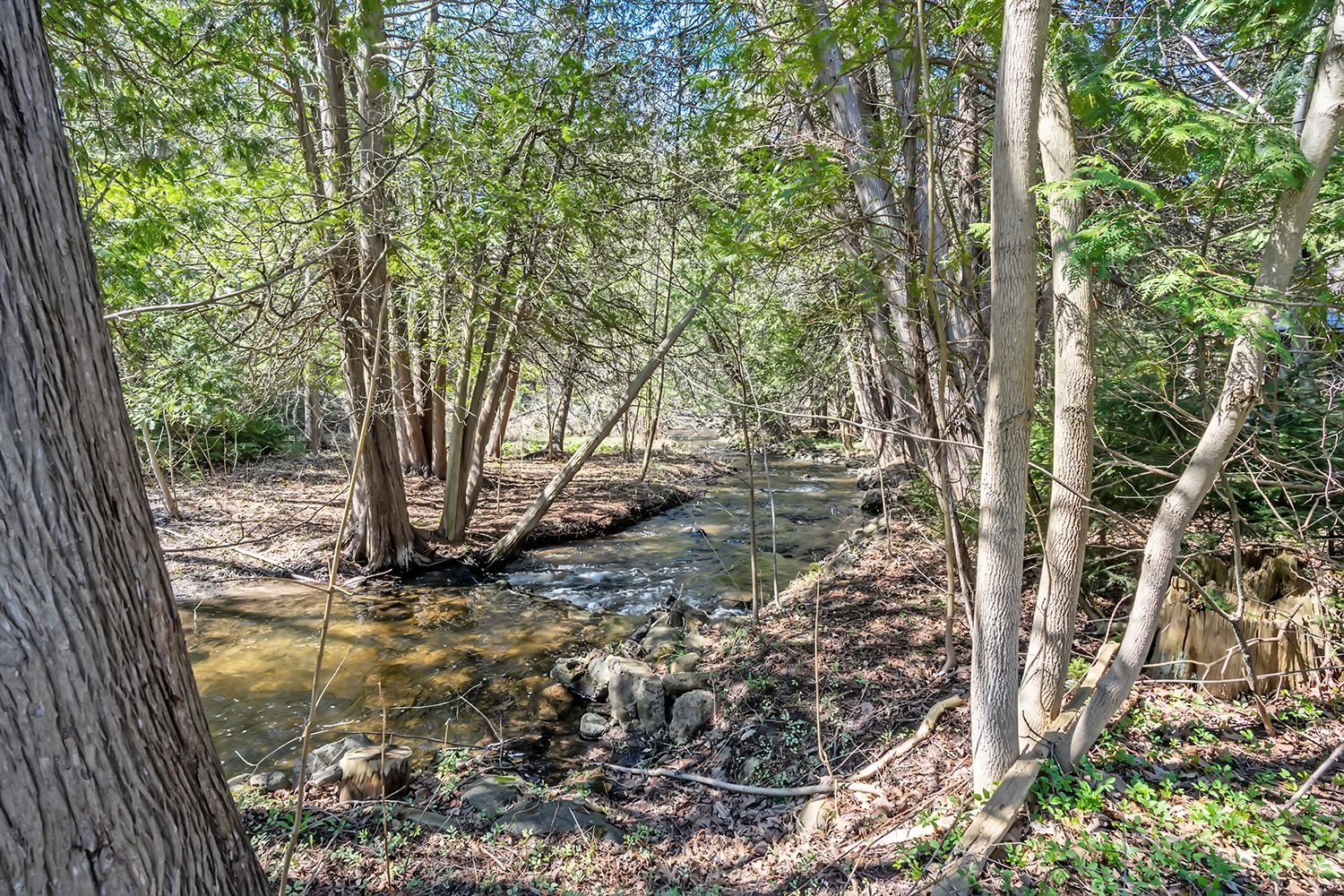 • Set on a peaceful treed lot with a soothing creek backdrop.