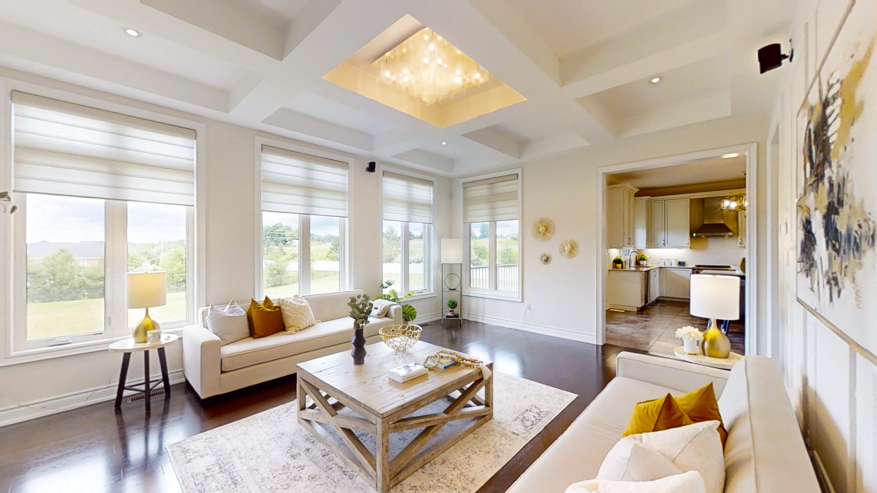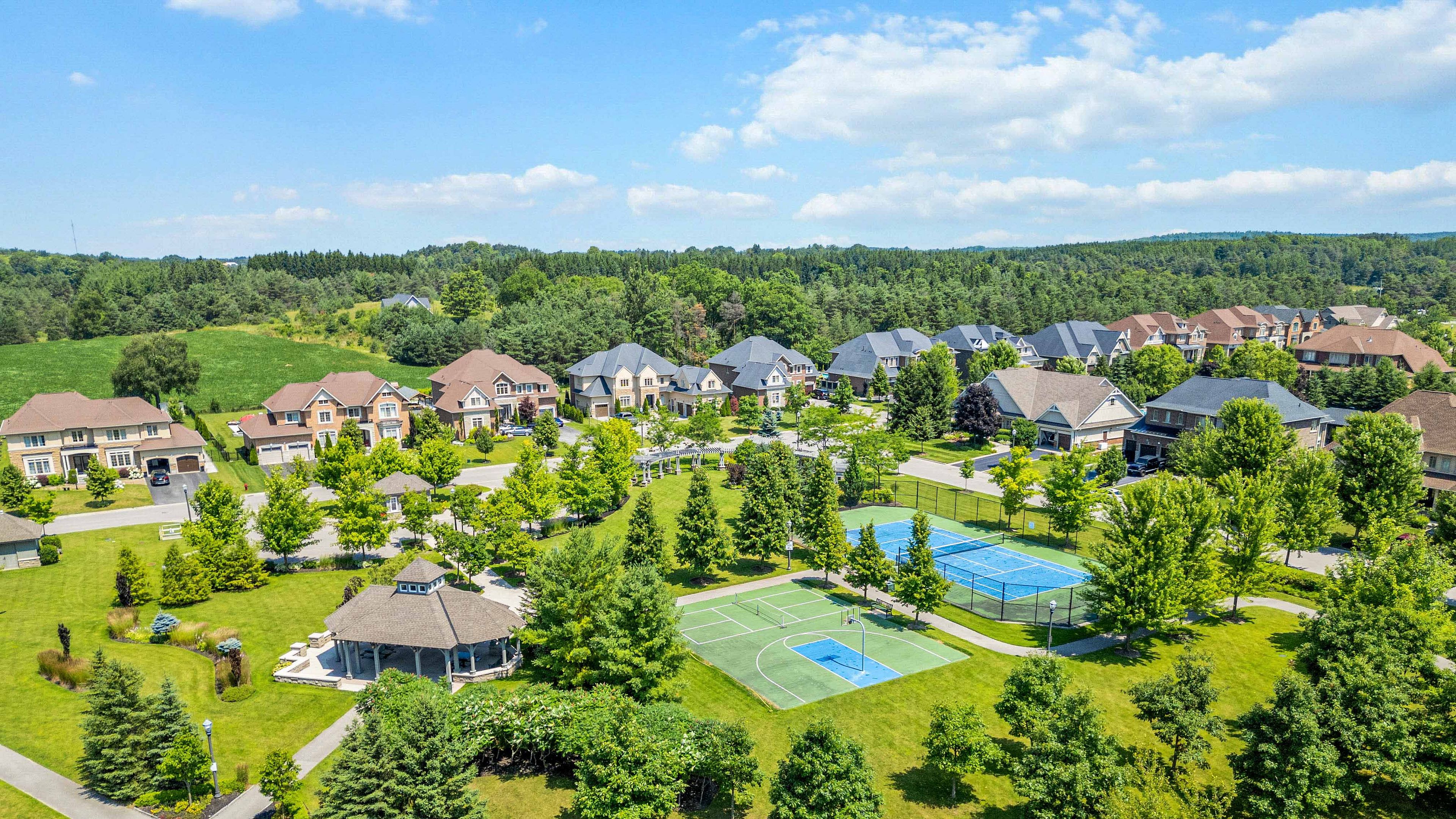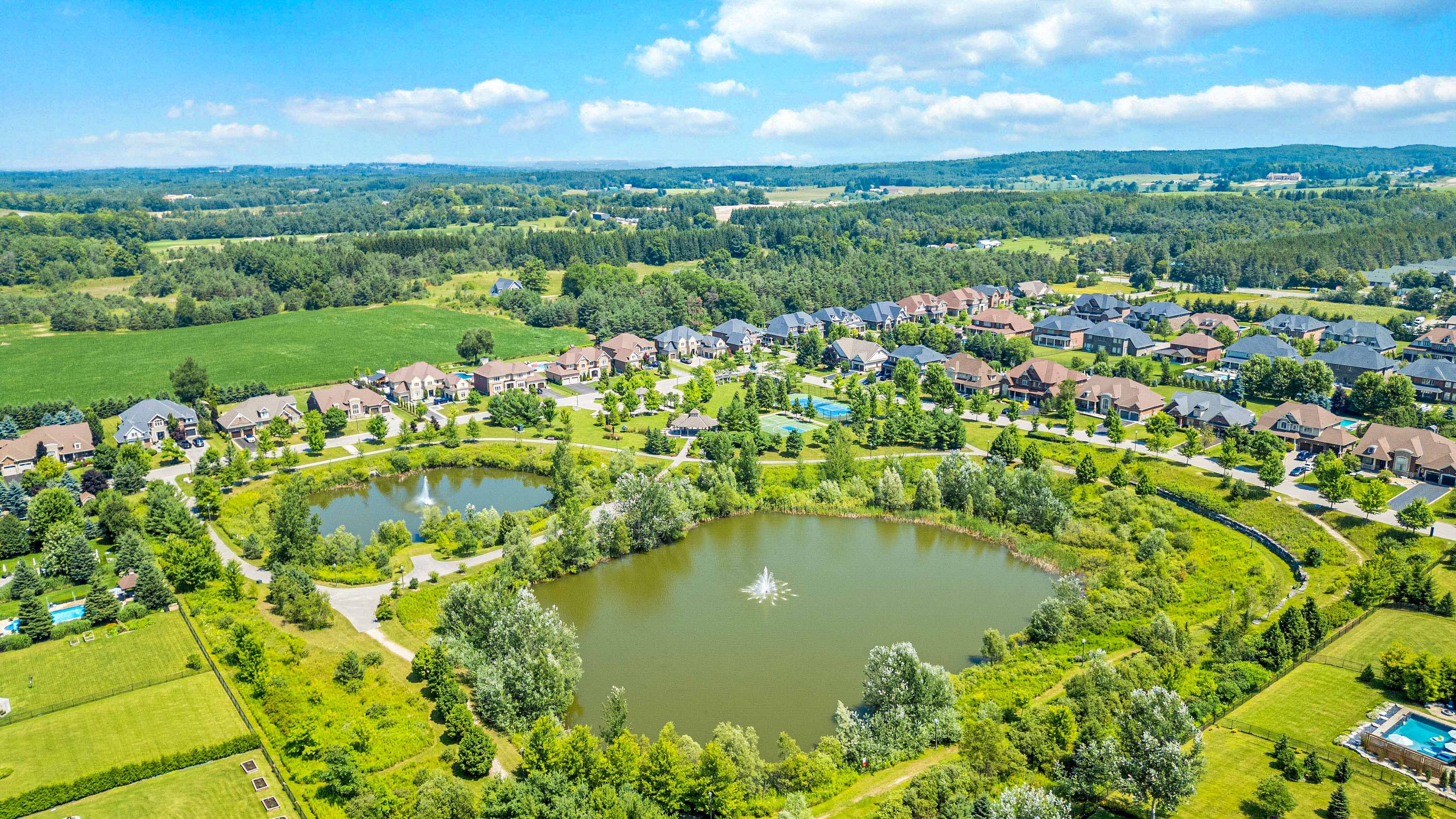 A stunning sheffield model home nestled within the prestigious estates of wyndance a gated community offering luxury, privacy, and an unmatched lifestyle. Situated on a 1. 17-acre corner lot, this 4-bedroom, 4-bathroom executive residence boasts breathtaking panoramic views & over 3,489 sq. Ft. Of above-grade living space, designed for both elegance & comfort. Step inside to find hardwood floors throughout, beautifully accented by wainscoting, tray ceilings & intricate moldings. The spacious family room features a double-sided gas fireplace, creating a cozy ambiance that extends into the formal living room. The gourmet chef's kitchen is a culinary dream, complete with granite countertops, a center island, and top-of-the-line stainless steel appliances, including a sub-zero fridge & wolf range. Adjacent to the kitchen, the breakfast area leads to an expansive covered deck, perfect for outdoor dining while soaking in the picturesque skyline views. The 2nd floor is equally impressive, featuring a luxurious primary suite with his-and-hers walk-in closets & 5-pc spa-like ensuite. 3 additional bedrooms, all with ensuite or semi-ensuite access, provide ample space for family & guests. The unfinished walk-out basement presents a world of possibilities! Whether you envision an in-law suite, a home gym, or a recreational haven, the space is already equipped with a separate entrance, large windows, a rough-in for a 4-piece bathroom, and plenty of room for customization. Car enthusiasts will love the three-car tandem garage, complemented by a spacious 8-car driveway, ensuring ample parking for family & guests. Exclusive amenities, includes 2 gated entrances, scenic walking trails & landscaped ponds, basketball & tennis courts, a charming community gazebo and a lifetime platinum-level golf membership to the renowned clublink golf course. This remarkable property is located just minutes from schools, parks, & shopping, while still offering the tranquility of country estate living