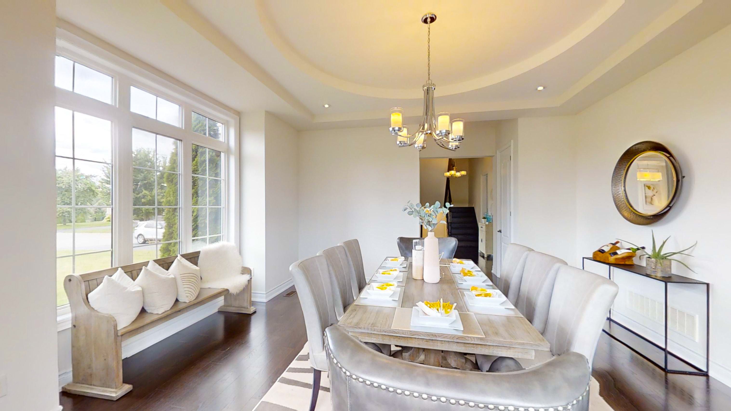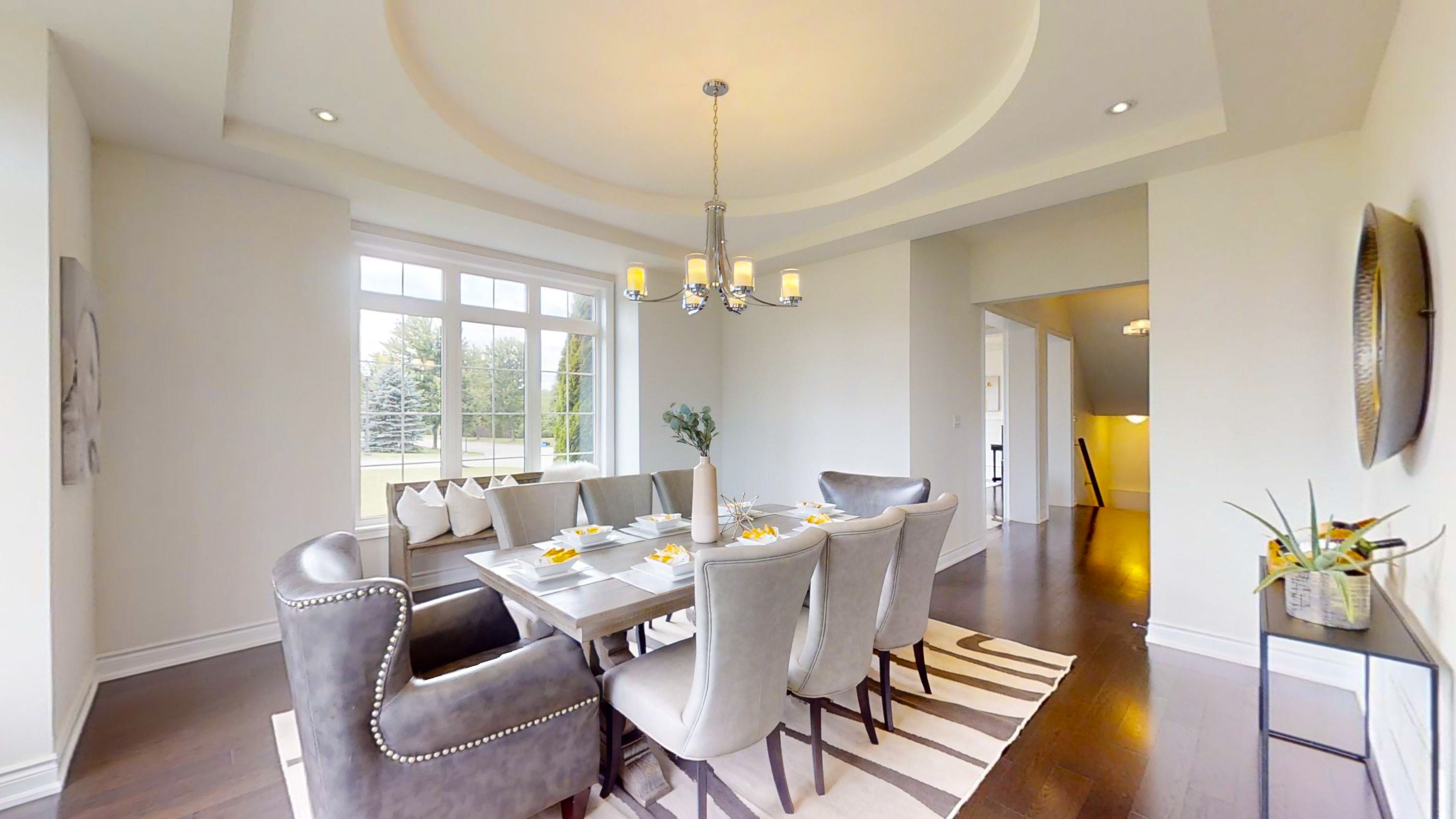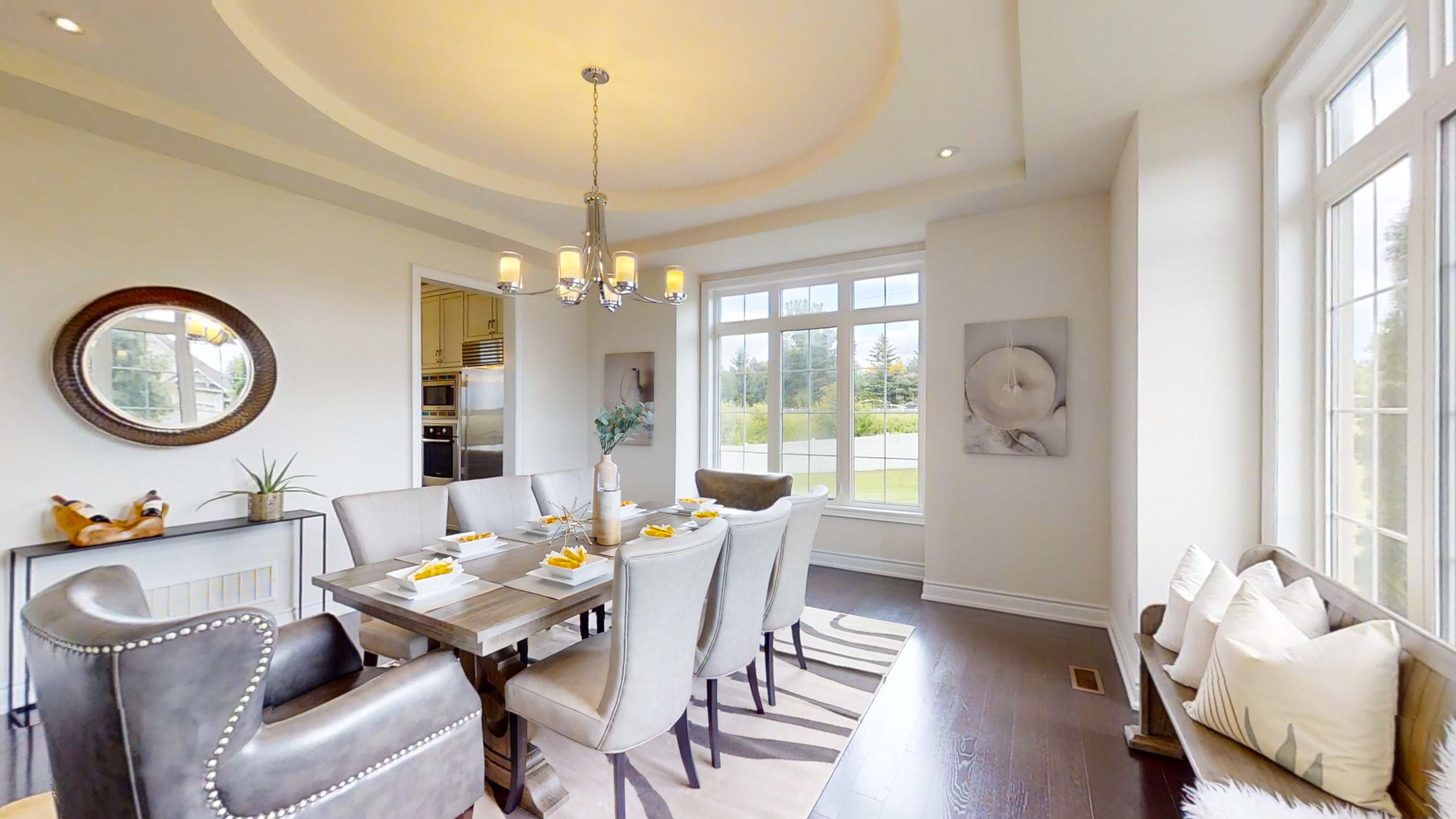 A stunning sheffield model home nestled within the prestigious estates of wyndance a gated community offering luxury, privacy, and an unmatched lifestyle. Situated on a 1. 17-acre corner lot, this 4-bedroom, 4-bathroom executive residence boasts breathtaking panoramic views & over 3,489 sq. Ft. Of above-grade living space, designed for both elegance & comfort. Step inside to find hardwood floors throughout, beautifully accented by wainscoting, tray ceilings & intricate moldings. The spacious family room features a double-sided gas fireplace, creating a cozy ambiance that extends into the formal living room. The gourmet chef's kitchen is a culinary dream, complete with granite countertops, a center island, and top-of-the-line stainless steel appliances, including a sub-zero fridge & wolf range. Adjacent to the kitchen, the breakfast area leads to an expansive covered deck, perfect for outdoor dining while soaking in the picturesque skyline views. The 2nd floor is equally impressive, featuring a luxurious primary suite with his-and-hers walk-in closets & 5-pc spa-like ensuite. 3 additional bedrooms, all with ensuite or semi-ensuite access, provide ample space for family & guests. The unfinished walk-out basement presents a world of possibilities! Whether you envision an in-law suite, a home gym, or a recreational haven, the space is already equipped with a separate entrance, large windows, a rough-in for a 4-piece bathroom, and plenty of room for customization. Car enthusiasts will love the three-car tandem garage, complemented by a spacious 8-car driveway, ensuring ample parking for family & guests. Exclusive amenities, includes 2 gated entrances, scenic walking trails & landscaped ponds, basketball & tennis courts, a charming community gazebo and a lifetime platinum-level golf membership to the renowned clublink golf course. This remarkable property is located just minutes from schools, parks, & shopping, while still offering the tranquility of country estate living