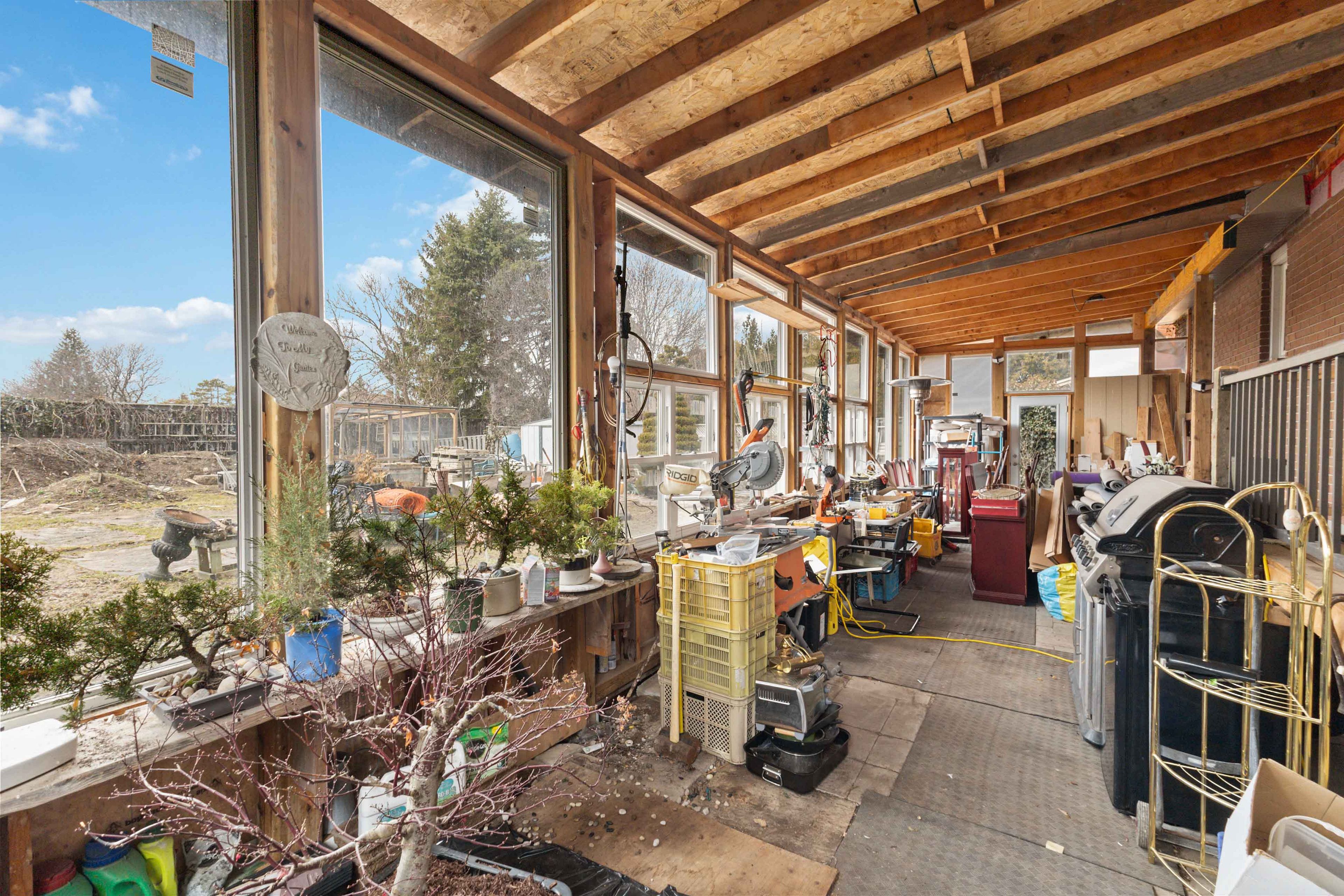 • Large backyard with raised garden beds and a sunroom for relaxing.
