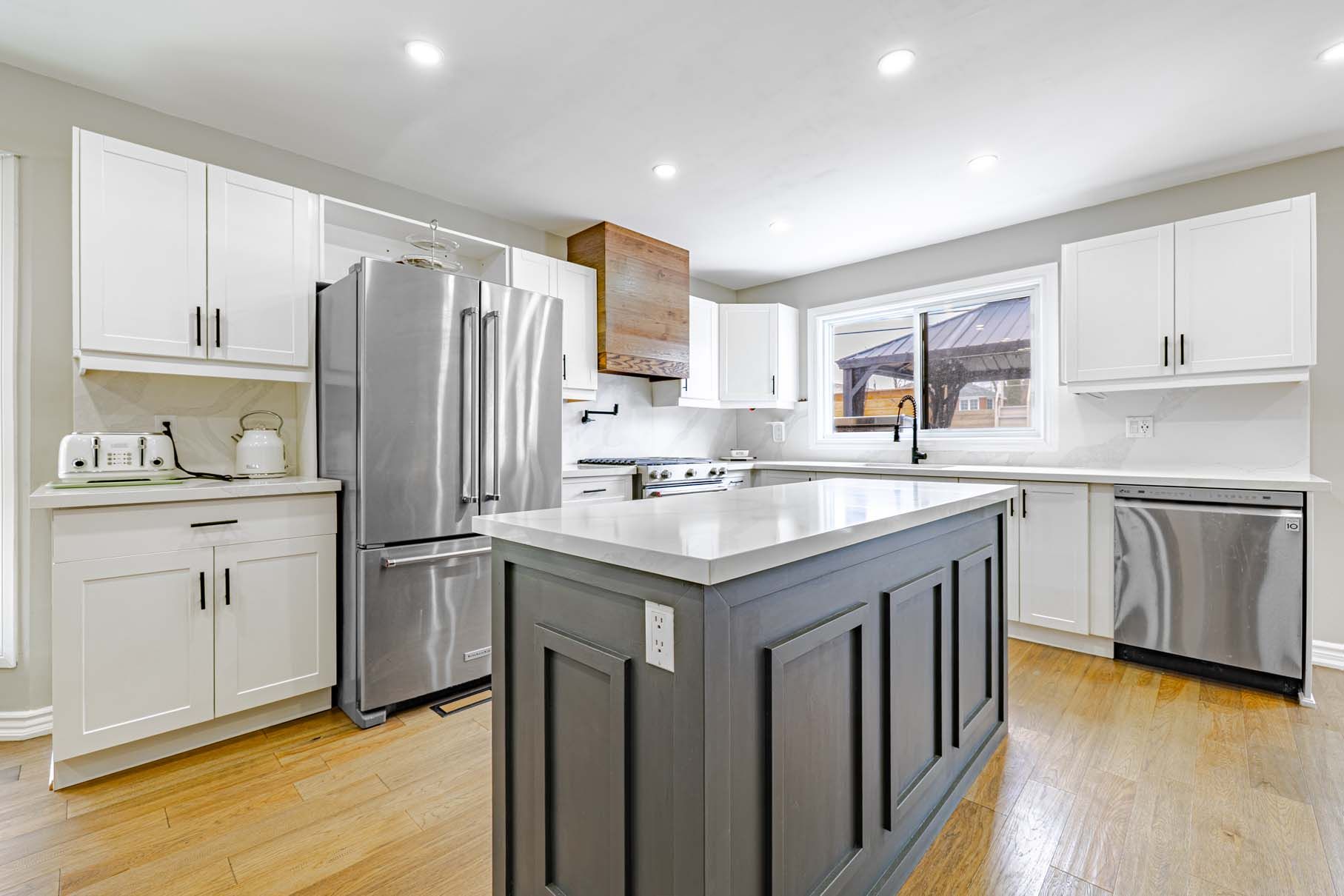 • Dream kitchen with quartz countertops, gas stove, and ample storage.