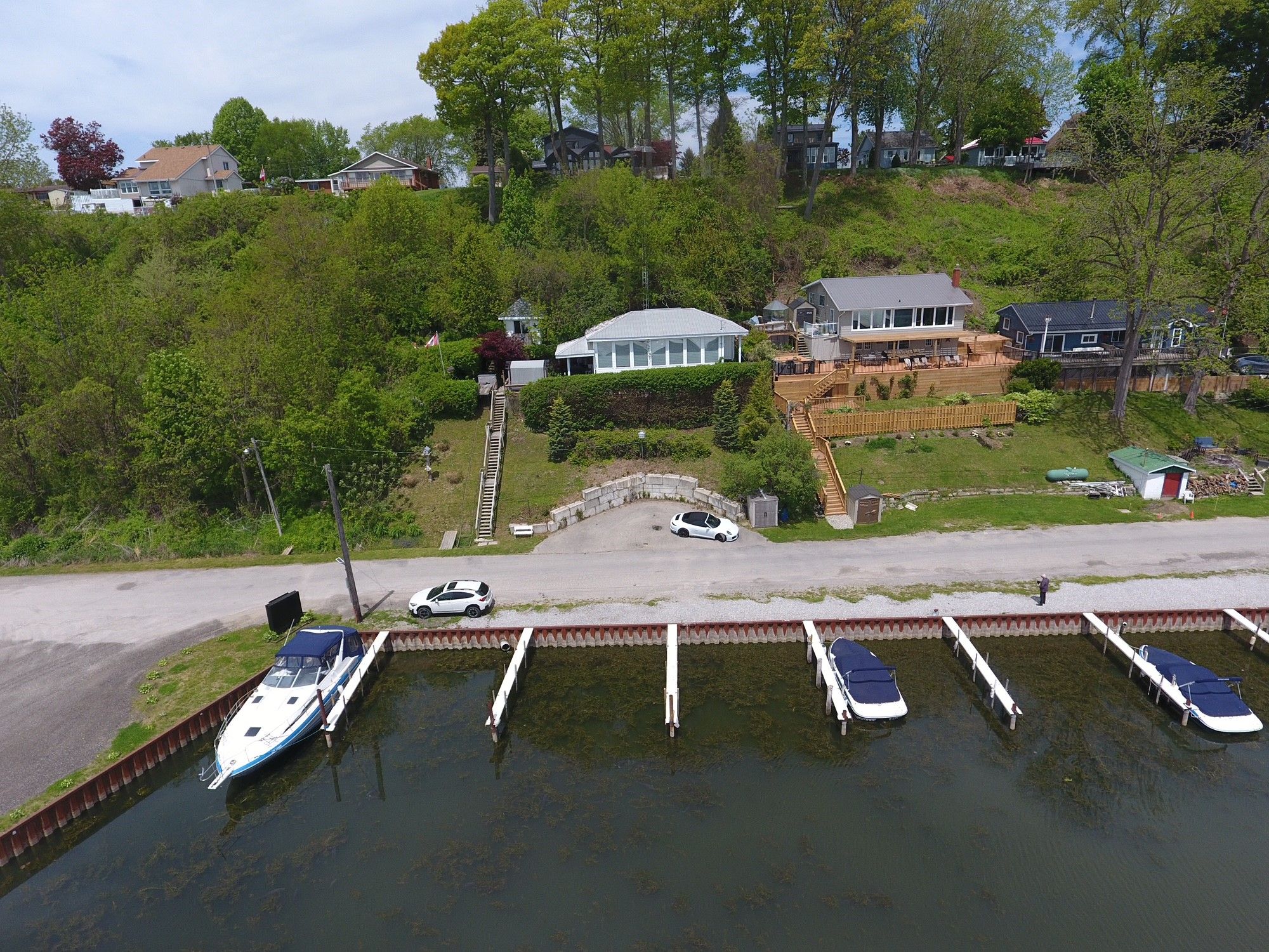 Nestled on a scenic hillside between long point and turkey point, this charming, fully furnished 4-season cottage offers breathtaking views of the tranquil bay. Located within walking distance to harmony resort's boat slips, it's a perfect retreat for boating and fishing enthusiasts. The well-maintained interior features an inviting open-concept layout, with expansive south-facing windows that flood the space with natural light and frame beautiful sunrise views over the water. The kitchen is equipped with granite countertops and a convenient bar top, seamlessly connecting to the dining and living areas ideal for entertaining. The primary bedroom includes built-in closets and easy access to a spacious 4-piece bathroom with a tub/shower combo. Step outside to enjoy the private deck perfect for relaxing or hosting guests alongside a cozy one-bedroom bunkie and a nearby fire pit area for evening gatherings. Outdoor lovers will appreciate the proximity to scenic trails for hiking and biking, renowned birdwatching spots, and multiple sandy beaches. Centrally located and close to everything this sought-after region has to offer. Bonus: all appliances and furniture are included making this an excellent opportunity for a turn-key personal getaway or an income-generating rental property. Don't miss out on this incredible lakeside retreat! (average rental of $275-$300 per night.)