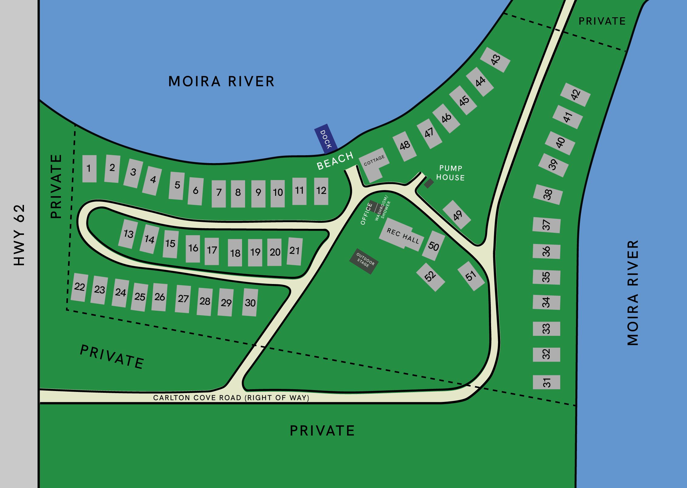 • 52 well-appointed RV sites, including 30 premium waterfront options.