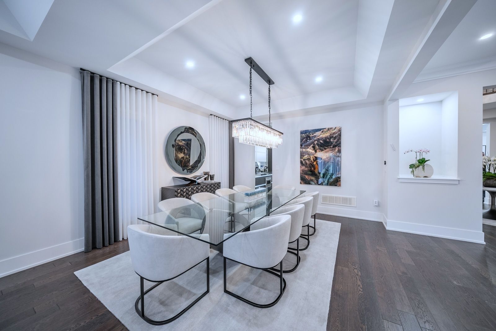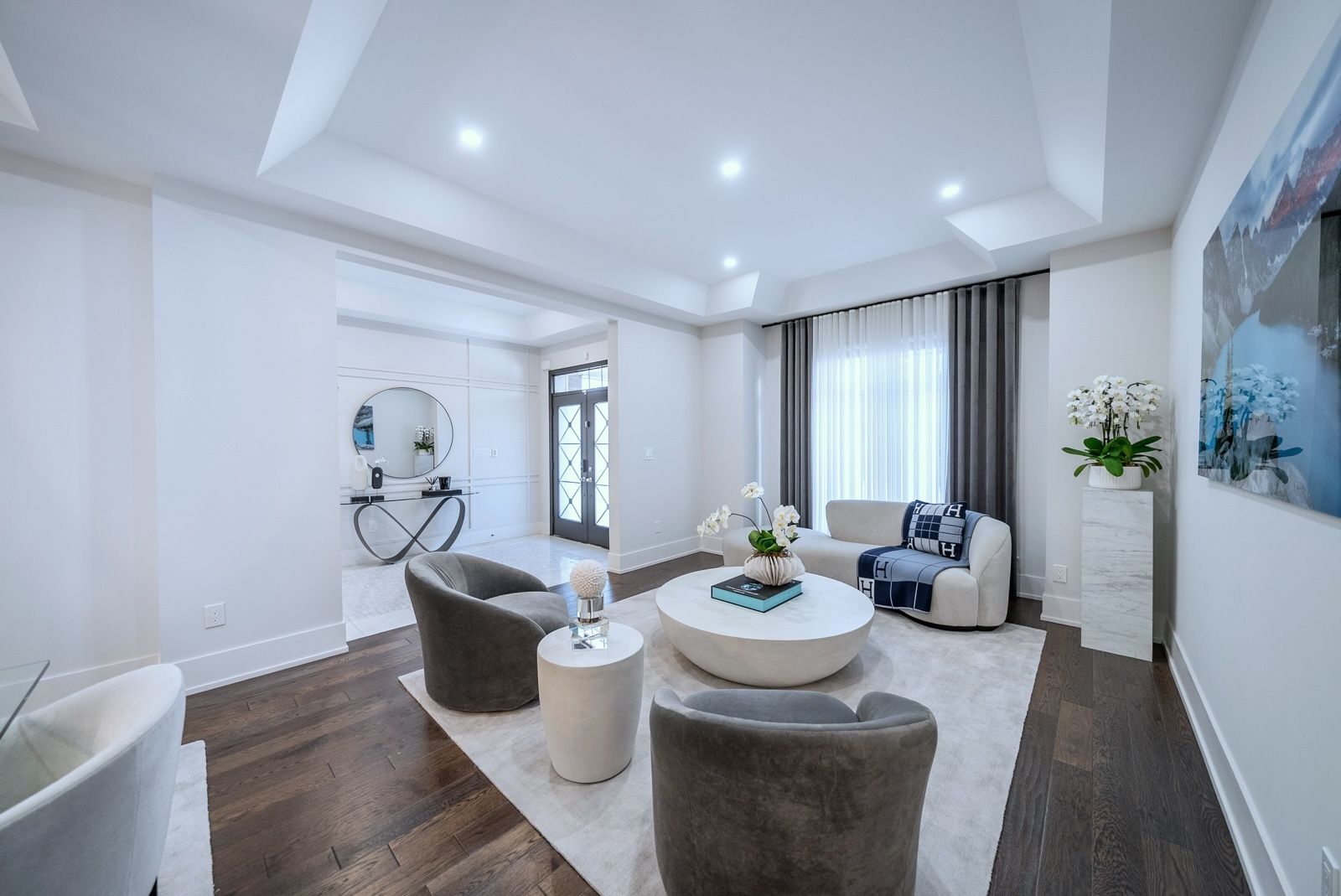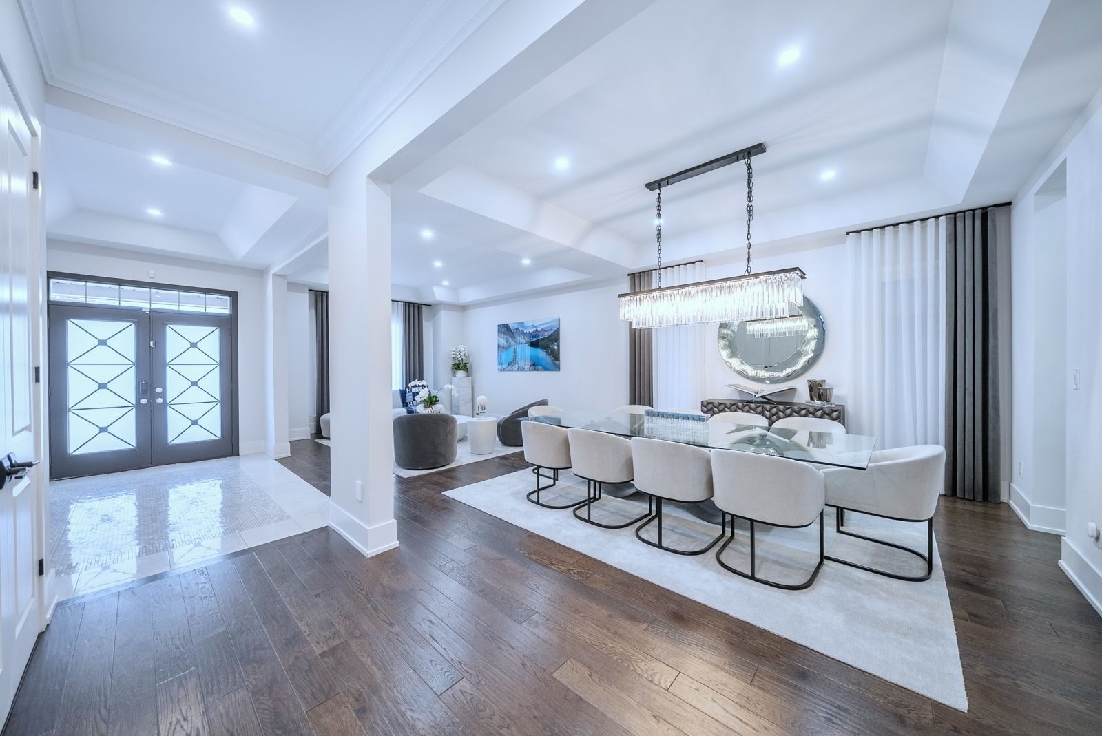 R-e-s-o-r-t-l-i-v-i-n-g-o-n-a-p-r-i-v-a-t-e-c-o-u-r-t-i-n-l-e-b-o-v-i-c-c-a-m-p-u-s! Situated on a quiet & exclusive court with a mature ravine-lined backdrop, this extraordinary residence offers refined luxury living complete with a saltwater pool, award-winning landscaping & a true 3-car garage. Featuring 4+3 bedrooms and 6 bathrooms, the home showcases impeccable craftsmanship throughout, including a custom german-made bau format kitchen with leathered stoned waterfall island, backlit stone backsplash, soaring 10-foot ceilings on the main floor & a dramatic open-to-above rotunda, dripping with natural light. Thoughtfully curated designer finishes, bespoke drapery & a main-floor office enhance both elegance & functionality. The primary retreat offers a spa-inspired ensuite, while a versatile library area provides the option to convert into a fifth bedroom. The fully finished lower level is designed for lifestyle and comfort, featuring a gym, kitchen, nanny quarters & a dedicated hockey room. A rare opportunity to own a statement home in one of vaughan's most prestigious and sought-after communities. **over $500k in upgrades**