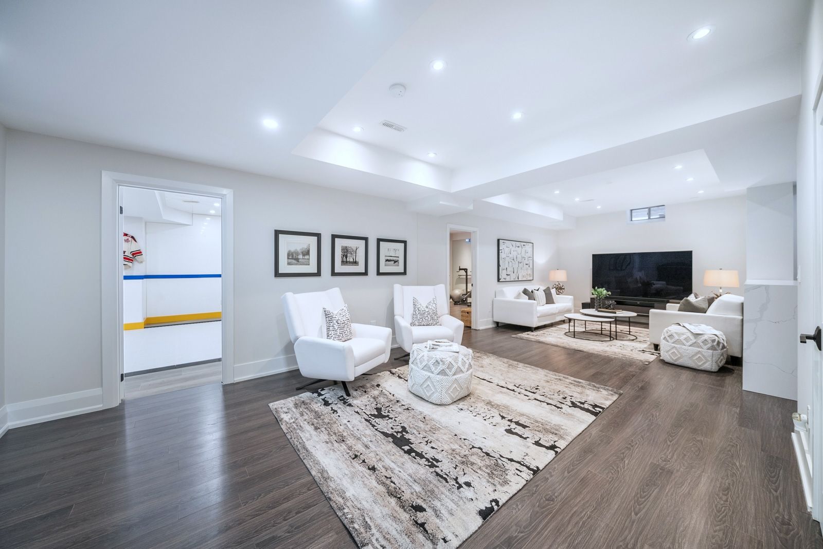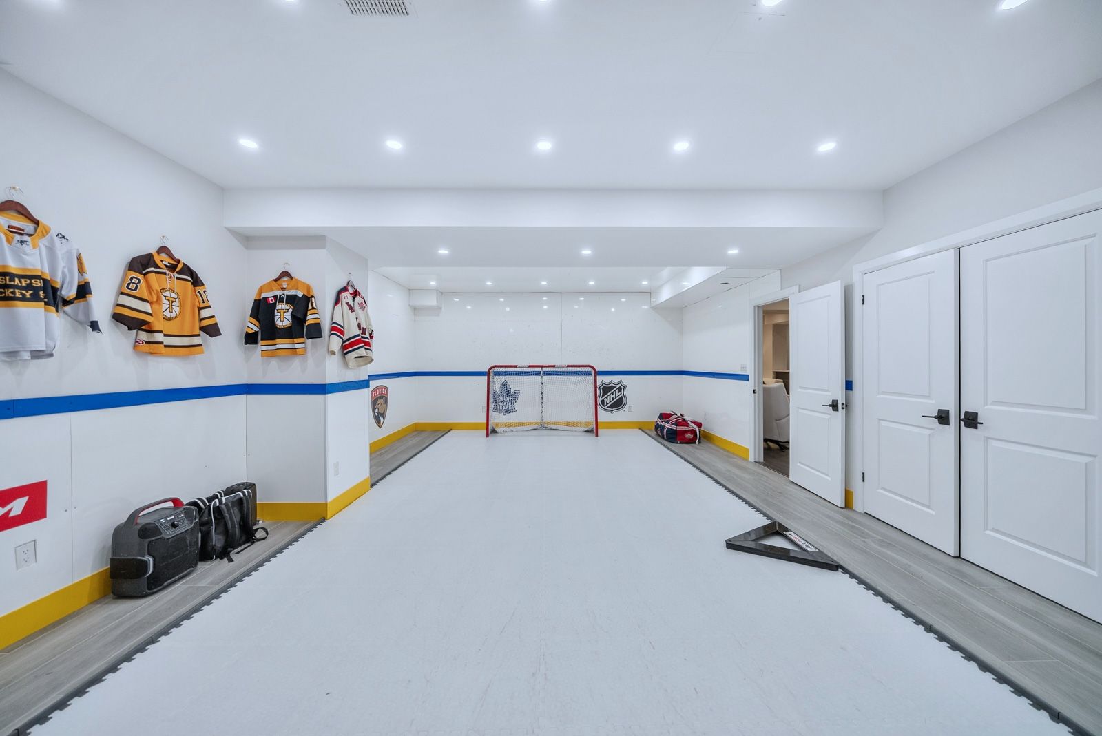 • Fully finished lower level with gym, nanny quarters, and hockey room.