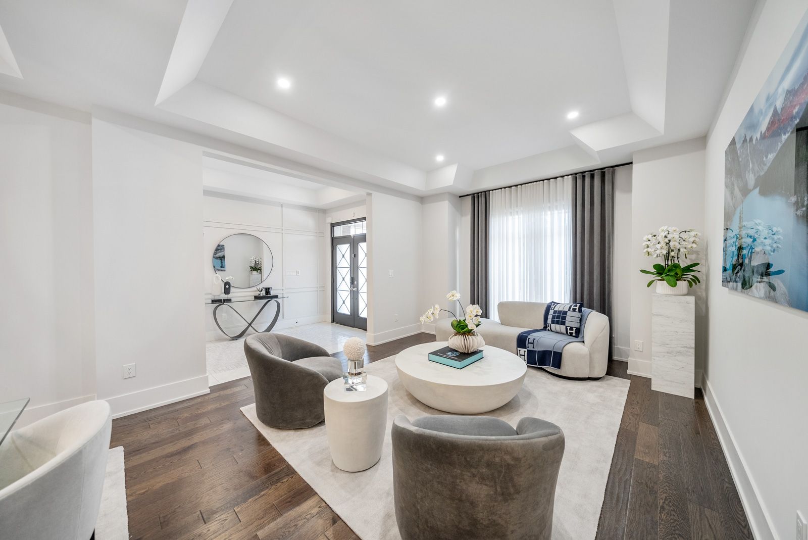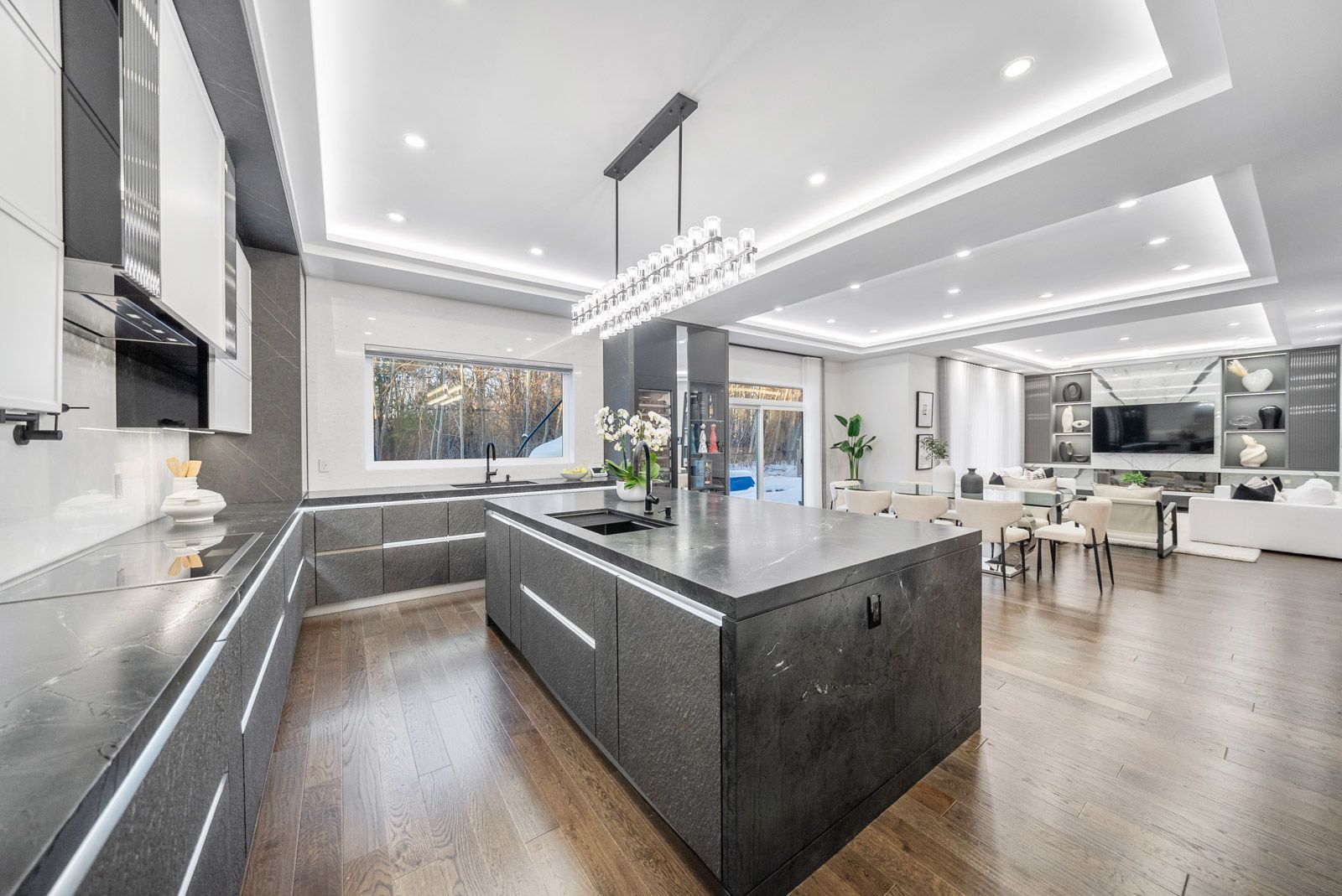 L-u-x-u-r-y--l-i-v-i-n-g. Situated on a quiet & exclusive court with a mature ravine-lined backdrop, this extraordinary residence offers refined luxury living complete with a saltwater pool, award-winning landscaping & a true 3-car garage. Featuring 4+3 bedrooms and 6 bathrooms, the home showcases impeccable craftsmanship throughout, including a custom german-made bau format kitchen with leathered stoned waterfall island, backlit stone backsplash, soaring 10-foot ceilings on the main floor & a dramatic open-to-above rotunda, dripping with natural light. Thoughtfully curated designer finishes, bespoke drapery & a main-floor office enhance both elegance & functionality. The primary retreat offers a spa-inspired ensuite, while a versatile library area provides the option to convert into a fifth bedroom. The fully finished lower level is designed for lifestyle and comfort, featuring a gym, kitchen, nanny quarters & a dedicated hockey room. A rare opportunity to own a statement home in one of vaughan's most prestigious and sought-after communities. **over $500k in upgrades**