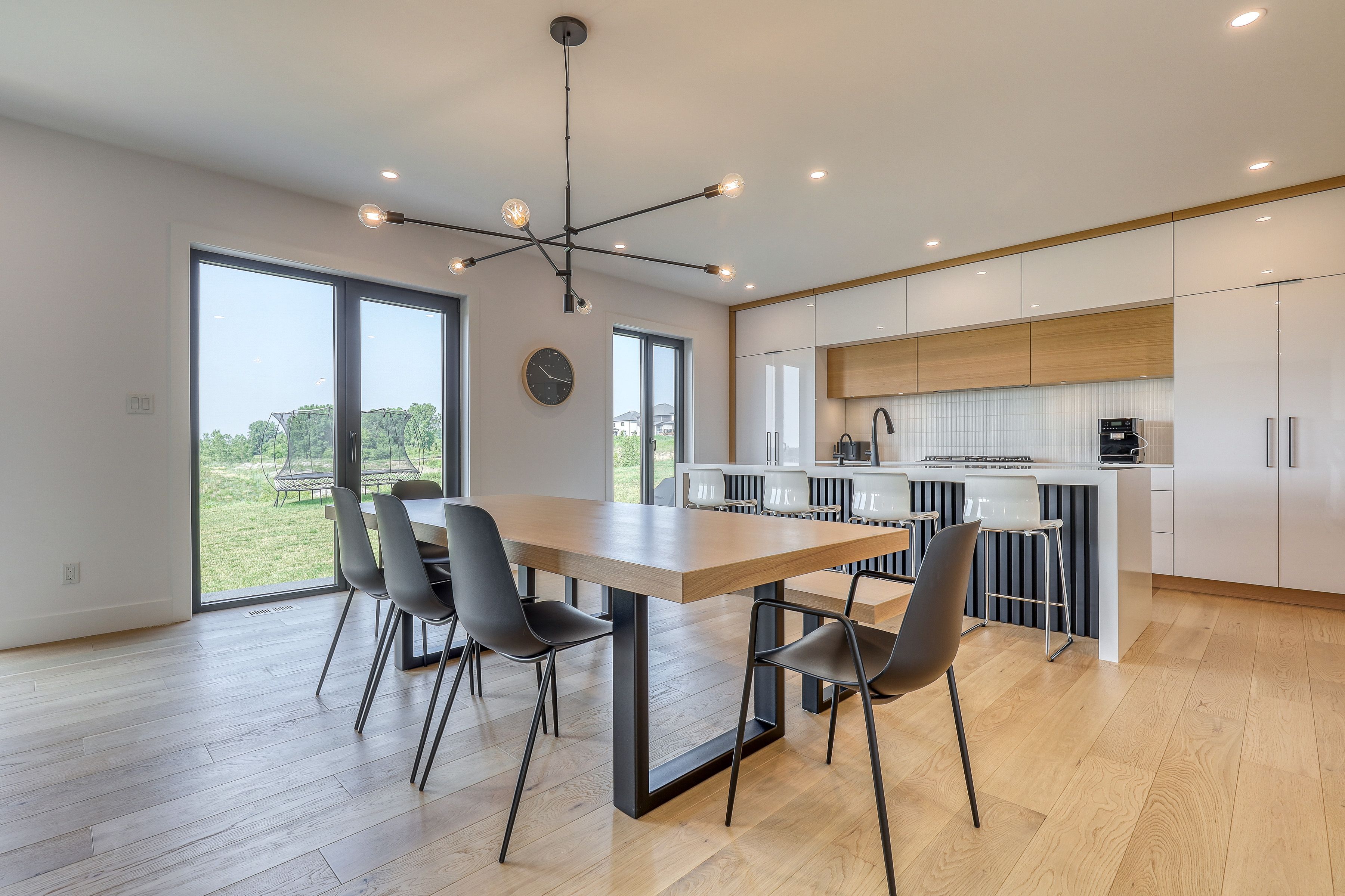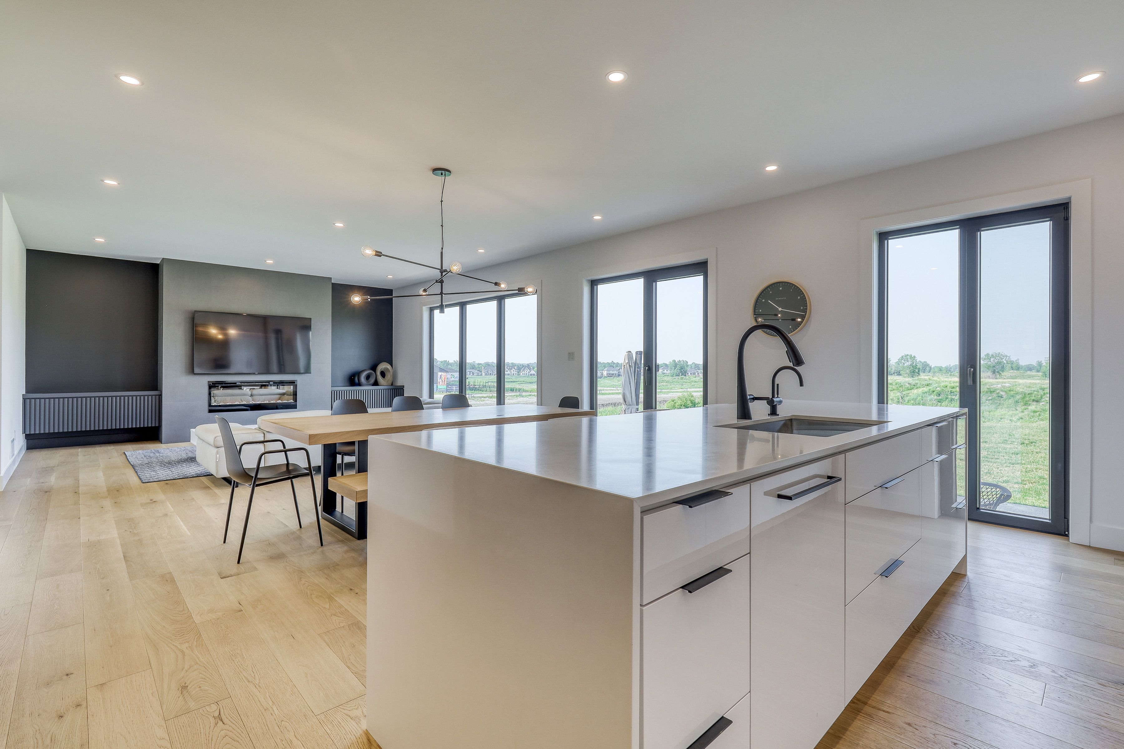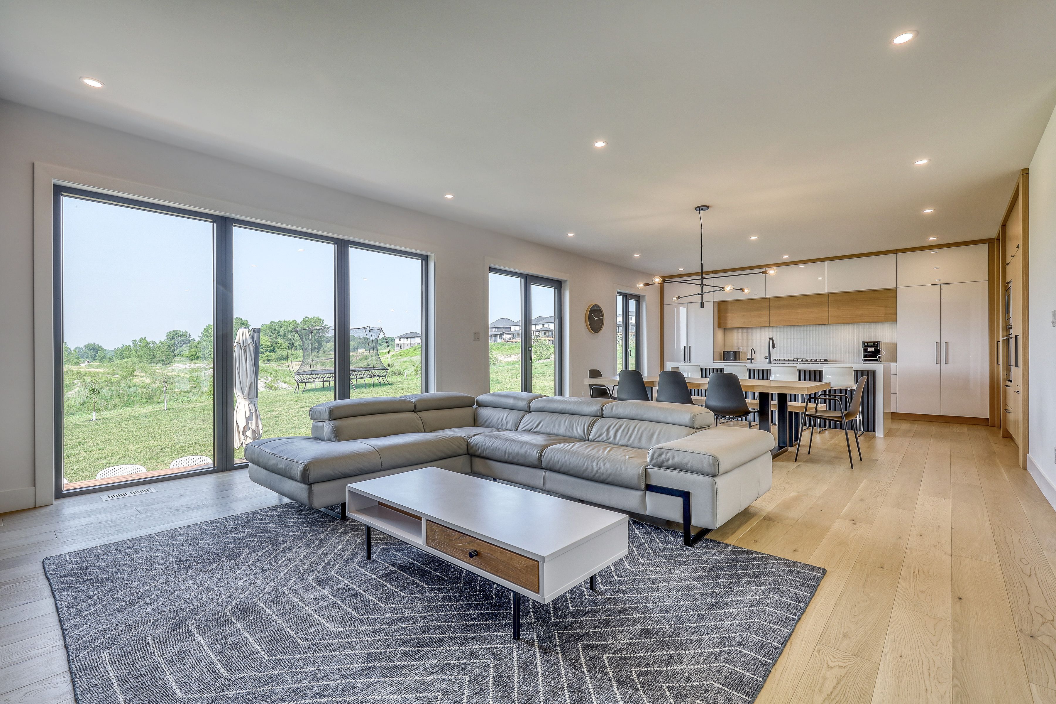Located in the pointe neighbourhood of edgewater estates. This modern 4-bedroom home is close to walking trails, parks, plenty of amenities just a few minutes from london. The main living space provides oversized european windows looking out at nature. The kitchen has plenty of storage with floor to ceiling custom cabinetry, built-in fisher paykel & miele appliances, a large island with waterfall quartz countertops. A hidden cabinet door leads to a well-planned mudroom with ample cabinets for well planned organization. The open concept living room has a contemporary fireplace wall with built-in media cabinets and plenty of room to entertain. The main floor also offers a office or flex space at the front of the house. Upstairs has 4 large bedrooms, a laundry room, and 7" engineered hardwood floors throughout. The primary suite includes a 12x8ft walk-in closet with built-in pullout drawers & a barn door. The spacious ensuite features a huge glass shower, a double floating vanity and freestanding soaker tub. This beautiful home is only 2 years old and has many upgrades and flawless workmanship.