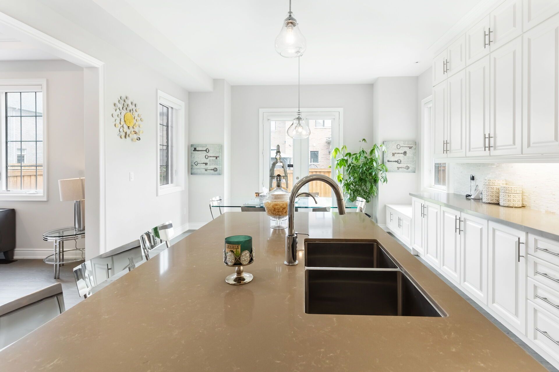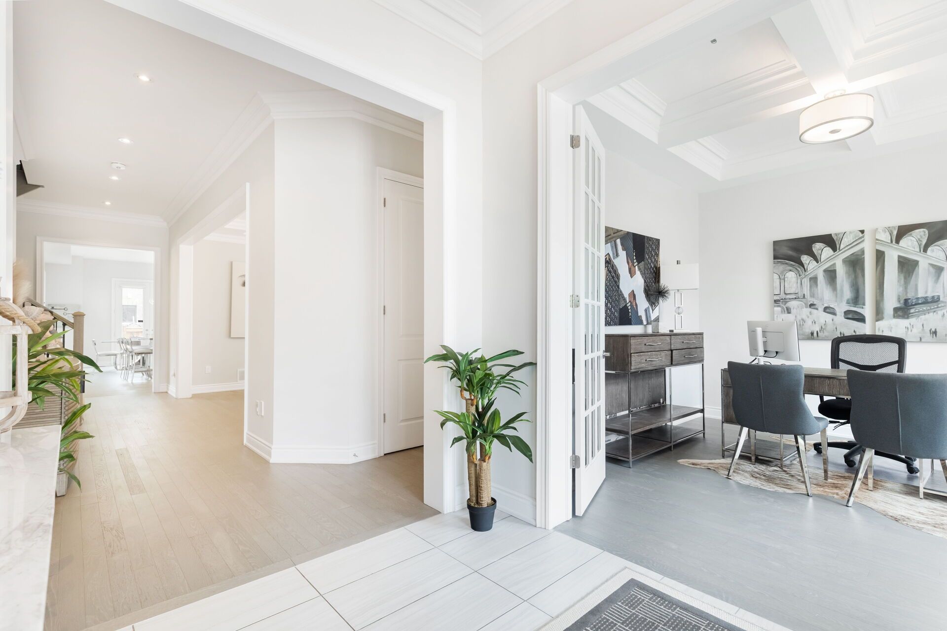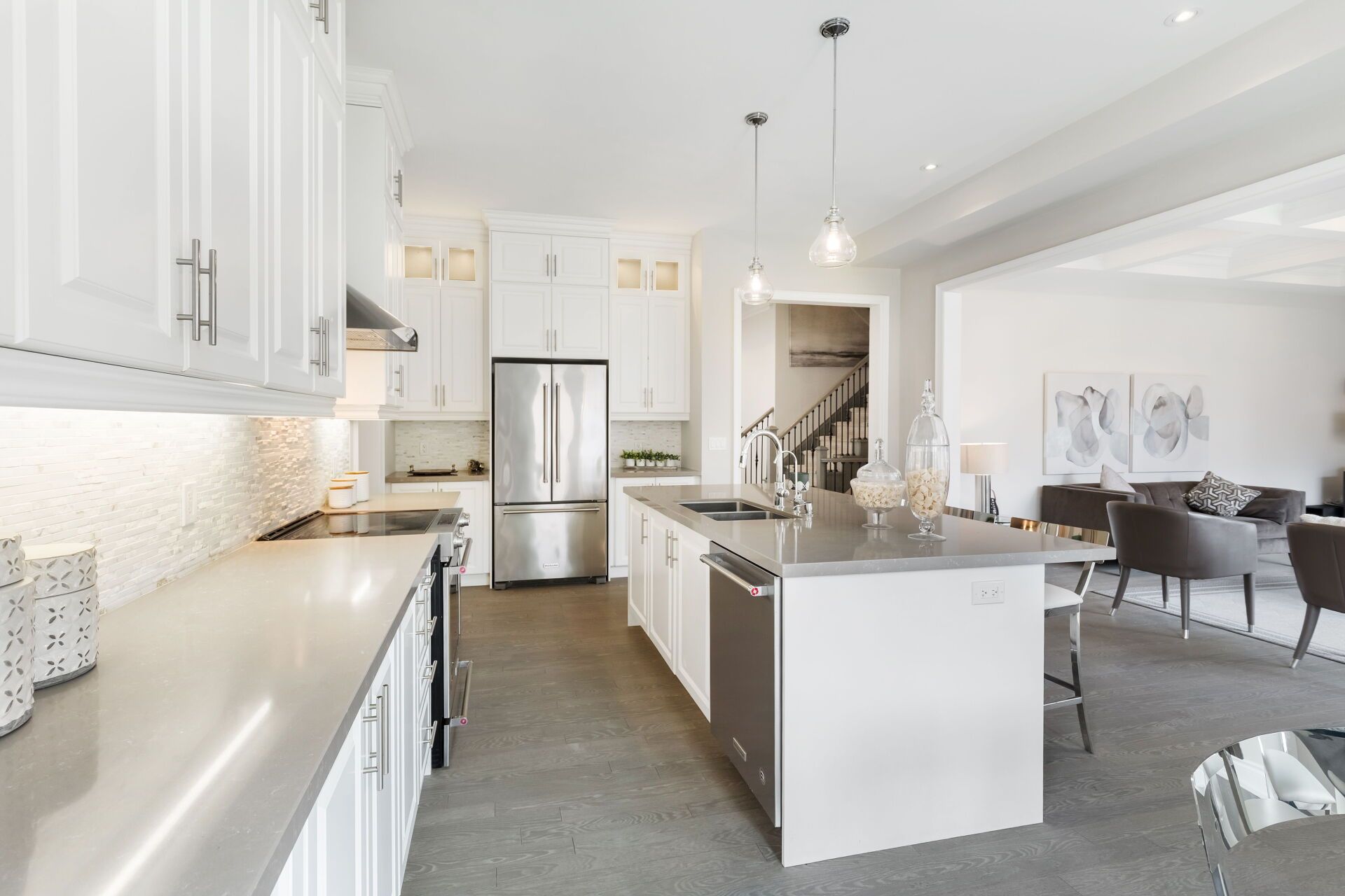 • High-end upgrades include hardwood floors and quartz countertops.