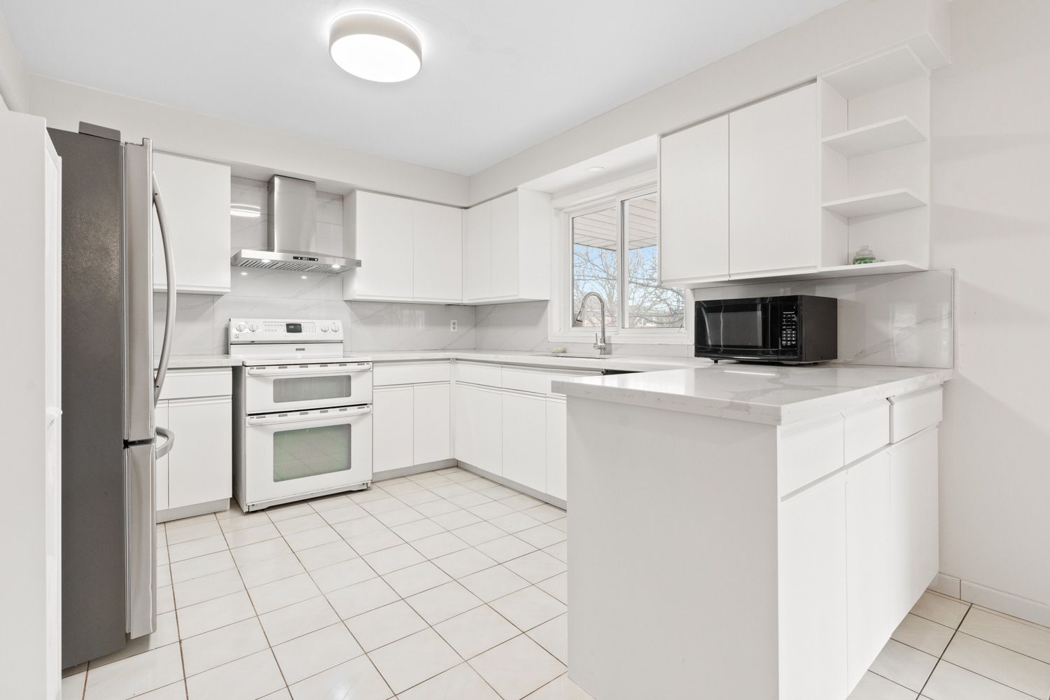 • Large eat-in kitchen with walk-out to deck and private backyard.
