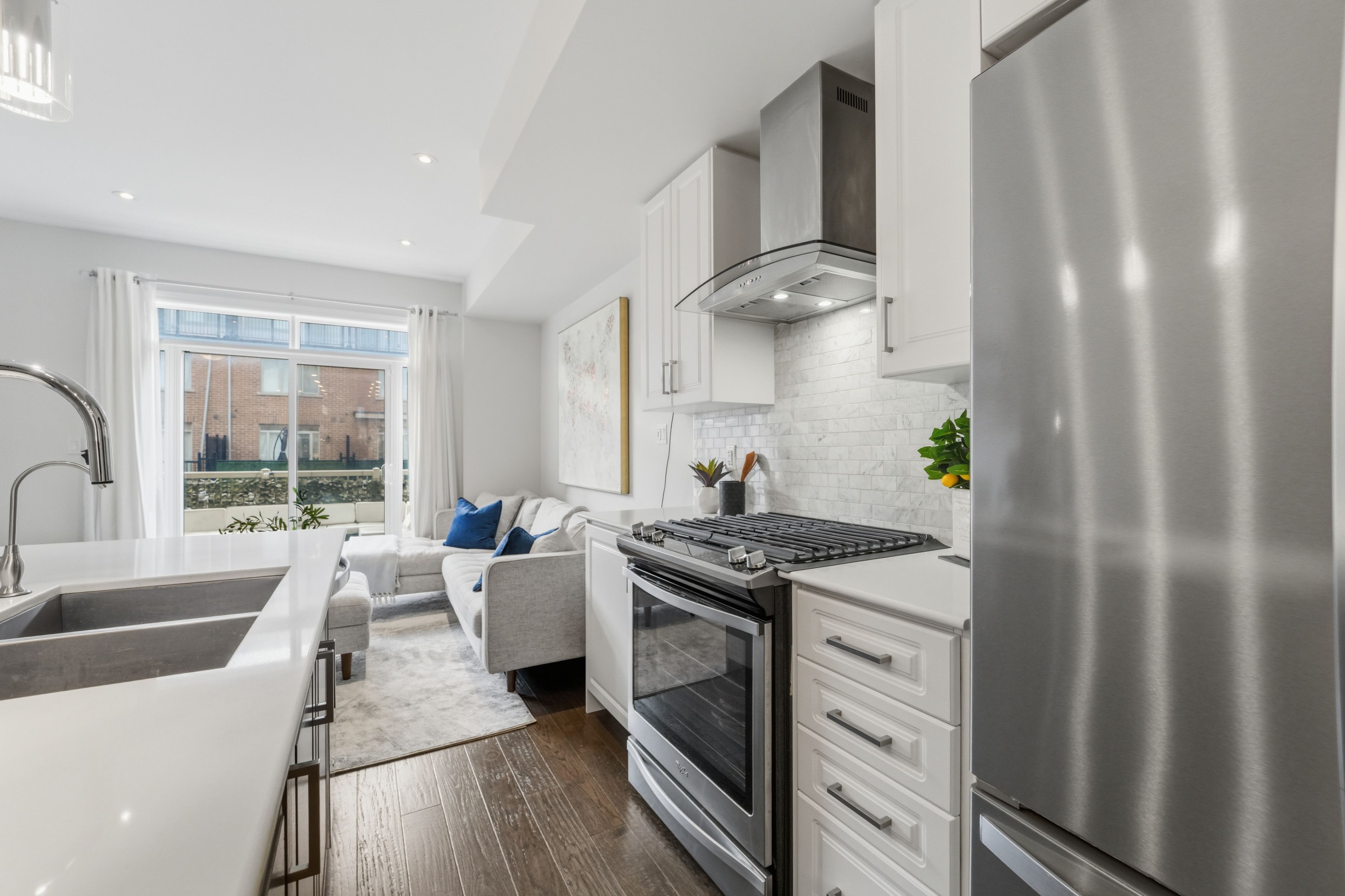 Welcome to 61 edward horton cres - an absolute show stopper in the heart of etobicoke that redefines modern townhouse living. This is not just your next home, it's your next statement. From the moment you step inside, a breathtaking open-concept design paired with soaring ceilings ranging between 12 and 15 feet captivates you, elevating every inch of the space. The sense of space, light, and luxury here is simply unmatched. The main living area is intended to impress with a sleek electric fireplace that creates the perfect calming atmosphere and a seamless walkout to your oversized patio deck - ideal for entertaining loved ones or unwinding in style. At the heart of this home is your very own chef's kitchen, complete with a centre island, stone countertops, and elegant finishes that effortlessly blend style and function. A charming juliette balcony off the living/dining area adds to the allure, letting in more natural light. Ascend to the second level where you'll find 2 charming bedrooms, each with unique design details and a conveniently located laundry room. The third level is entirely dedicated to the owners' suite. This private sanctuary features dramatic 15 foot ceilings, a 5-piece spa-like ensuite with a soaker tub, a walk-in closet for all of your prized possessions, and your very own private balcony - delivering a true boutique hotel experience right at home. Finally, the basement offers versatile additional living space great as a home office, kids' playroom, or a small gym. You also have direct access to your 1-car garage from this level and a 3-piece bath. Situated in the highly desirable islington-city centre west neighbourhood, you're surrounded by top-rated schools, including etobicoke school of the arts, parks, sherway gardens mall and surrounding shops, great dining options, public transit, and quick access to major highways - offering the perfect blend of urban convenience and community charm.