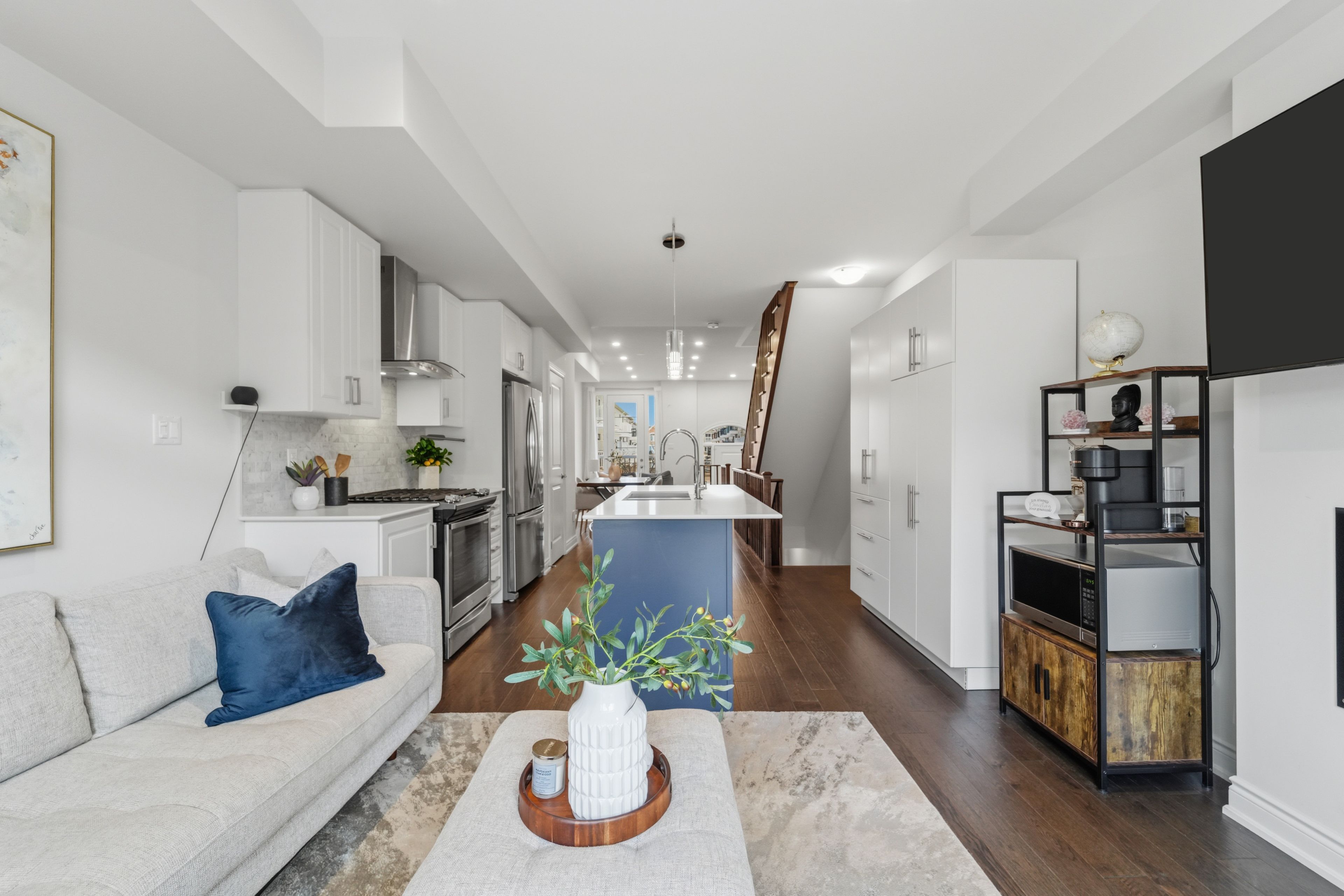 • Stunning open-concept design with high ceilings creating an airy feel.