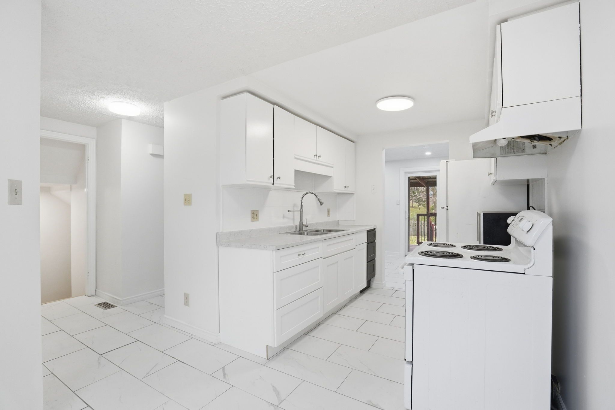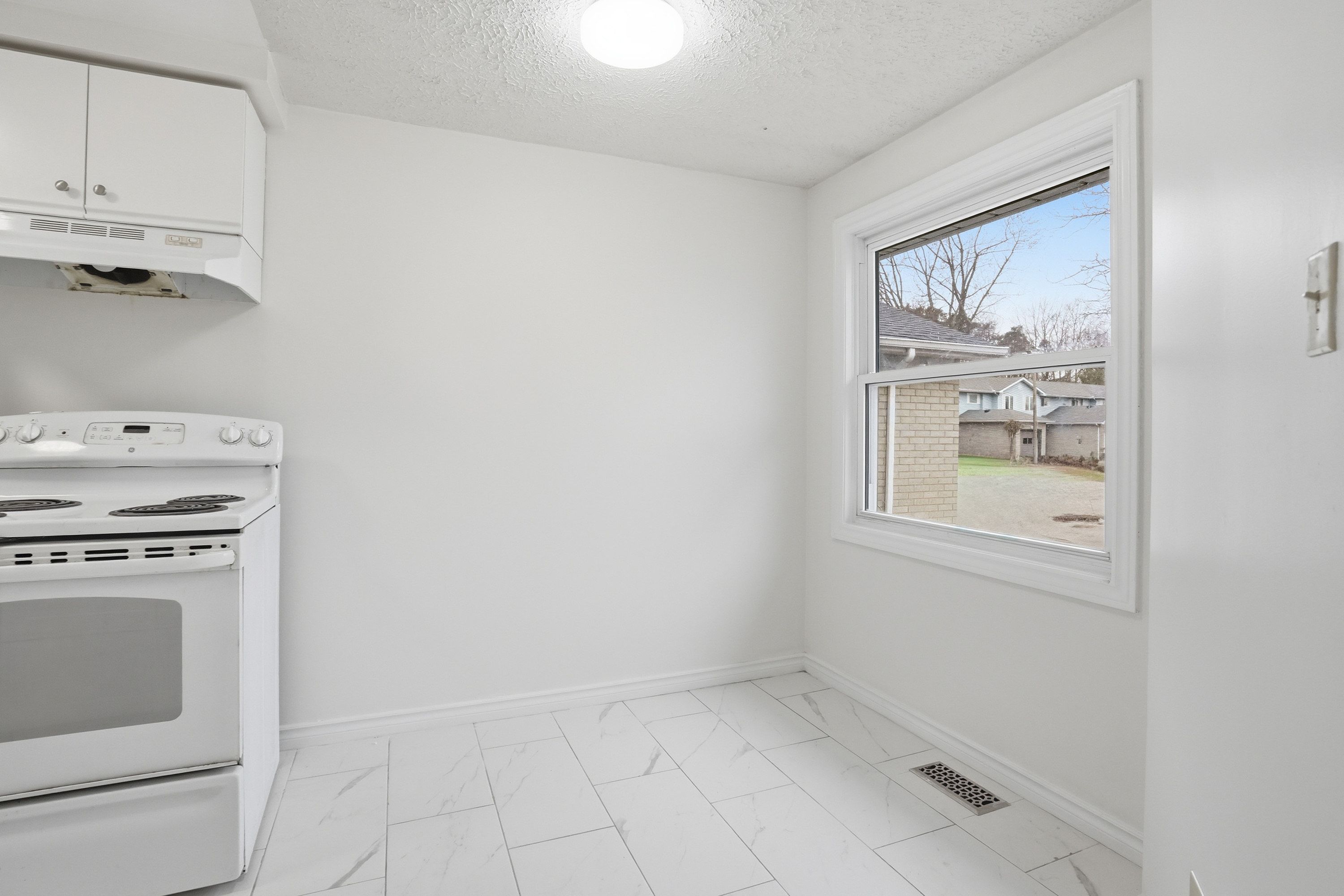 • Bright kitchen features a cozy breakfast nook filled with natural light.