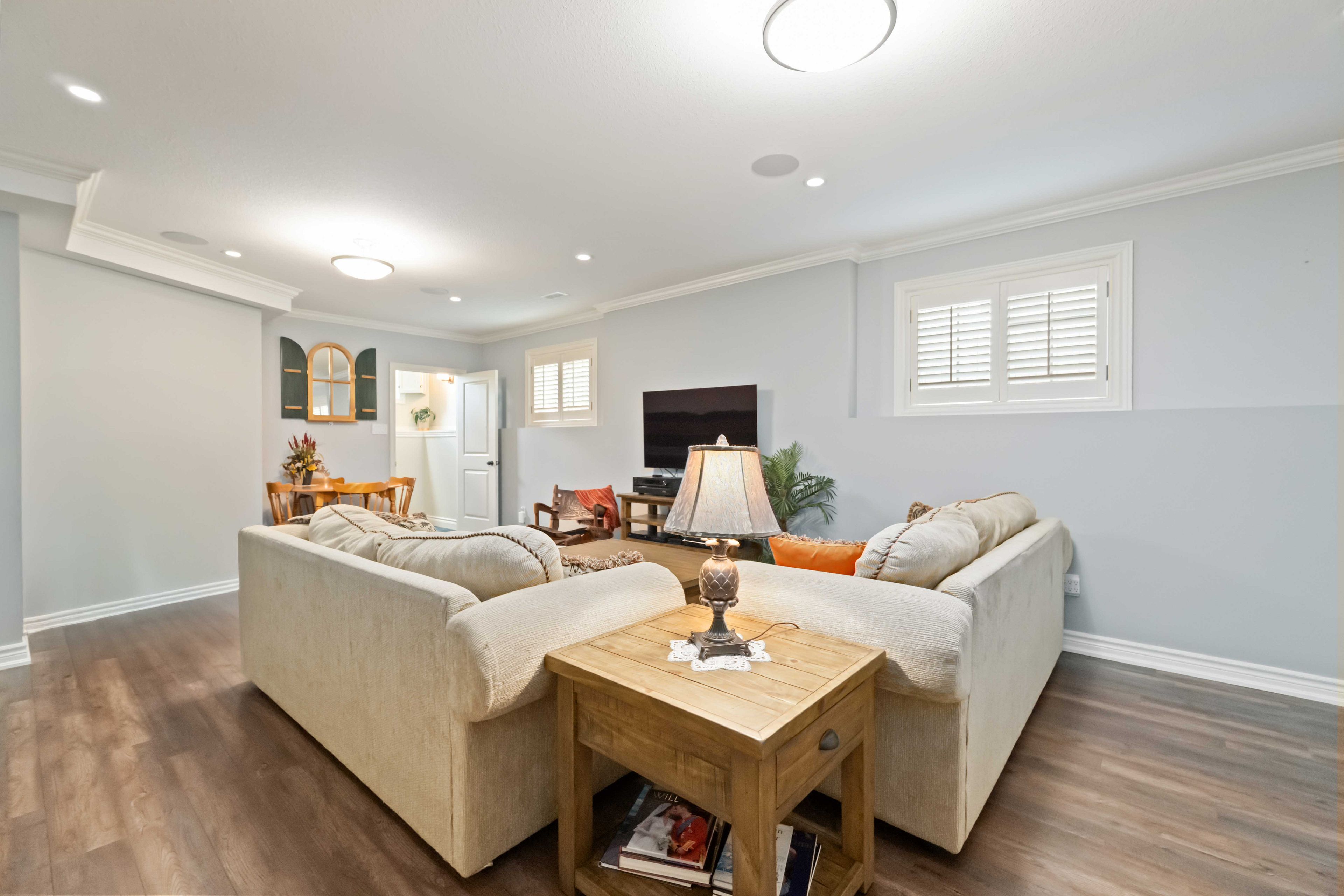 • Lower level includes a third bedroom and entertainment space, plus storage.