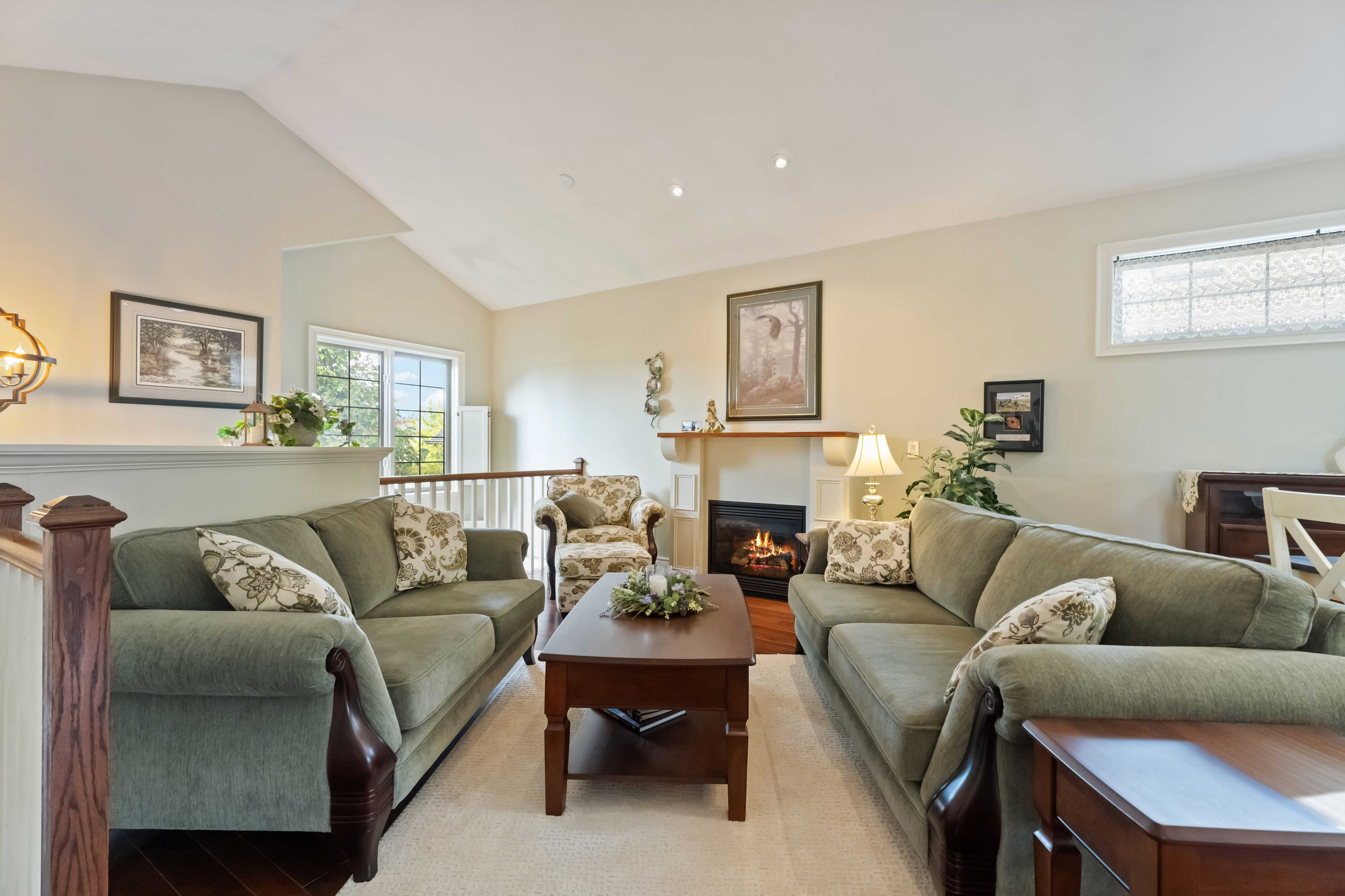 • Bright interior with vaulted ceilings and cozy gas fireplace for added comfort.