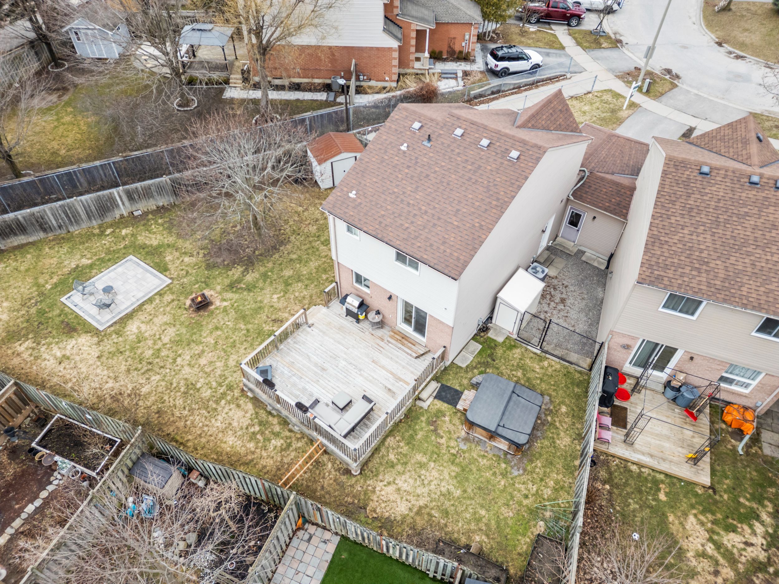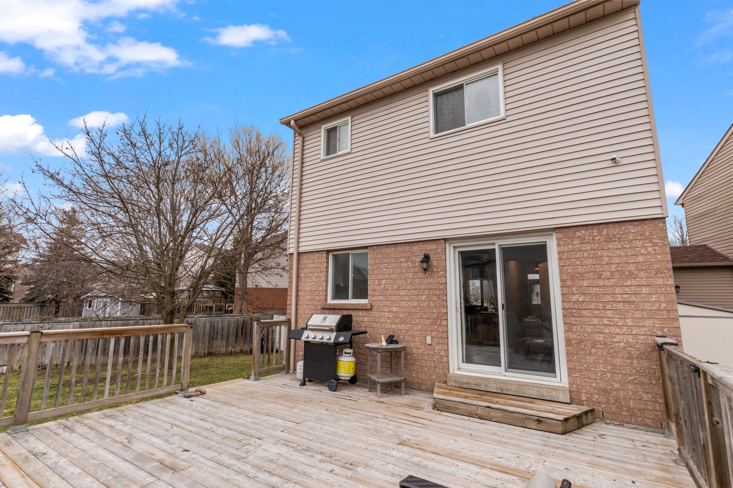 Welcome to this beautifully maintained 3 bedroom detached home, linked only by the garage, offering the ideal combination of privacy, space, and modern updates in a highly desirable neighbourhood. Set on a premium pie shaped lot, the extra large backyard is a rare find with no direct neighbour beside thanks to the adjacent walkway, creating an open and private setting you don't often come across. The updated main floor features a stylish eat in kitchen with a walkout to the deck, perfect for everyday living and effortless entertaining, while the bright and functional layout flows seamlessly into the living and dining areas for a warm, inviting feel. Upstairs, you will find a renovated main bathroom and a spacious primary bedroom complete with a walk in closet and private 4 piece ensuite, offering a comfortable retreat at the end of the day. The finished basement adds valuable extra living space, ideal for a rec room, home office, or gym, giving you the flexibility today's buyers are looking for. Step outside to enjoy the expansive backyard with patio and hot tub, designed for relaxing or hosting all season long. Located just minutes to the 401 and 418 with easy access to walking trails, shopping, and everyday amenities, this home delivers both convenience and lifestyle. This is an opportunity you do not want to miss. Offers anytime.