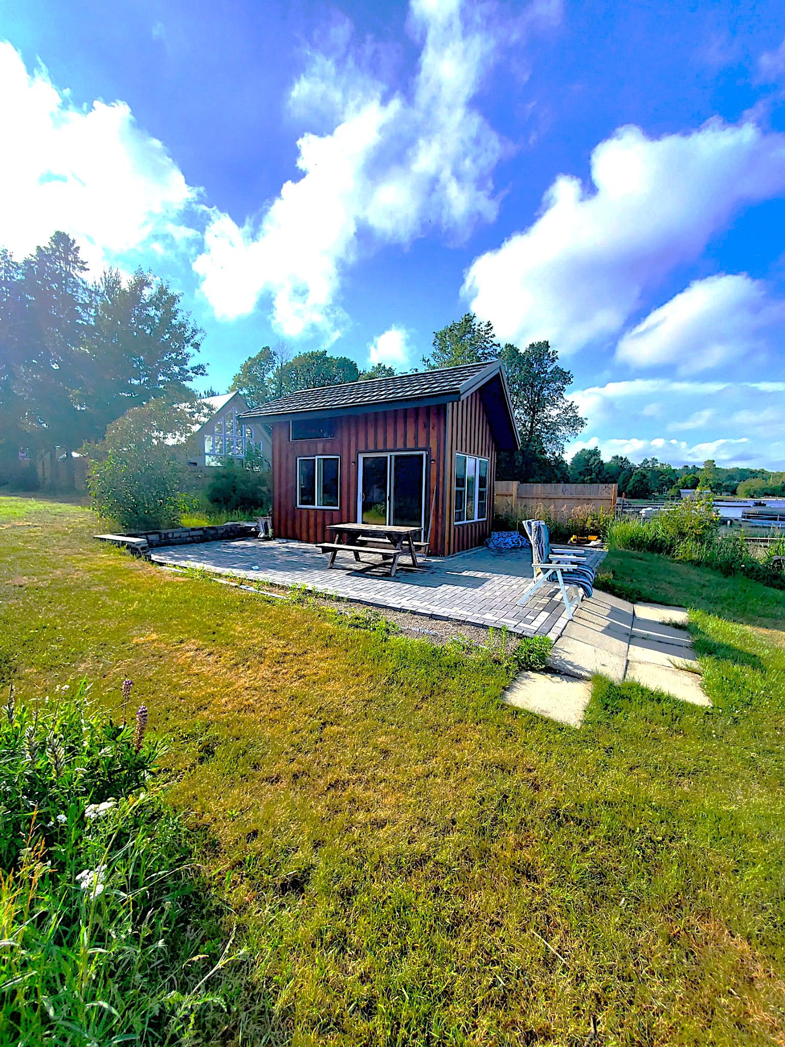 • Private sandy beach, charming bunkie, and stone patio for outdoor enjoyment.