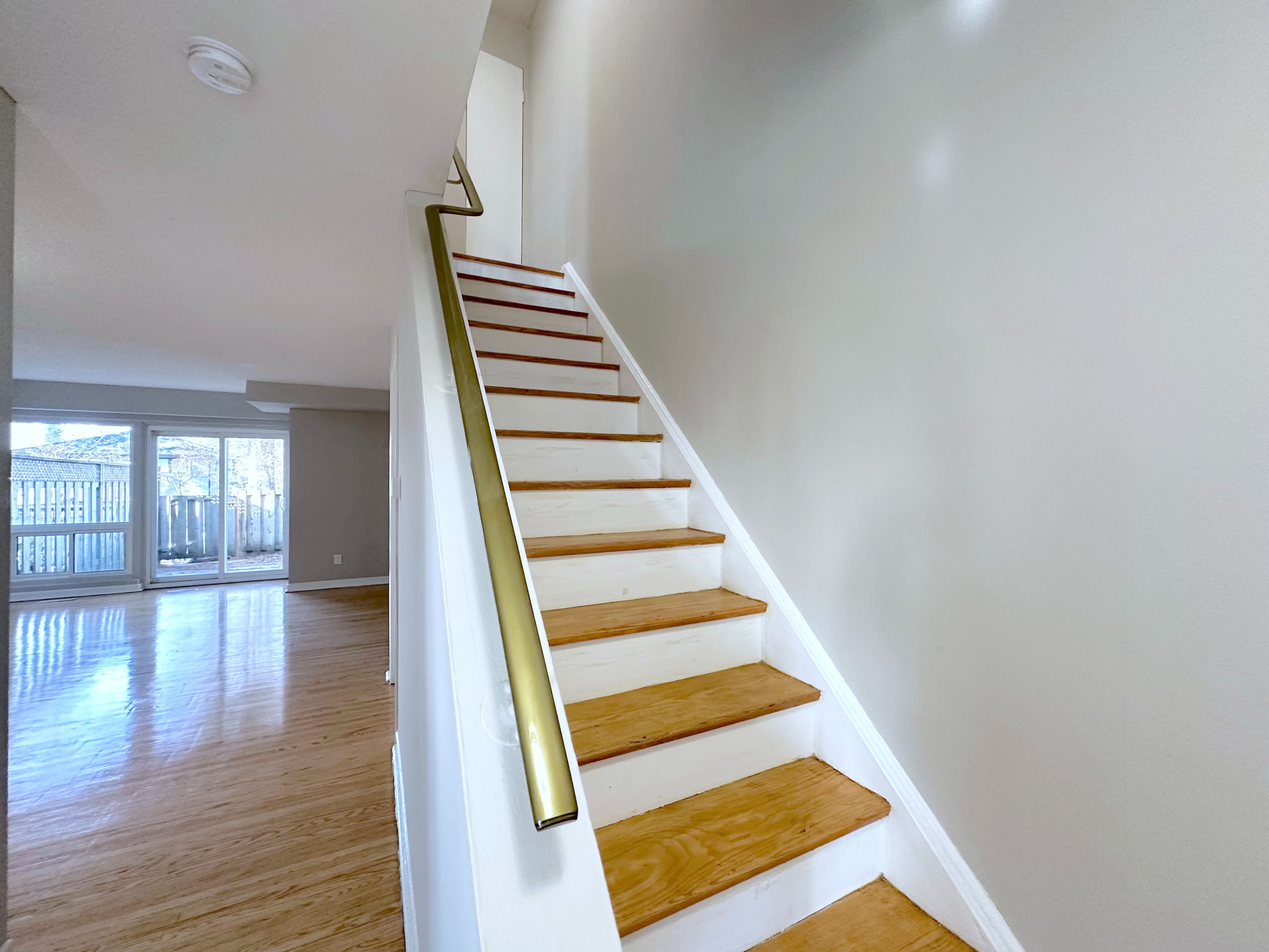 Discover havenbrook gardens, a hidden gem nestled on a quiet, tree-lined boulevard in one of toronto's most sought-after neighbourhoods. This beautifully maintained 4-bedroom townhome has strip hardwood flooring throughout the main living areas, with ceramic tile in the kitchen and bathrooms for a sleek, modern finish. The sun-filled living and dining spaces are perfect for relaxing or entertaining, while the kitchen boasts brand-new appliances, a pantry, and plenty of cabinetry for all your storage needs. Upstairs, the spacious primary bedroom comes with its own private balcony, and three additional generous bedrooms provide plenty of room for family, guests, or a home office. Additional highlights include in-suite laundry and a private backyard. Parking optional, available for rent at an additional cost
