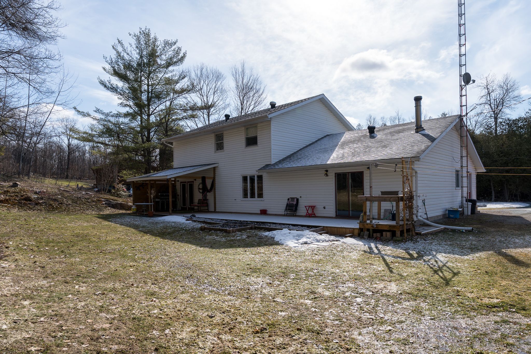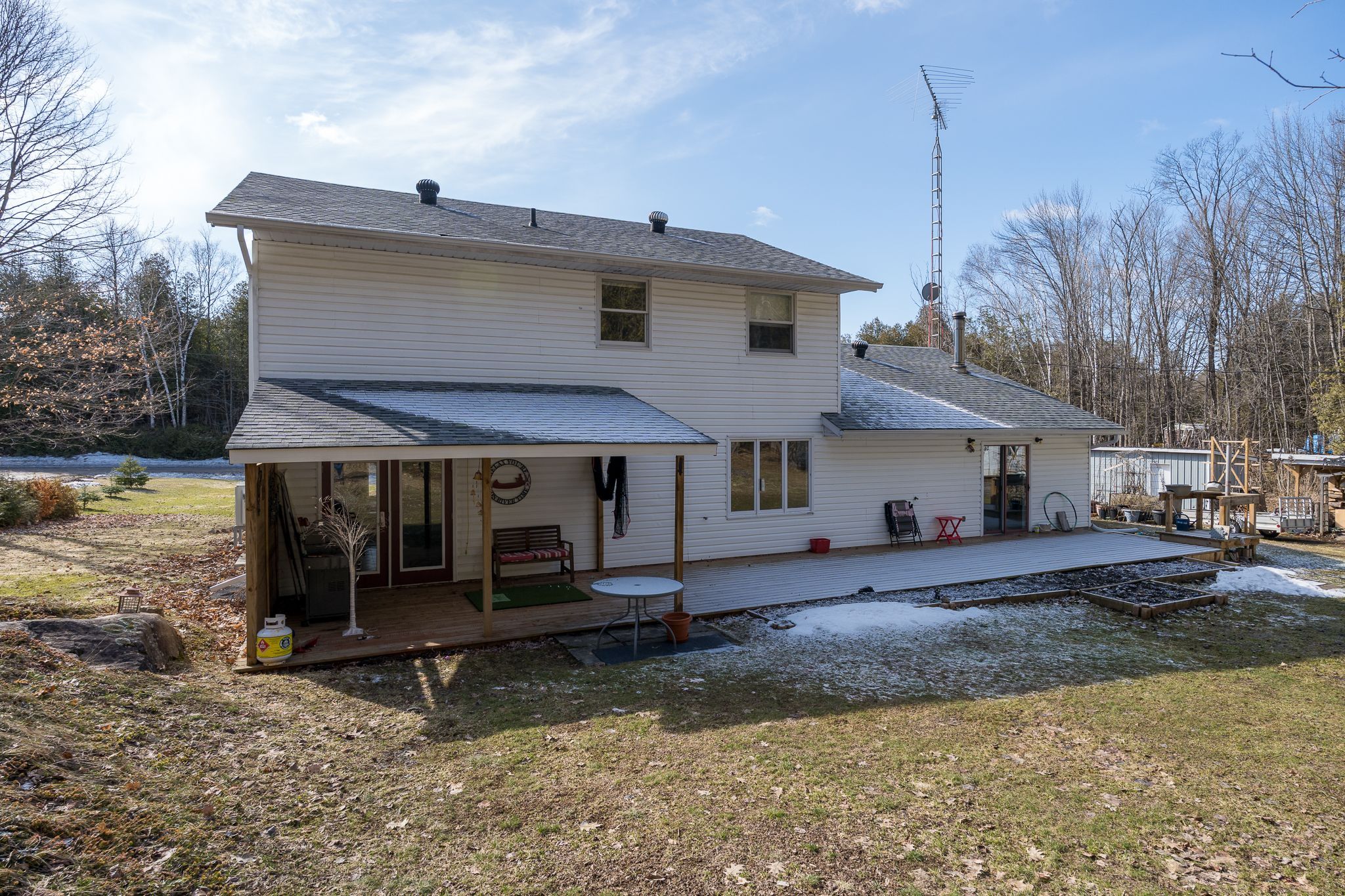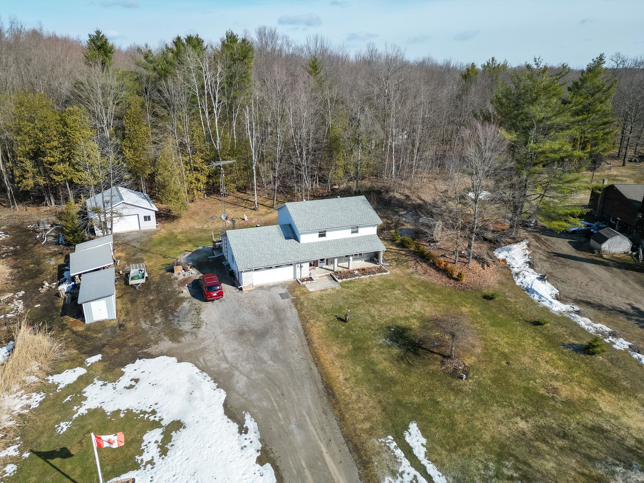 Stunning family home just 6 minutes from downtown madoc, ontario. Built in 1991, this meticulously well-maintained home sits on just over an acre of treed lot on a quiet road within a convenient distance to your everyday needs. The home is built on a slab grade, so there is no basement to worry about. Comes with an attached two-car garage plus an additional separate 24 x 30 foot garage/workshop with a new steel roof, where you could store your other toys like boats, kayaks, atvs/side-by-sides, etc., as there are tons of water bodies and trails within the area. High energy-efficient heat/ac pumps throughout the house. Gorgeous curved archways between the main floor rooms. Bonus family room at the rear of the house with a wett-certified wood stove for winter comfort. Out back, you see nothing but nature, such as deer, birds, and a fox den nearby, as they like to perch on the small hill close to the property line. Upstairs, you will find 3 generously sized bedrooms with a main bathroom plus an additional primary bedroom with a luxurious ensuite with a corner jet tub for relaxing evenings with your laundry all being on the same level as the bedrooms. Amazing water quality in the area. Move in, enjoy this lovely home, and make it yours for memories to come.