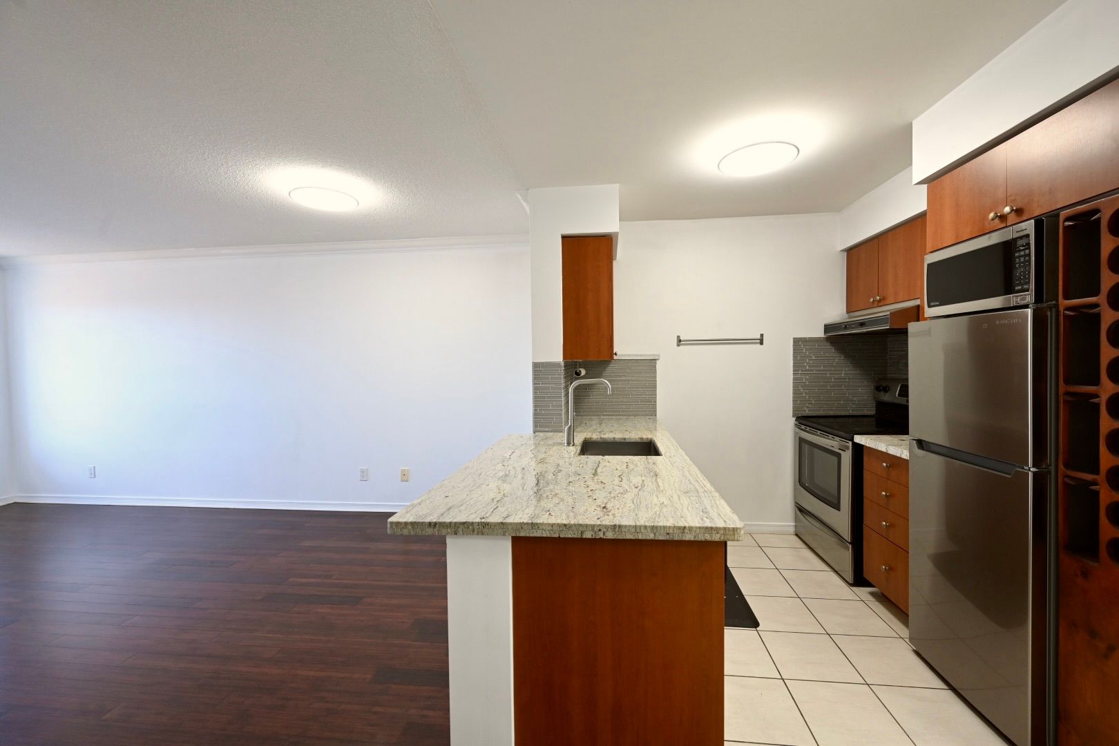 • Spacious 1-bedroom condo on the 9th floor with skyline views.
