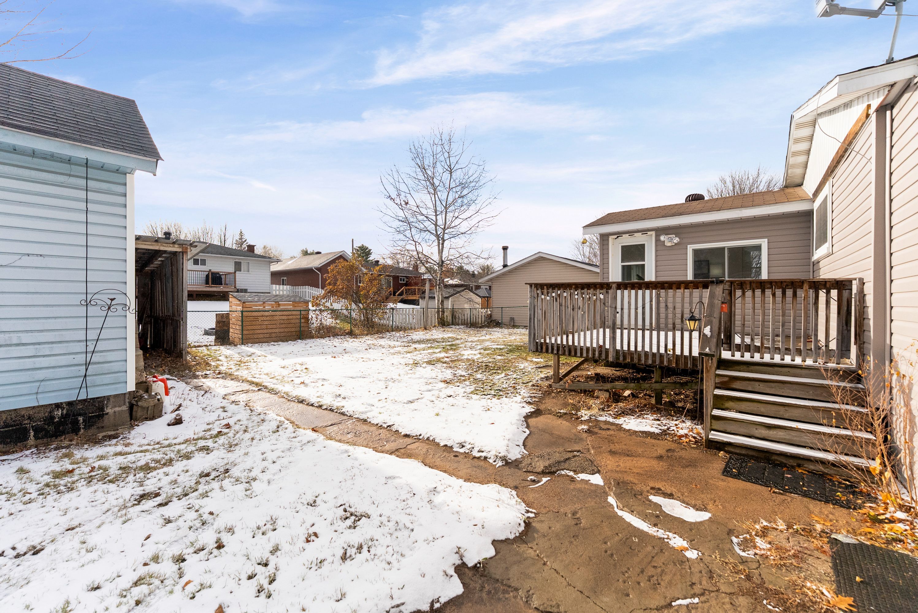 • Large mostly fenced yard with a workshop for storage or hobbies.